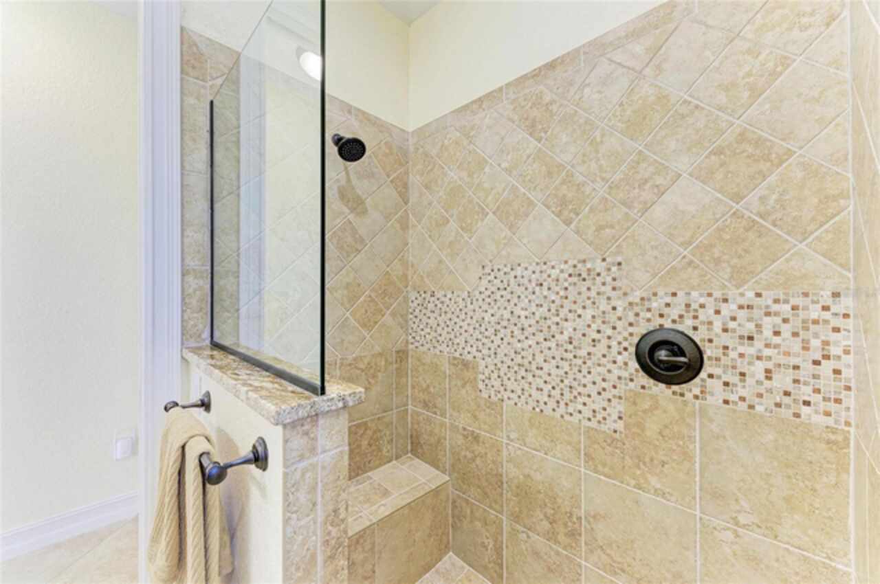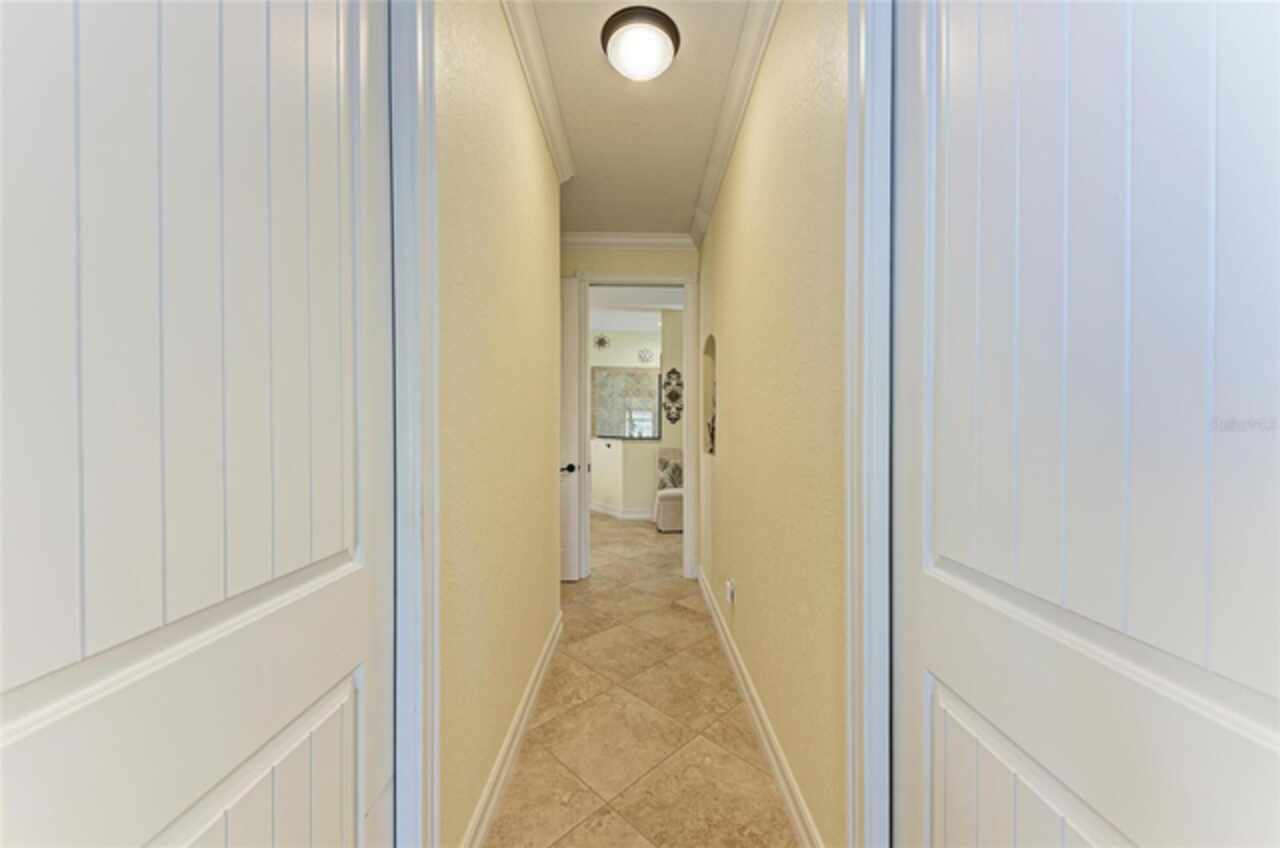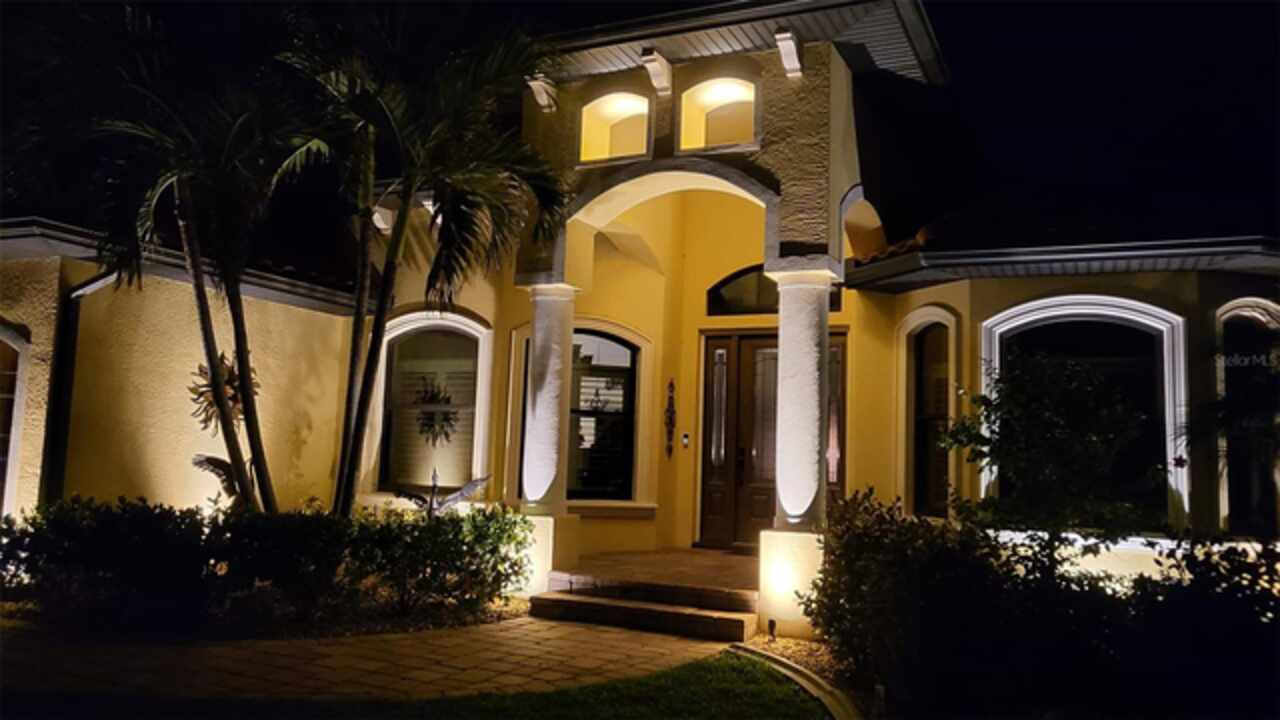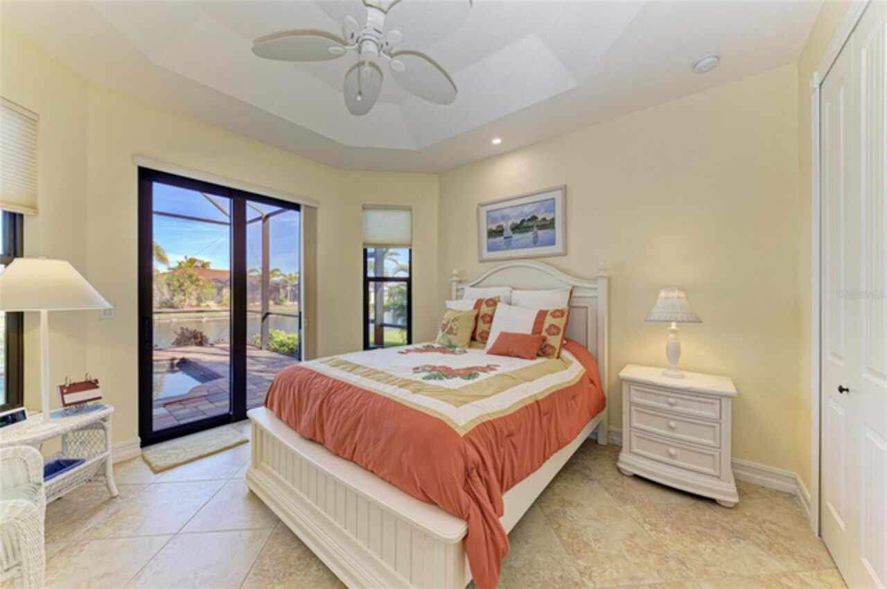Welcome to an exceptional waterfront property nestled on an expansive, oversized lot. Designed by the seller, this custom, meticulously maintained waterfront home offers the perfect blend of luxury, comfort, and functionality. From the moment you approach, the brick paver driveway and walkway lead you to a single-entry front door, inviting you into the spacious, beautifully designed interior. Step inside and view the open floor plan layout merging the foyer, great room, nook, and kitchen, ideal for entertaining family and friends while offering picturesque views of the waterfront. Every room features stylish diagonal tile flooring, wide door frame moldings with intricate corner rosettes adorning 8 foot doors, and tray ceilings throughout. Crown molding accents add sophistication to the living areas and owners' suite. The heart of the home is the kitchen, offering a breakfast bar, sleek stainless steel appliances, custom wood cabinetry with soft-close doors and pull-out drawers, and granite countertops. Under-cabinet lighting enhances the space, creating a warm, inviting ambiance. Wooden buffet with matching hutch featuring a wine rack, extend cabinetry to nook area creating opportunities for casual dining, while the aquarium window creates a light, airy atmosphere. The owners' suite is a private sanctuary featuring his/her walk-in closets and a spa-like ensuite bathroom featuring wood cabinets with under cabinet lighting, dual vanities with granite countertops, and a double entry walk through tiled Roman shower. Two spare bedrooms offer both functionality and privacy for your guests or family members. Numerous sliding doors open to the lanai, where you'll find beautiful brick pavers, an outdoor shower, oversized sparkling 10, 000-gallon heated saltwater pool complete with a sun shelf, bench space and spa—ideal for relaxing or entertaining. This spacious lanai provides ample room for seating where you can relax while listening to the sounds of nature. Enjoy connecting the indoor and outdoor environments when sliding doors are open meshing indoor and outdoor spaces. The lanai has been mechanically roughed-in with plumbing and electricity for an outdoor kitchen. The large laundry room features numerous upper and lower cabinets, closets and granite counter top. Numerous interior features include but are not limited to grade 5 granite, ceiling lights, verti-glide and plantation shutters as window and door treatments, impact glass windows and doors, niches, granite window sills and more. The oversized 3-car garage is designed with functionality in mind, offering ample storage closets, elevated Air handler, and an epoxy floor for a polished finish. Exterior features include a sprinkler system, tile roof, mature landscaping ensconced by concrete curbing, stemwall construction, and individual garage doors for separate entrances. For boating enthusiasts and waterfront lovers, a 10x30-foot concrete dock with both water and electricity is available for your convenience.. Mature landscaping surrounds the home, showcasing beautiful, lush vegetation thoughtfully ensconced with curbing around the garden beds, providing an inviting and serene atmosphere. Why wait? This exceptional home combines modern comfort with luxurious details—perfect for anyone seeking style, space, and functionality and it could be yours as the property is being sold FURNISHED, TURNKEY minus a few personal items.