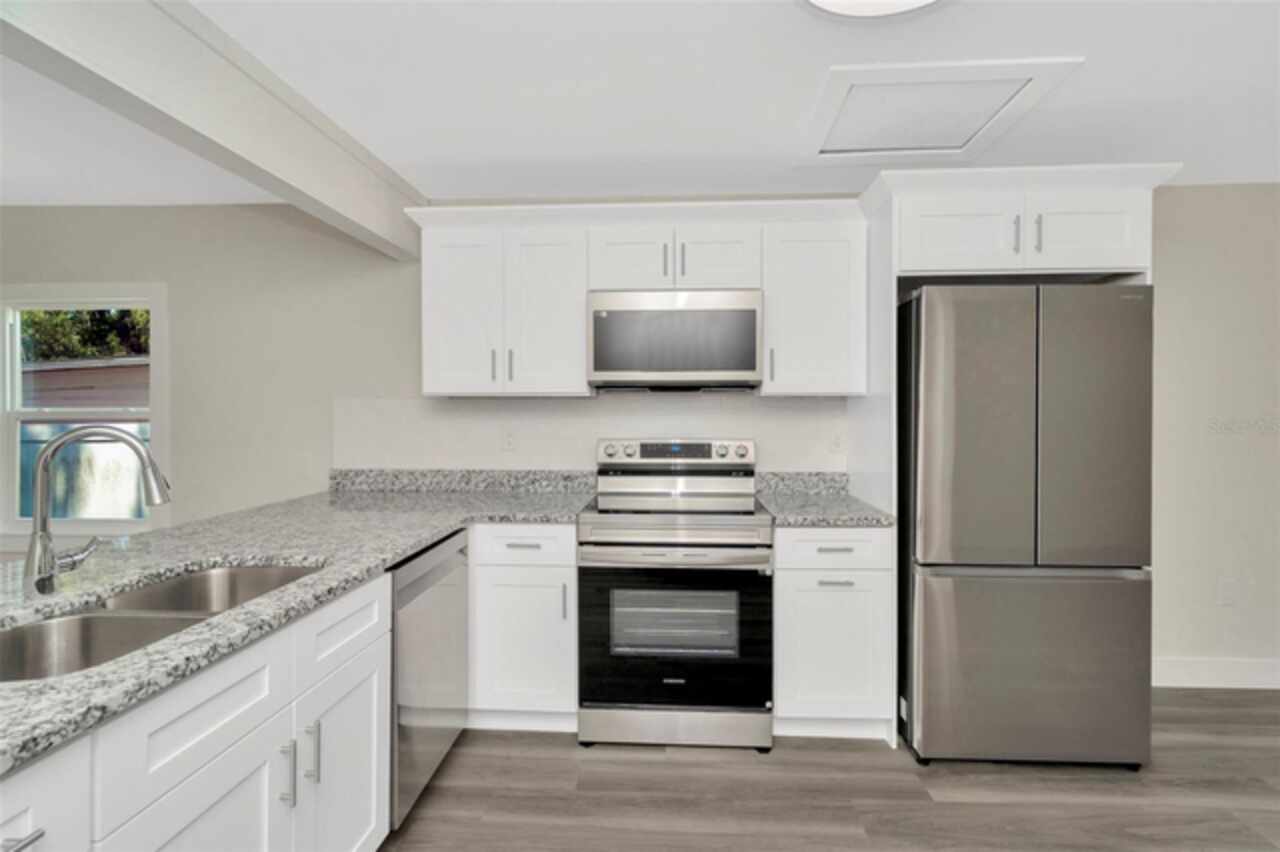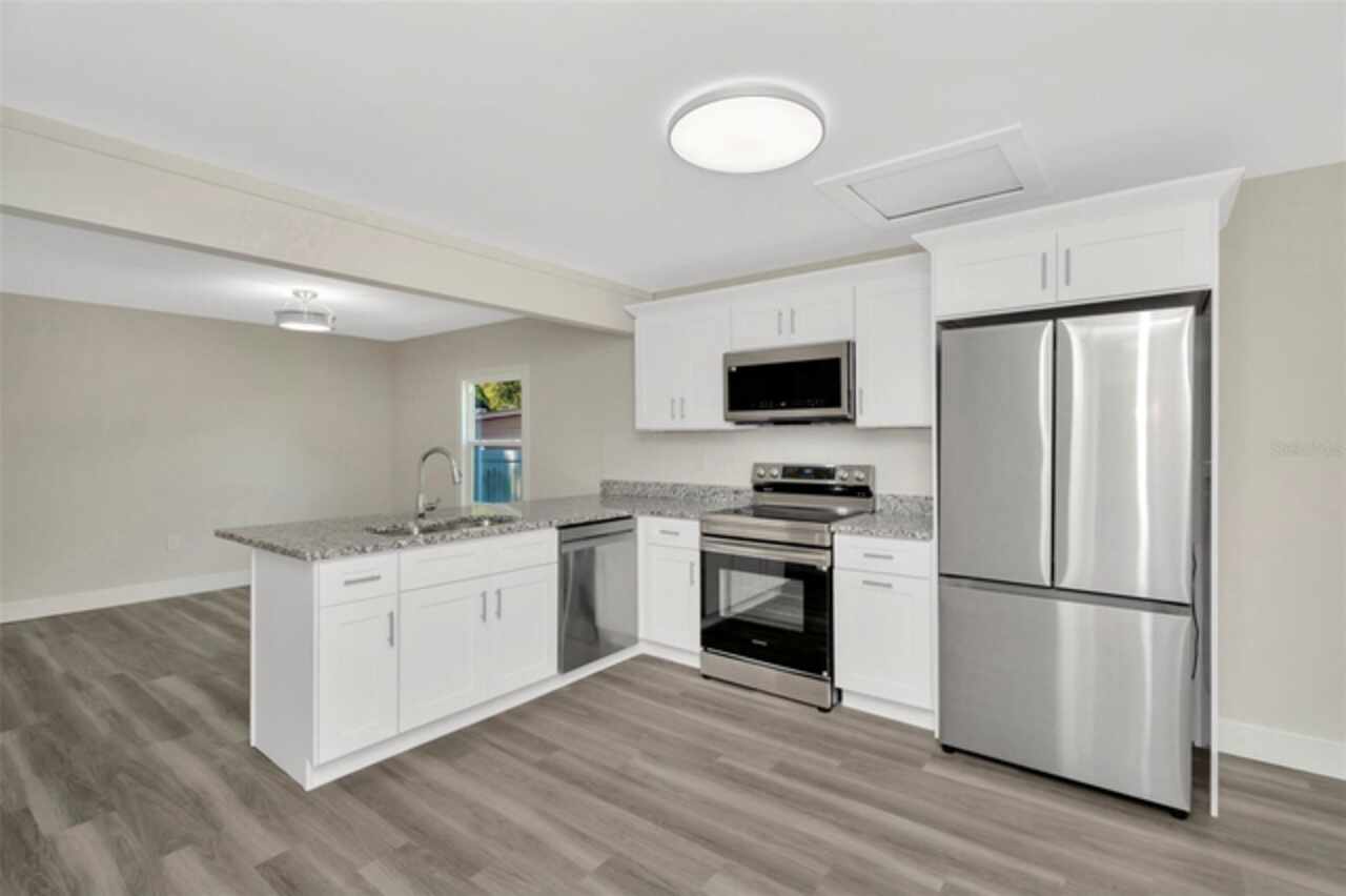 Under contract-accepting backup offers. Welcome to this tastefully renovated gem in the heart of Tampa! Practically everything has been updated, ensuring peace of mind from day one. This three-bedroom, two-bathroom home was taken down to the studs and rebuilt to strict hurricane codes. It features a full metal hurricane strapping system from ground to roof, double-stud new exterior walls, hurricane impact windows, new siding, porch, roof (2022), and spray foam insulation for comfort and efficiency. Updated electrical and plumbing are the cherry on top! Enjoy an inviting open layout that connects the living, dining, and kitchen areas, perfect for gatherings with friends and family. The sleek kitchen features stainless steel appliances and stone countertops. The primary bedroom offers an ensuite bathroom and walk-in closet along with private access to the back yard and deck. Upon stepping outside, you’re greeted with a fully fenced and spacious yard that includes a separate shed for storage and laundry use. The two additional bedrooms include built-in closets and ceiling fans ensuring maximum comfort and close proximity to the second bathroom located in the hallway. Centrally located and just a short drive to Bush Gardens, Downtown Tampa, and Tampa International Airport this home offers the perfect blend of convenience and tranquility. Furthermore, this home is NOT located in a flood zone. Act quickly and make this one yours today!