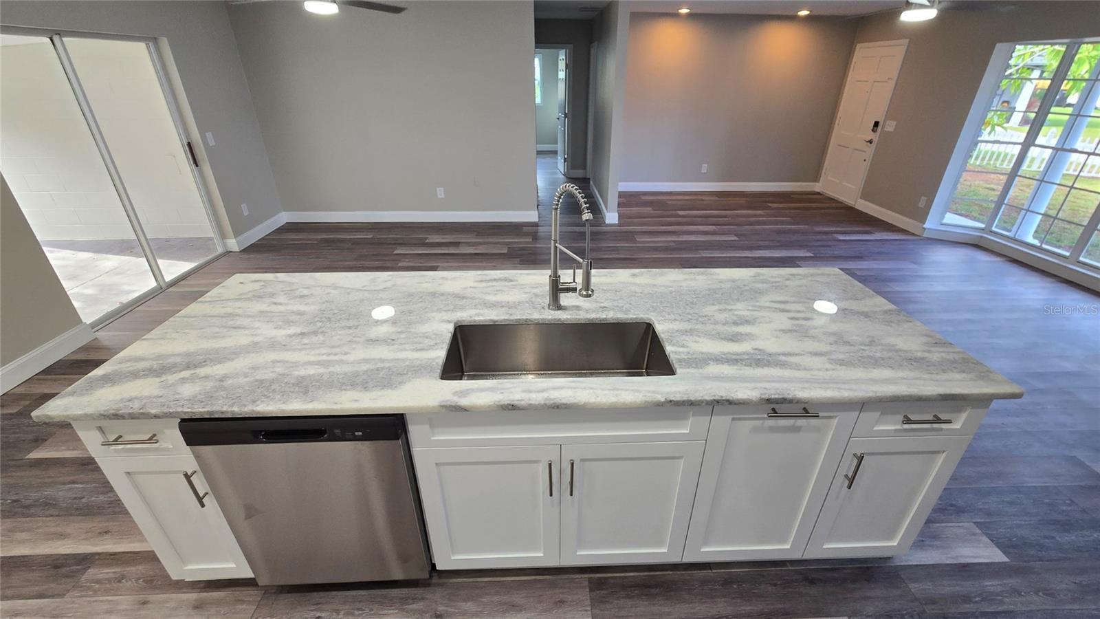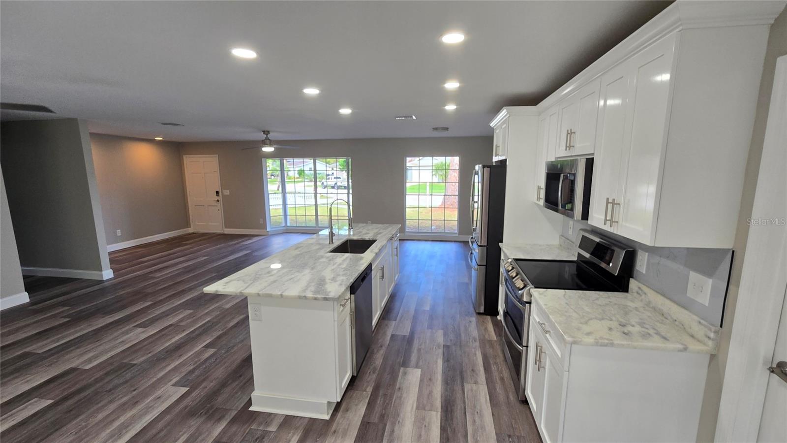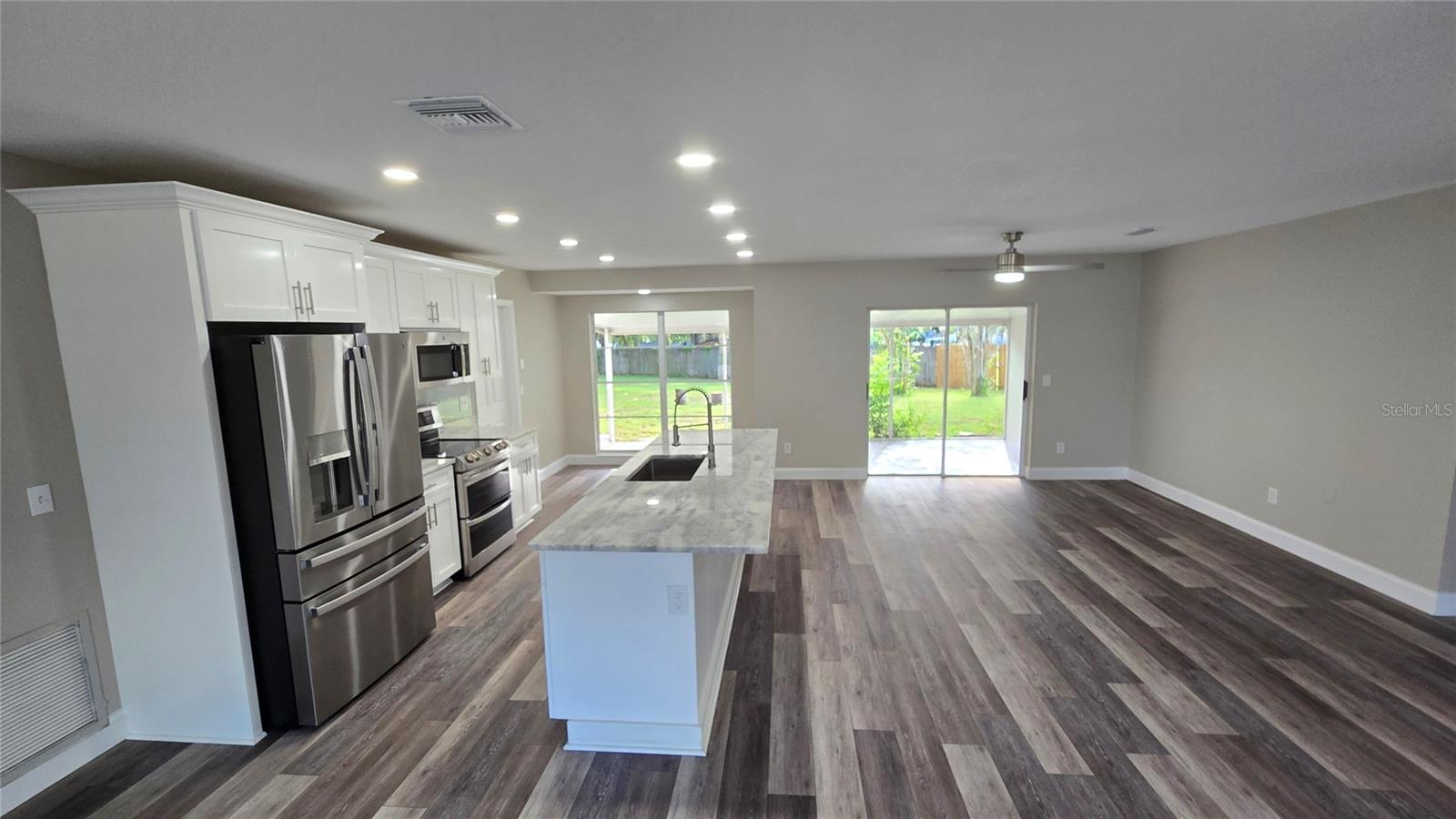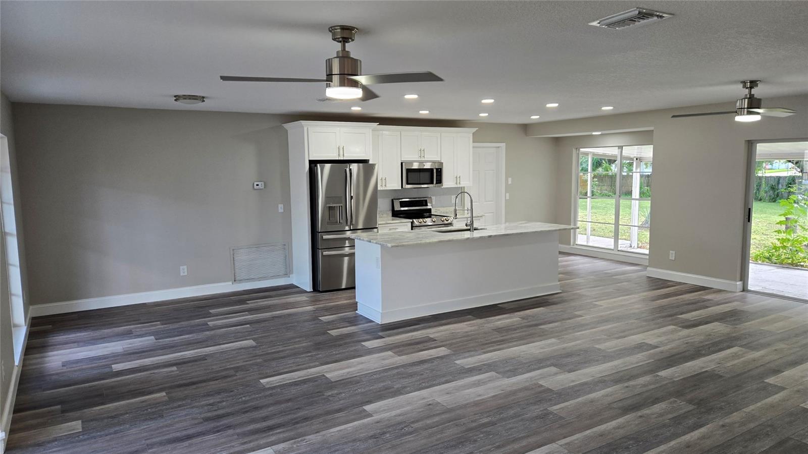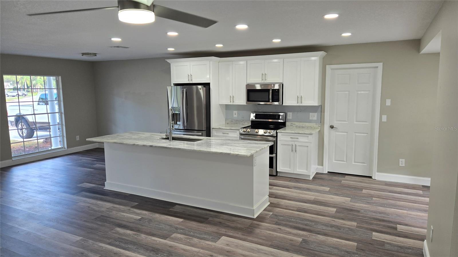 Ceiling Fans(s), Eat-in Kitchen, Kitchen/Family Room Combo, Open Floorplan, Stone Counters