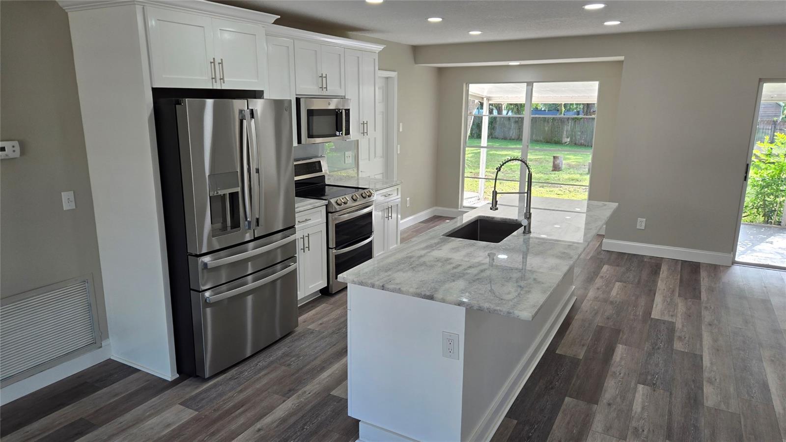 This home has been completely renovated and has a very open floor plan. It sits on one of the largest lots in the neighborhood - There is easy access thru double gates to drive into the huge back yard (178 feet wide) which has a enough space to park many vehicles or build a large workshop, add a pool or even build a tennis or pickleball court. The house has new everything - roof, bedroom windows, fresh water lines, every surface inside including 3 new bathrooms, a new kitchen and all new flooring. The large utility room is next to the kitchen and could be used as a pantry. There is a large bonus/in law quarters and bathroom off of the kitchen which could easily be a game room, guest quarters or turned into a rental unit with the addition of a kitchenette. There was no water intrusion in the house during the hurricanes of 2024 (Helene and Milton). There are only a few homes that have this amount of backyard space in the entire neighborhood. If you have lots of toys or work trucks or want to run your business from your home this house will be perfect for you. The seller will consider paying some of the buyers closing costs or buy down the interest rate on a loan.