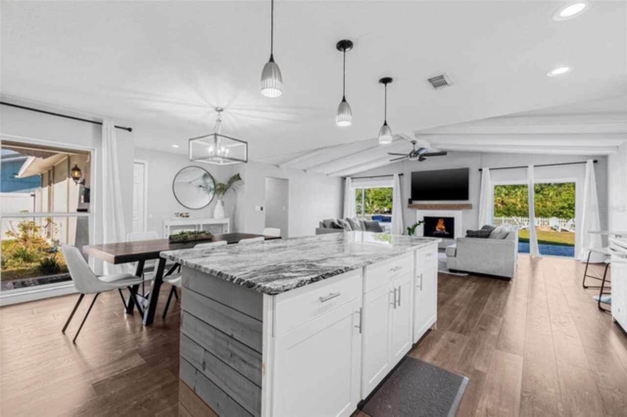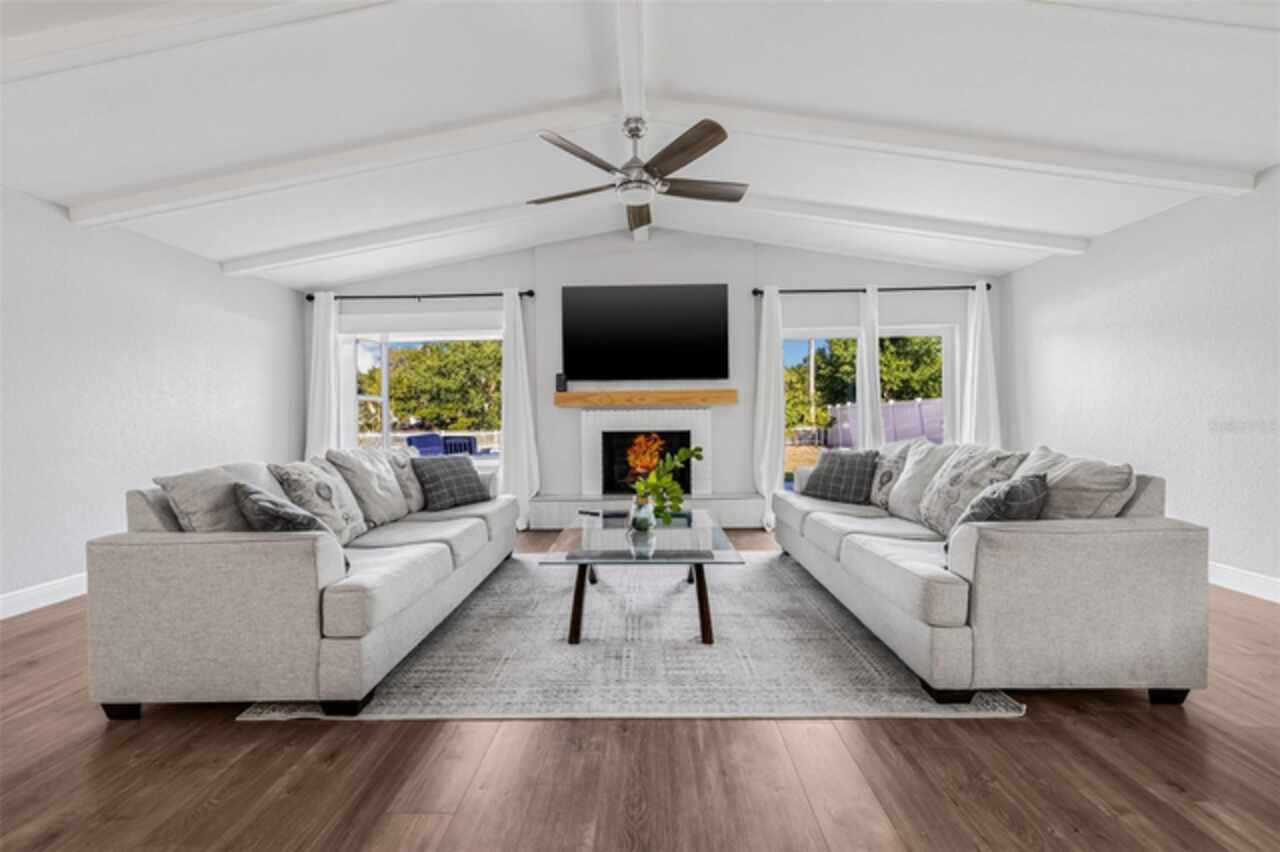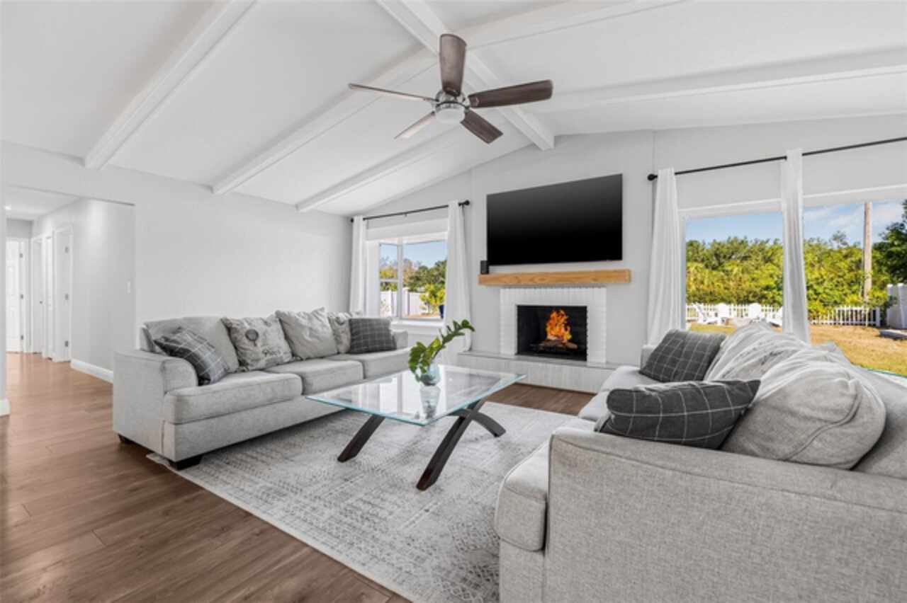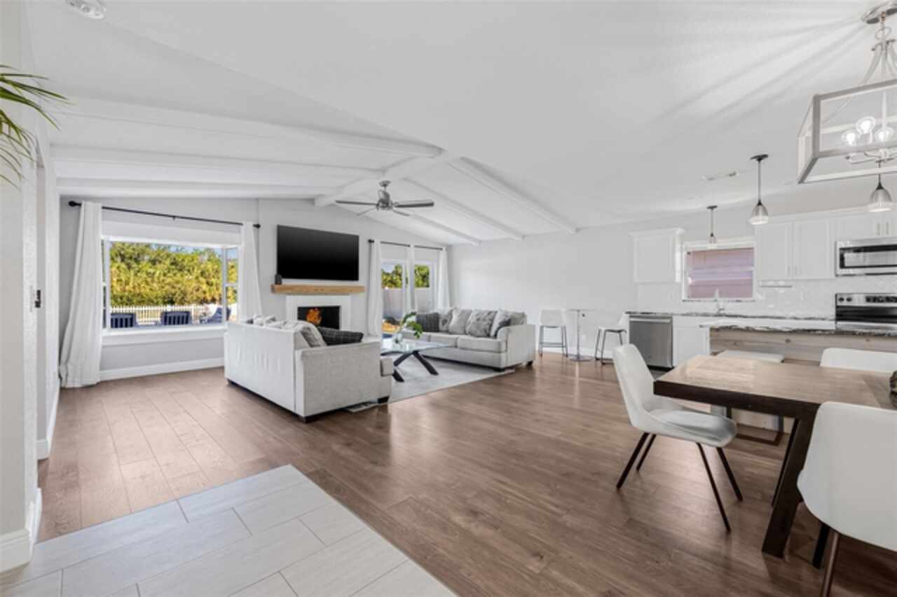 Gorgeous Pool home on oversized lot being offered turn-key with all furniture! This home originally featured three bedrooms and two bathrooms but is now being offered with a fourth bedroom and a den after the garage was converted into living space. As you enter this updated home, you’ll notice how open the floor plan is and immediately be drawn to the sliders which lead to the oversized yard and pool! The kitchen is the centerpiece of the home and features beautiful cabinets with granite countertops and stainless appliances. There is also an oversized island for seating. This home has beautiful laminate floors continued throughout the main home and stunning beams in the family room! Purchase the home turnkey with all furnishings if desired. Enjoy taking your kayaks or canoes on the canal or bring your fishing poles to catch dinner! Call today to view this beautiful home!