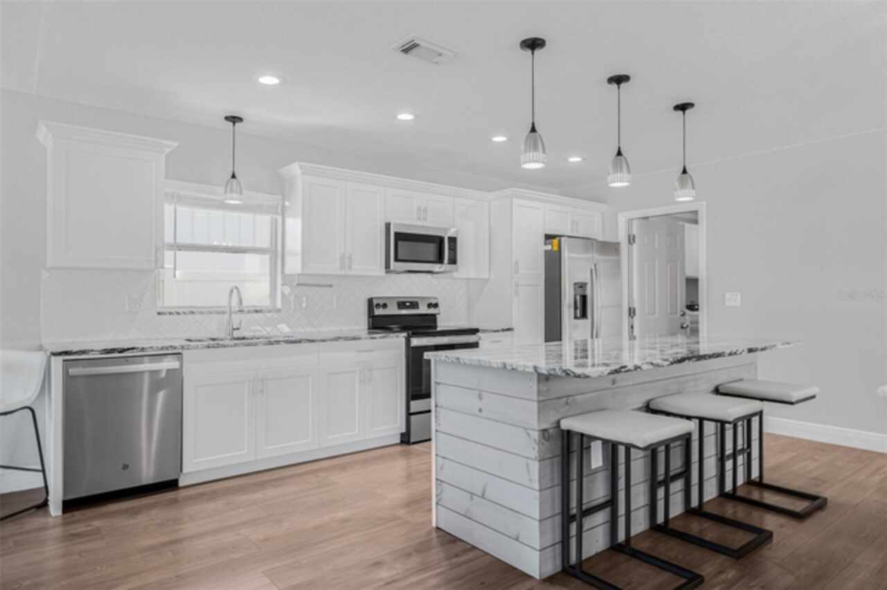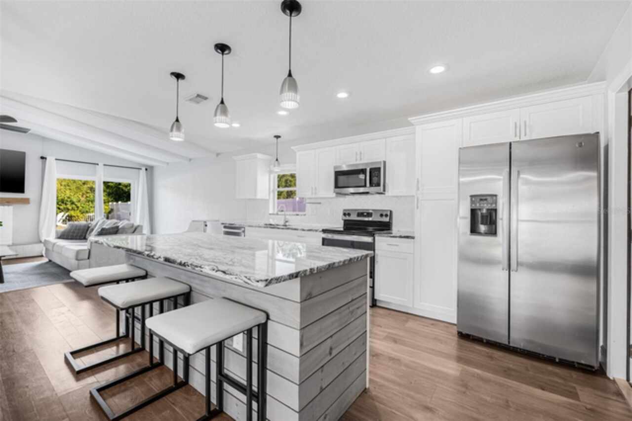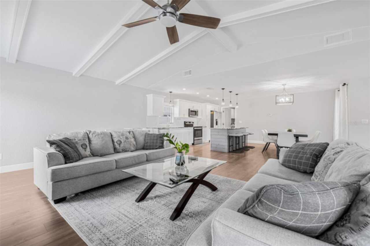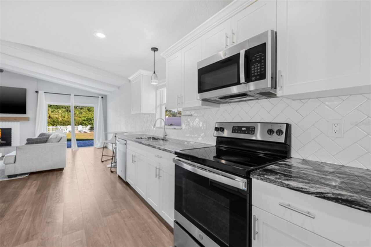 Gorgeous Pool home on oversized lot being offered turn-key with all furniture! This home originally featured three bedrooms and two bathrooms but is now being offered with a fourth bedroom and a den after the garage was converted into living space. As you enter this updated home, you’ll notice how open the floor plan is and immediately be drawn to the sliders which lead to the oversized yard and pool! The kitchen is the centerpiece of the home and features beautiful cabinets with granite countertops and stainless appliances. There is also an oversized island for seating. This home has beautiful laminate floors continued throughout the main home and stunning beams in the family room! Purchase the home turnkey with all furnishings if desired. Enjoy taking your kayaks or canoes on the canal or bring your fishing poles to catch dinner! Call today to view this beautiful home!