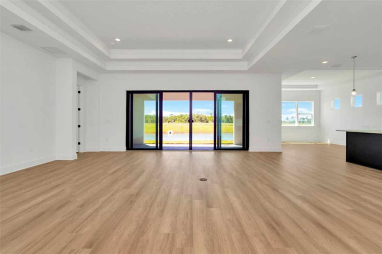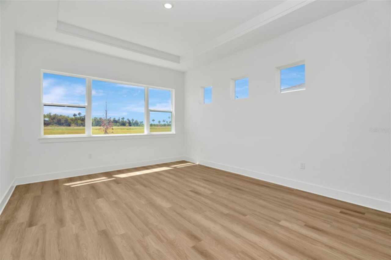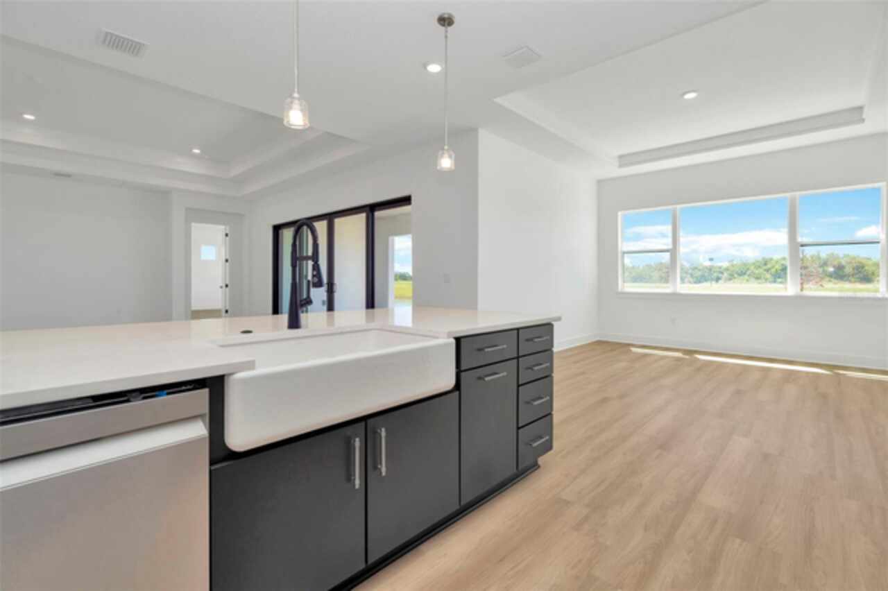 Welcome to your stunning single-story ranch home, where modern design meets luxurious comfort! Spanning an impressive 3, 440 square feet, this exquisite residence features four spacious bedrooms and three beautifully appointed bathrooms, ideal for both everyday living and entertaining. As you enter, you'll be captivated by the open-concept layout, accentuated by high ceilings and elegant tray ceilings that create an airy atmosphere. The abundant natural light enhances the beauty of the luxury vinyl plank floors that flow seamlessly throughout the home. The heart of this home is the gourmet kitchen, showcasing gorgeous quartz countertops and top-of-the-line appliances, making it a chef's dream. The kitchen effortlessly transitions into the dining and living areas, all with serene pond views that provide a picturesque backdrop for gatherings and family moments. Retreat to the luxurious primary suite, which features a stunning bathroom complete with a wet bath, offering a spa-like experience right at home. The thoughtfully designed layout ensures privacy and comfort for all family members and guests. With its contemporary elevation and thoughtful design details, this ranch home is a perfect blend of style and functionality. Don’t miss your chance to own a piece of paradise with breathtaking pond views and an exceptional living experience in Seaire Lagoon! Schedule your private showing today!