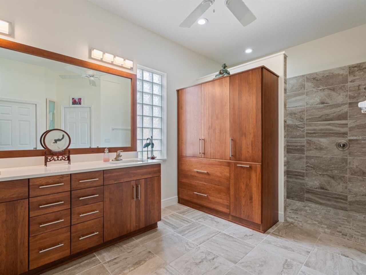 This luxury home was built as one of just a few BARBADOS models and was then modified, expanded and upgraded by these very particular owners. The gracious floorplan includes a beautiful dining room with an open butler's pantry/bar flowing from the living and dining rooms to the kitchen. The kitchen is perfect for the cook of the family with plenty of cabinetry and a cozy breakfast nook open to the Family Room. The PRIMARY SUITE is on the right side of the home and includes two walk-in closets, a COMPLETELY RE-DESIGNED BATH WITH NEW CABINETS, including a BUILT-IN HAMPER, LIGHTING AND A BIG BEAUTIFUL WALK-IN SHOWER...PLUS an incredible 10 x 15 WALK-IN CLOSET (originally built as a Den with access to the foyer). ALL CLOSETS IN THIS HOME WERE PROFESSIONALLY DESIGNED AND FINISHED. Two wall safes have been installed and are included. The 3 secondary bedrooms and two baths are on the left side of the home. Both of these baths were UPGRADED with NEW WALK-IN SHOWERS AND NEW LIGHTING. The KITCHEN was gutted and RE-BUILT with AN ISLAND, UPGRADED GRANITE and CLEAN DESIGN CABINETRY featuring PULL OUT SHELVES IN THE CABINETS, DRAWER STORAGE, SLIDE OUT PANTRY SHELVING AND MORE! The range is now electric, but the gas pipe remains behind it if gas is preferred. WOOD FLOORING was installed in the living room, dining room and family room. HIGH END LIGHTING is apparent everywhere. PELLA WINDOWS AND SLIDERS WITH BUILT-IN BLINDS AND A FABULOUS PELLA FRONT DOOR WITH A MATCHING TRANSOM were also installed. All feature special locking mechanisms for security. The living space was expanded by ENCLOSING the LANAI WITH PELLA WINDOWS, A/C, FANS AND A SUMMER KITCHEN. Flowers and shrubs were added to the garden, providing a beautiful view from the lanai and the perimeter of the home is finished with a paved border and large river rock. Even the GARAGE is upgraded with a CARPETED FLOOR, 2 FANS and a MINI-SPLIT A/C to keep it comfortable. Everything is impeccably cared for, and the A/C and tankless water heater get regular maintenance. Lakes of Mount Dora is one of Central Florida's most premier 55+ communities. From the 18, 000 square foot club house with its billiard room, library, gigantic kitchen, theatre, and meeting rooms to the zero-entry pool and spa area to the outside pickleball and tennis courts, everything is immaculate and well kept. Downtown Mount Dora and its famous lake, shops and restaurants is less than a 15 minute ride.
