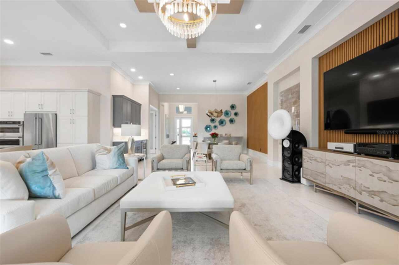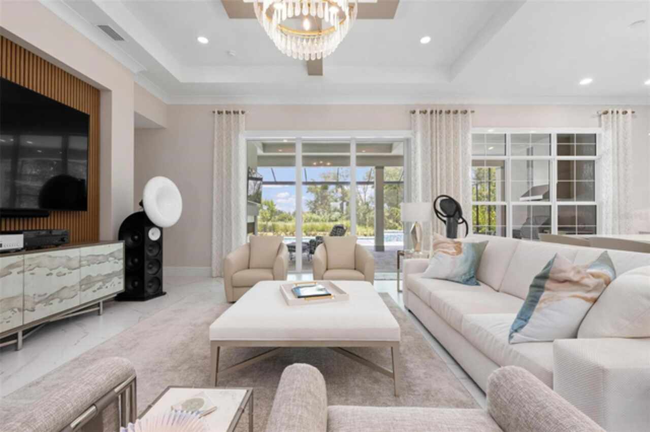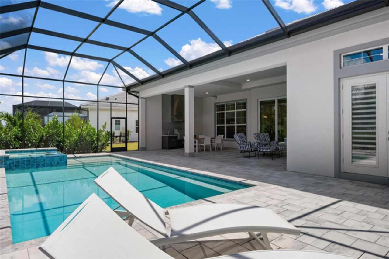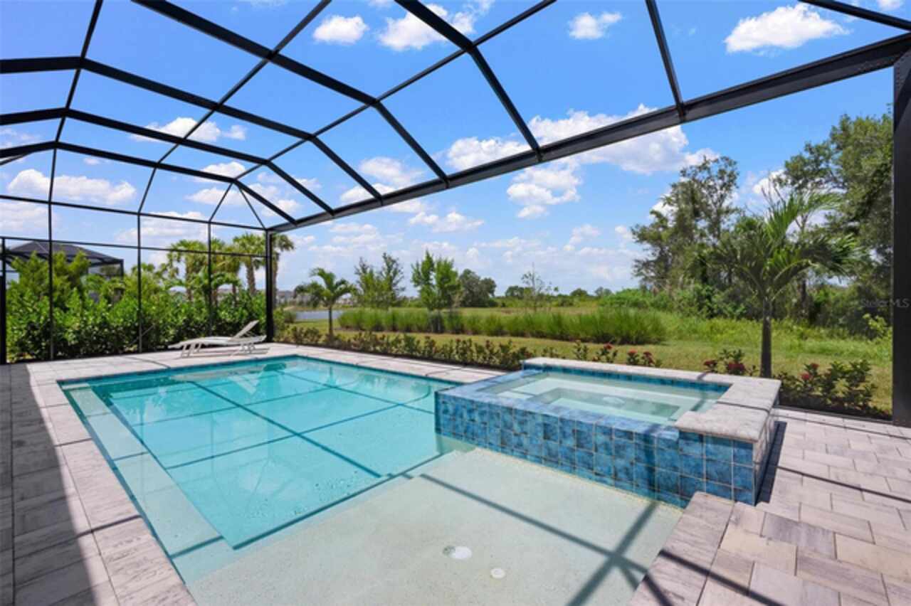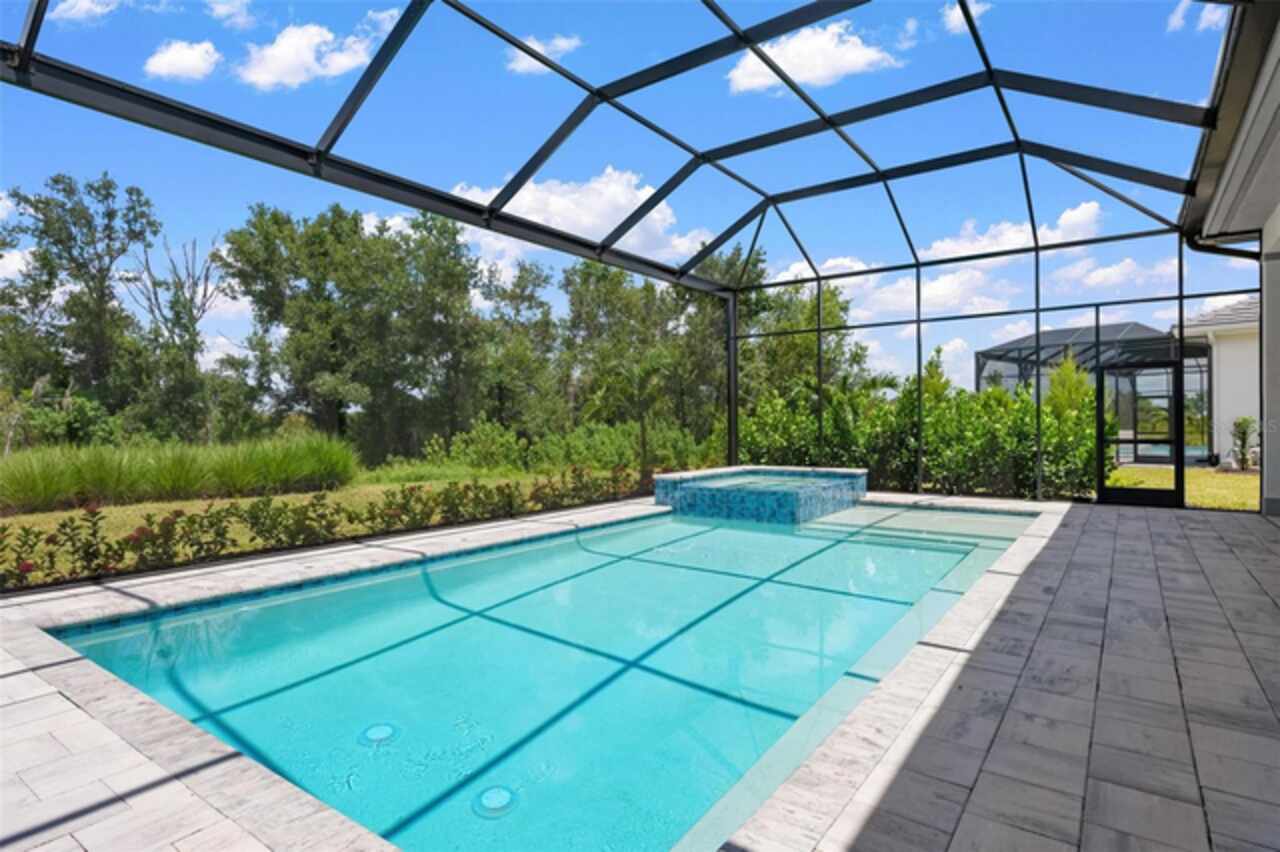 Seller wants offers! Move right into this professionally decorated Easton 3 by Stock Luxury Homes—already complete and perfectly positioned with private wooded views and a spectacular pool & spa. Why wait for new construction when this one is ready now? Blending modern style with timeless comfort, this home offers a seamless balance of privacy, elegance, and craftsmanship. Natural light fills the open floor plan, highlighting soaring ceilings and contemporary finishes that create an airy, inviting atmosphere ideal for both everyday living and entertaining. Window treatments are custom designed and Pirouette blinds by Hunter Douglas in primary bedroom and media rooms along with remote-controlled blinds in great room and kitchen. At the heart of the home, the chef’s kitchen impresses with Kitchen Aid appliances, sleek quartz countertops, custom designed painted wood cabinetry, and a generous island perfect for gathering. The primary suite is a retreat of its own, featuring two walk-in closets, peaceful views of the pool and wooded backdrop, and a spa-inspired bath with a glass-enclosed shower, free-standing tub, and refined finishes. The indoor-outdoor connection is unmistakable, with expansive sliding doors leading to the covered rear porch, sparkling pool & spa and outdoor grill center, where you can relax, entertain, or simply take in the tranquil setting. Located within the highly sought-after Wild Blue community, residents enjoy a wealth of amenities including tennis courts, pickle ball, exercise zone, fishing access, and miles of scenic sidewalks for walking and biking. This home delivers the best of luxury living, move-in ready, thoughtfully designed, and set in one of the area’s most exciting new communities. Schedule your private showing today. Do not sit on the fence too long with this property, we will be reducing the price on this beautiful home frequently until it sells. NOTE: Furnishings are available under separate bill of sale, there are a few exclusions to furniture and artwork.