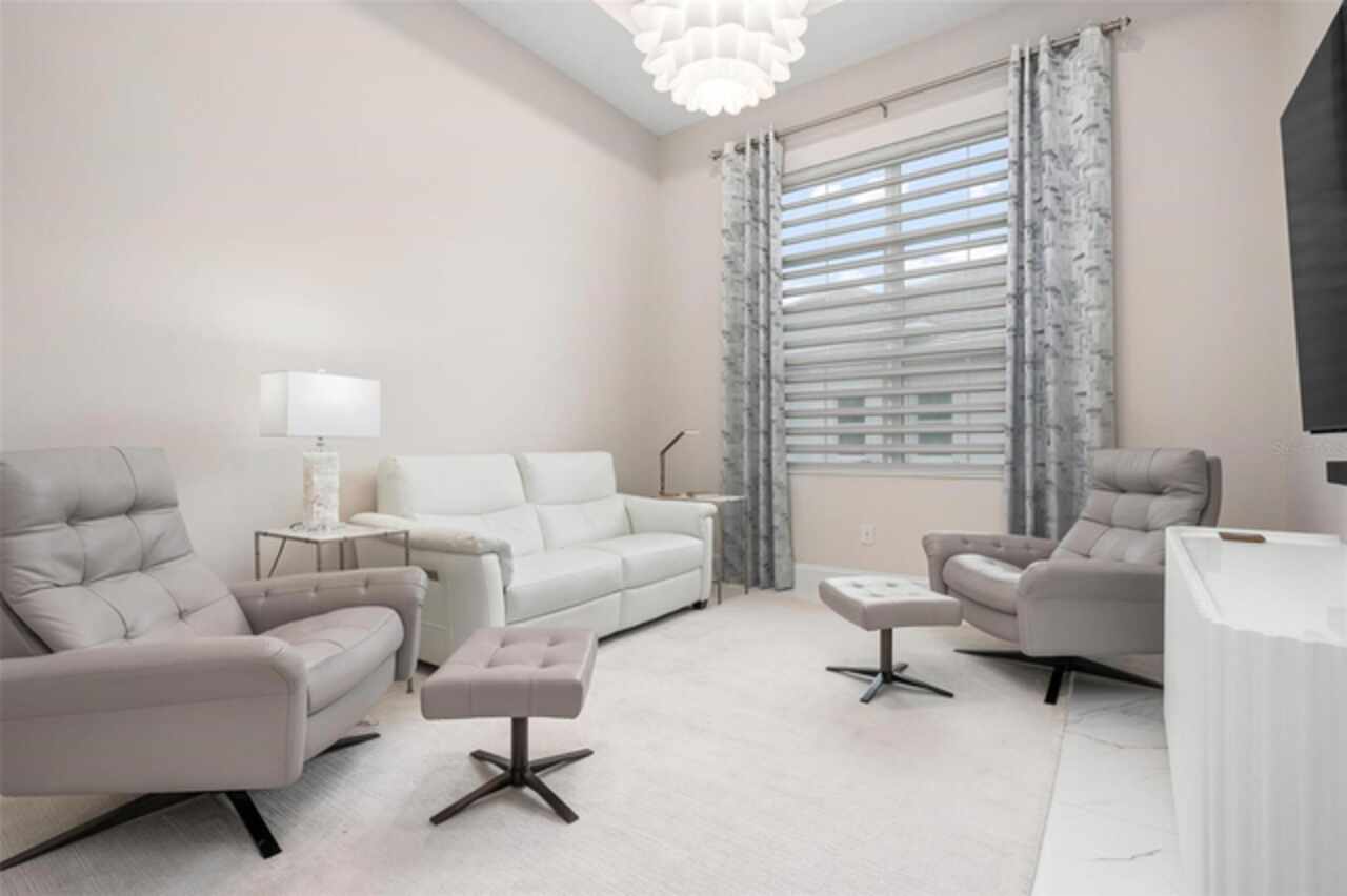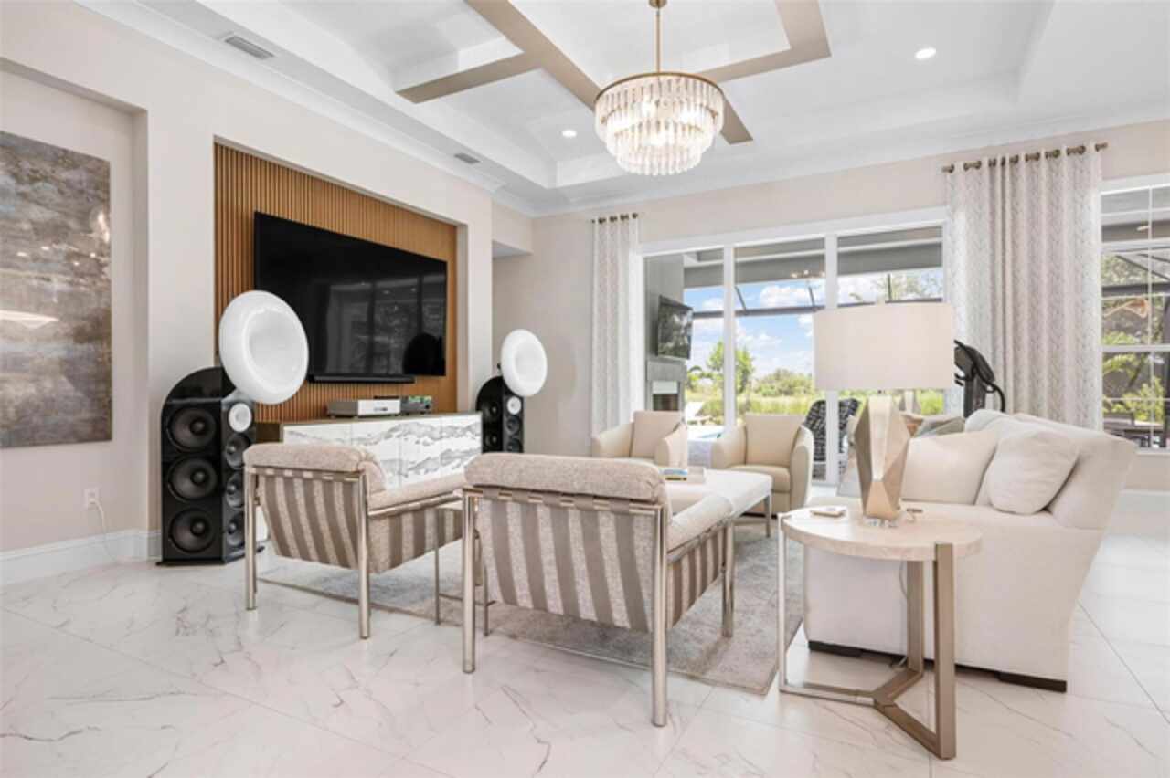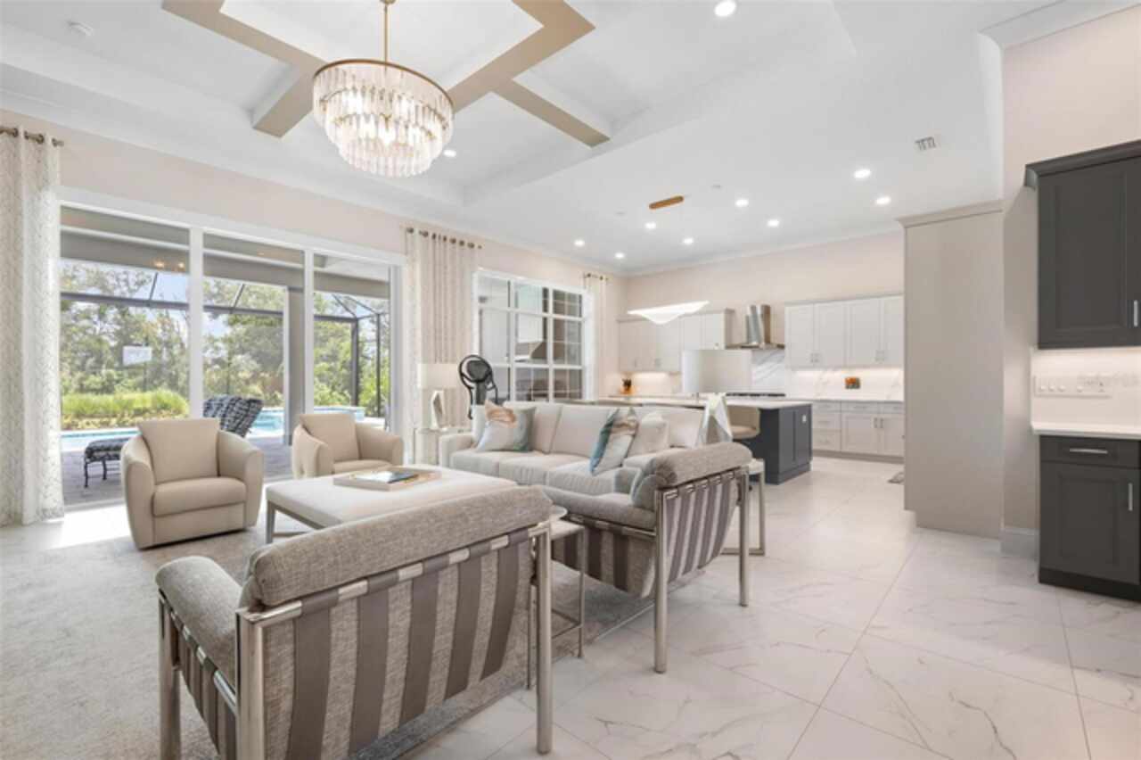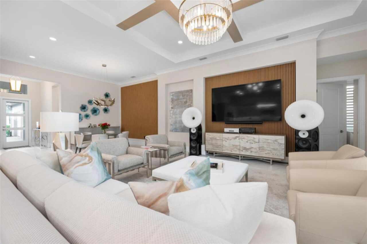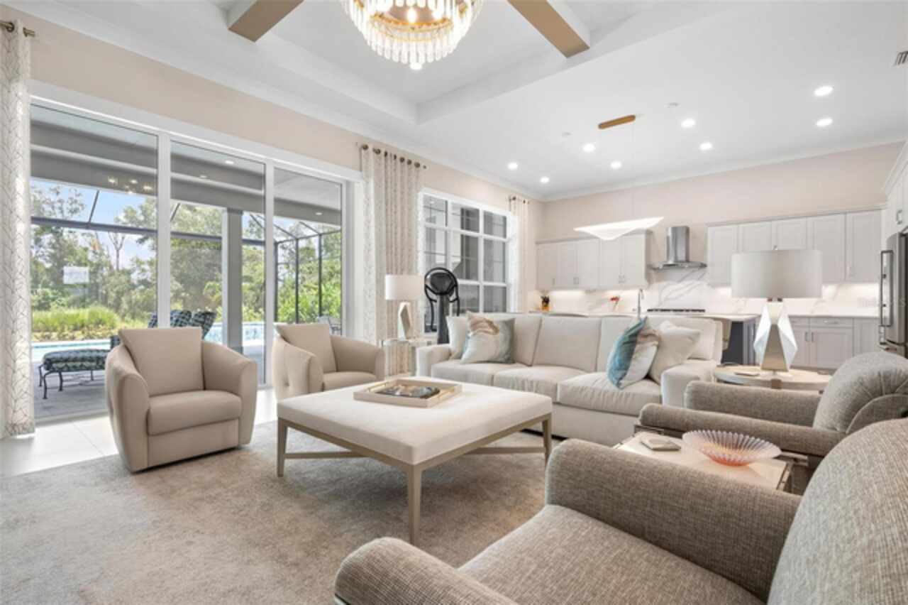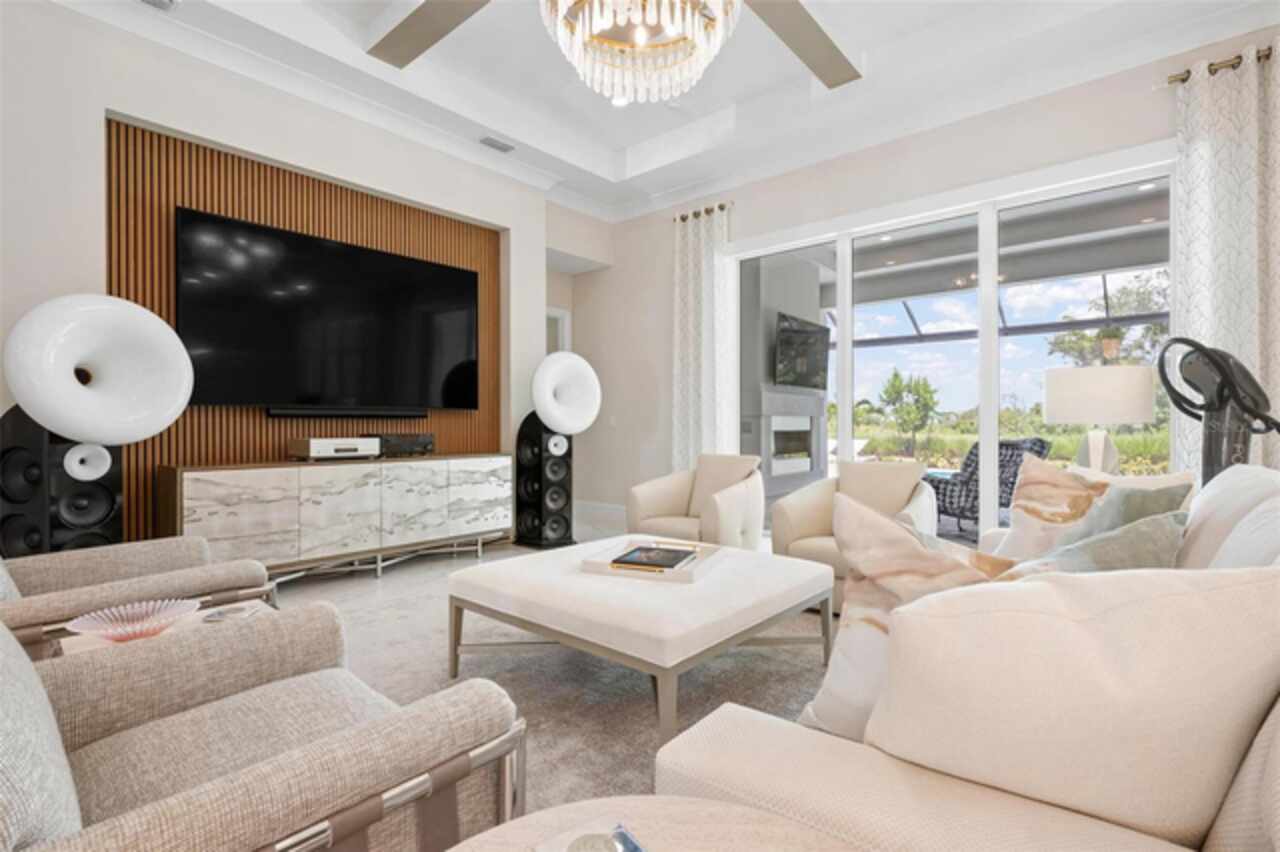 Seller wants offers! Move right into this professionally decorated Easton 3 by Stock Luxury Homes—already complete and perfectly positioned with private wooded views and a spectacular pool & spa. Why wait for new construction when this one is ready now? Blending modern style with timeless comfort, this home offers a seamless balance of privacy, elegance, and craftsmanship. Natural light fills the open floor plan, highlighting soaring ceilings and contemporary finishes that create an airy, inviting atmosphere ideal for both everyday living and entertaining. Window treatments are custom designed and Pirouette blinds by Hunter Douglas in primary bedroom and media rooms along with remote-controlled blinds in great room and kitchen. At the heart of the home, the chef’s kitchen impresses with Kitchen Aid appliances, sleek quartz countertops, custom designed painted wood cabinetry, and a generous island perfect for gathering. The primary suite is a retreat of its own, featuring two walk-in closets, peaceful views of the pool and wooded backdrop, and a spa-inspired bath with a glass-enclosed shower, free-standing tub, and refined finishes. The indoor-outdoor connection is unmistakable, with expansive sliding doors leading to the covered rear porch, sparkling pool & spa and outdoor grill center, where you can relax, entertain, or simply take in the tranquil setting. Located within the highly sought-after Wild Blue community, residents enjoy a wealth of amenities including tennis courts, pickle ball, exercise zone, fishing access, and miles of scenic sidewalks for walking and biking. This home delivers the best of luxury living, move-in ready, thoughtfully designed, and set in one of the area’s most exciting new communities. Schedule your private showing today. Do not sit on the fence too long with this property, we will be reducing the price on this beautiful home frequently until it sells. NOTE: Furnishings are available under separate bill of sale, there are a few exclusions to furniture and artwork.