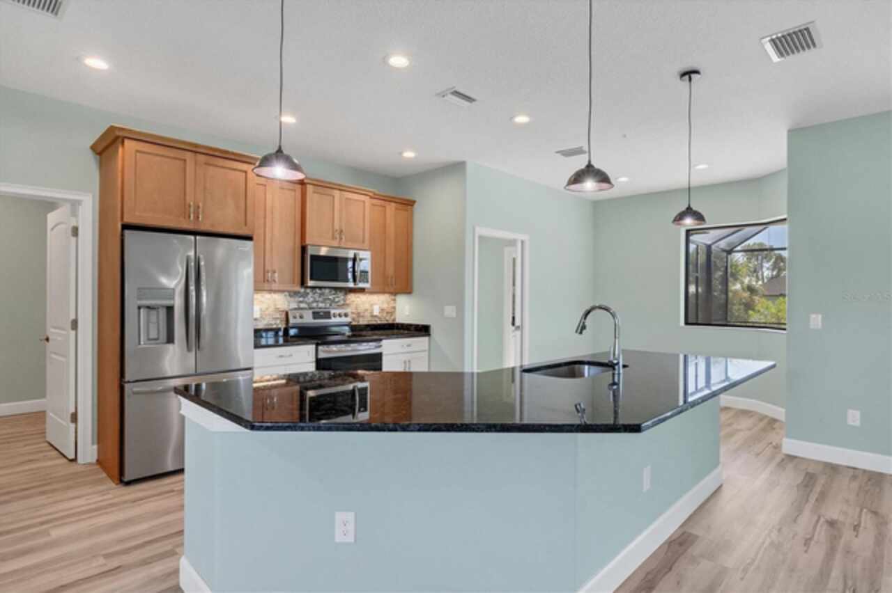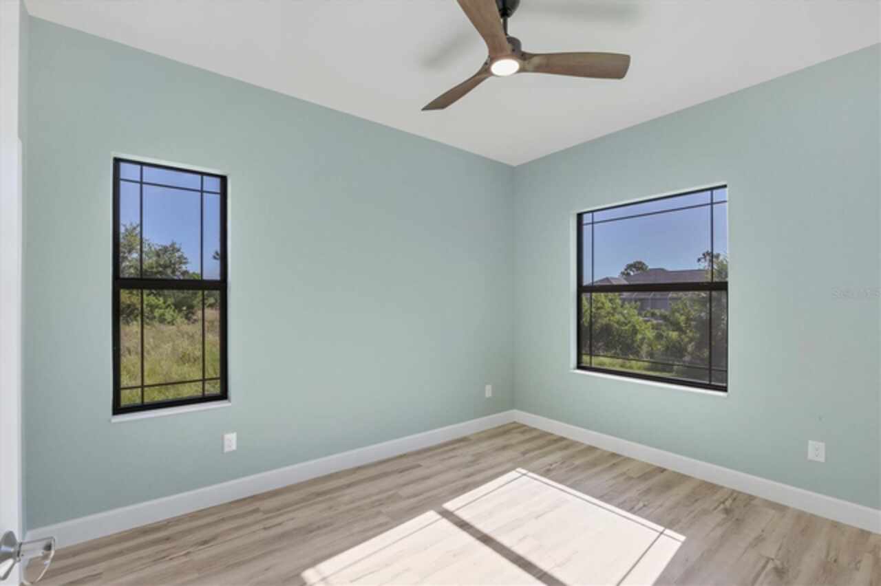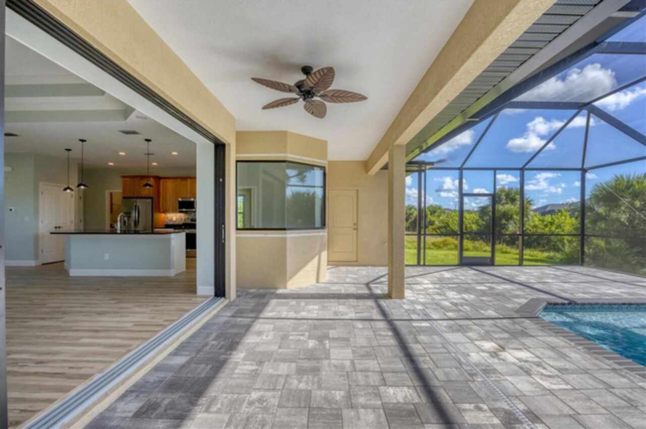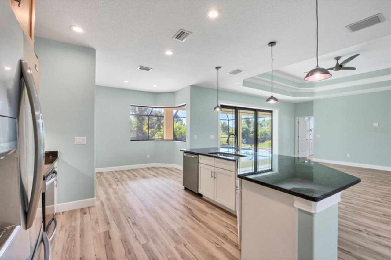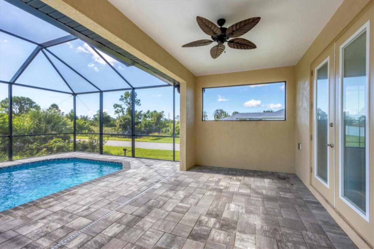 Why wait to build when you can move right into this 2023 custom-built home located in the waterfront community of South Gulf Cove. This move-in ready home was built by a local builder and perfectly balances Florida living and efficiency. When you walk through the front doors, you are greeted by a row of pocketing 8-foot sliders pouring light into every room. The open floor plan blends dining, kitchen, and a spacious living room, creating a seamless space for relaxation or hosting. The kitchen, a centerpiece for entertaining, features a large granite island, plenty of storage, soft-close cabinets, and high-end Frigidaire Gallery appliances. The spacious primary suite is a private retreat with French doors leading directly to the pool area; it also boasts a large walk-in closet and a spa-like en-suite bathroom with a beautifully tiled shower, bench, and custom double vanity. The two guest bedrooms are optimally sized for comfort and convenience, offering privacy and space for visitors or family members. The secondary bathroom serves as a pool bath, providing easy access to and from the outdoor area. The Lanai area has been created as a perfect setting for entertaining or enjoying family meals and grilling with a large under-shade area, recess lighting, and ceiling fans. The spacious pool has all the fun features, including a sun shelf, fountains, and a relaxing waterfall. Just minutes to Boca Grande beaches, plenty of local golf courses, restaurants, shopping, and more. Upgrades Include spray foam insulation, impact windows and doors, luxury vinyl throughout, irrigation, and a saltwater pool.
