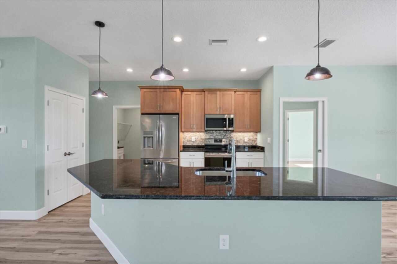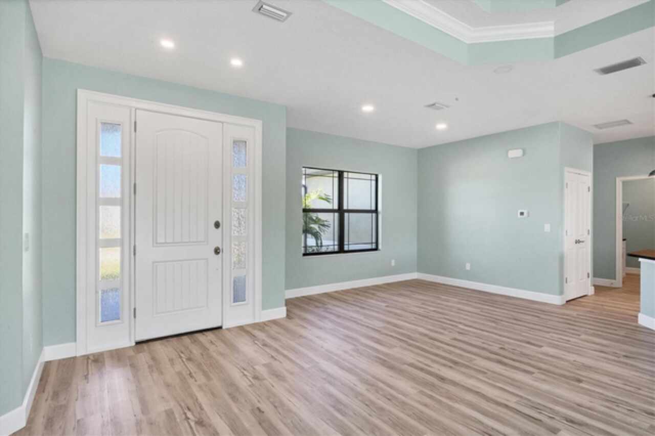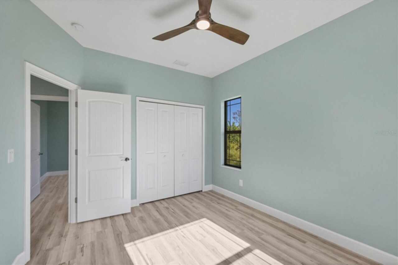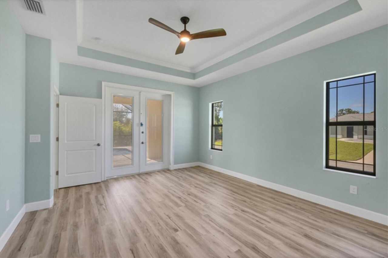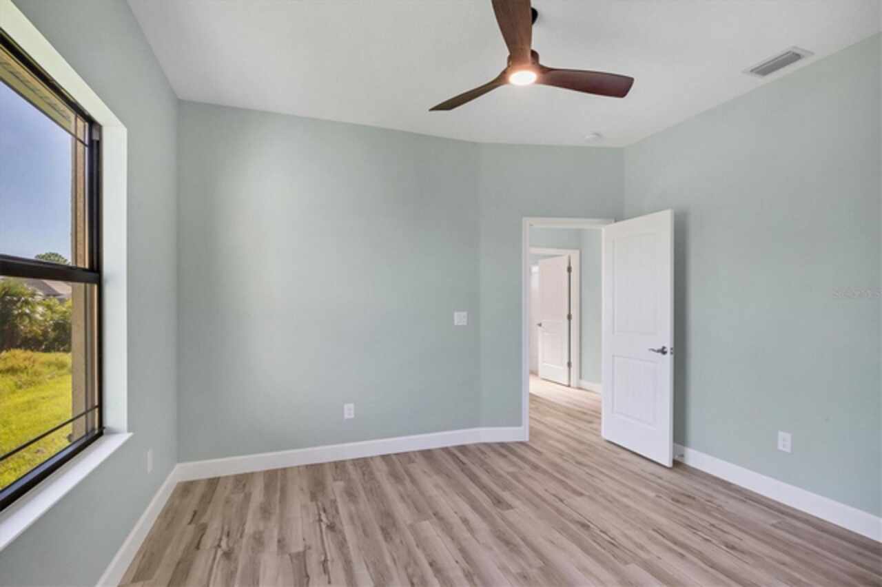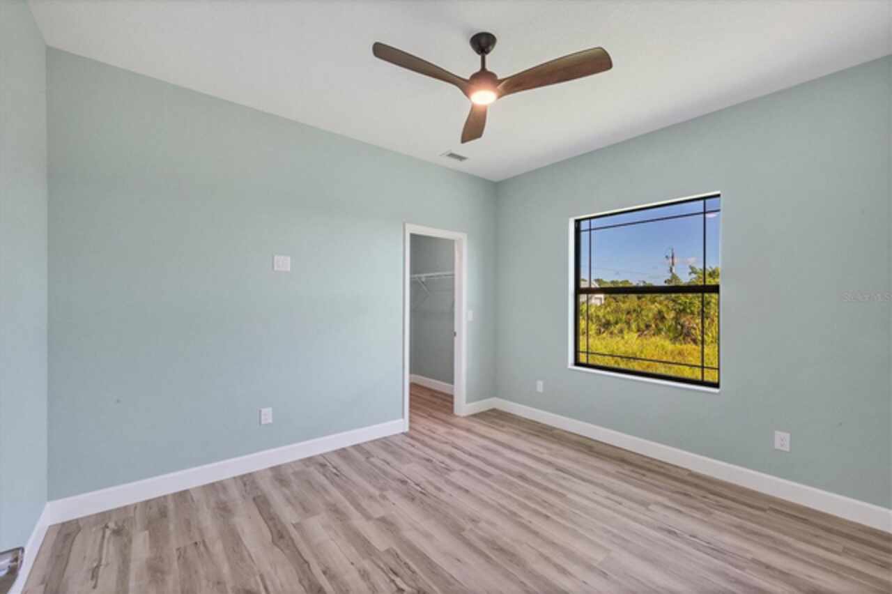 Why wait to build when you can move right into this 2023 custom-built home located in the waterfront community of South Gulf Cove. This move-in ready home was built by a local builder and perfectly balances Florida living and efficiency. When you walk through the front doors, you are greeted by a row of pocketing 8-foot sliders pouring light into every room. The open floor plan blends dining, kitchen, and a spacious living room, creating a seamless space for relaxation or hosting. The kitchen, a centerpiece for entertaining, features a large granite island, plenty of storage, soft-close cabinets, and high-end Frigidaire Gallery appliances. The spacious primary suite is a private retreat with French doors leading directly to the pool area; it also boasts a large walk-in closet and a spa-like en-suite bathroom with a beautifully tiled shower, bench, and custom double vanity. The two guest bedrooms are optimally sized for comfort and convenience, offering privacy and space for visitors or family members. The secondary bathroom serves as a pool bath, providing easy access to and from the outdoor area. The Lanai area has been created as a perfect setting for entertaining or enjoying family meals and grilling with a large under-shade area, recess lighting, and ceiling fans. The spacious pool has all the fun features, including a sun shelf, fountains, and a relaxing waterfall. Just minutes to Boca Grande beaches, plenty of local golf courses, restaurants, shopping, and more. Upgrades Include spray foam insulation, impact windows and doors, luxury vinyl throughout, irrigation, and a saltwater pool.