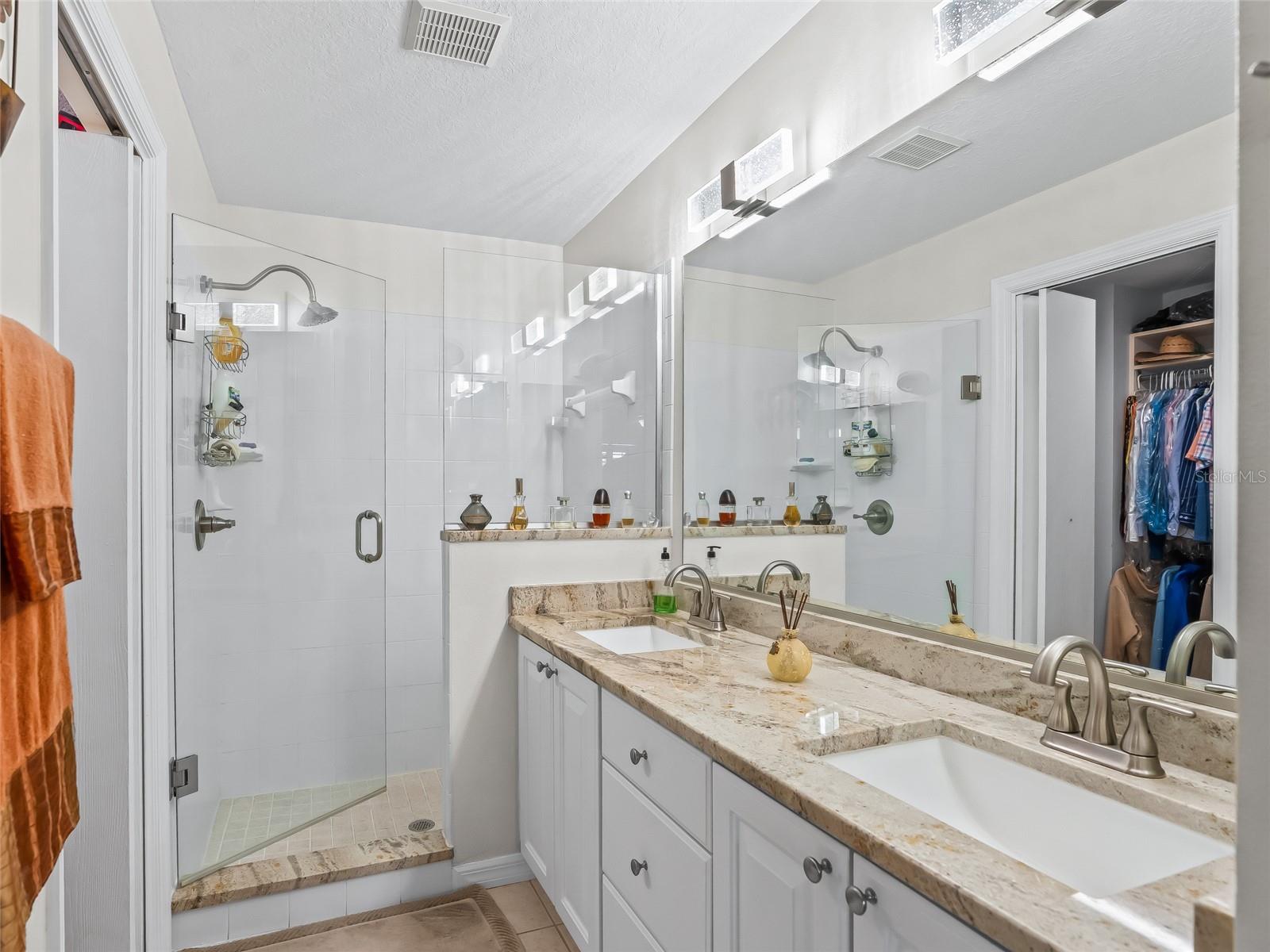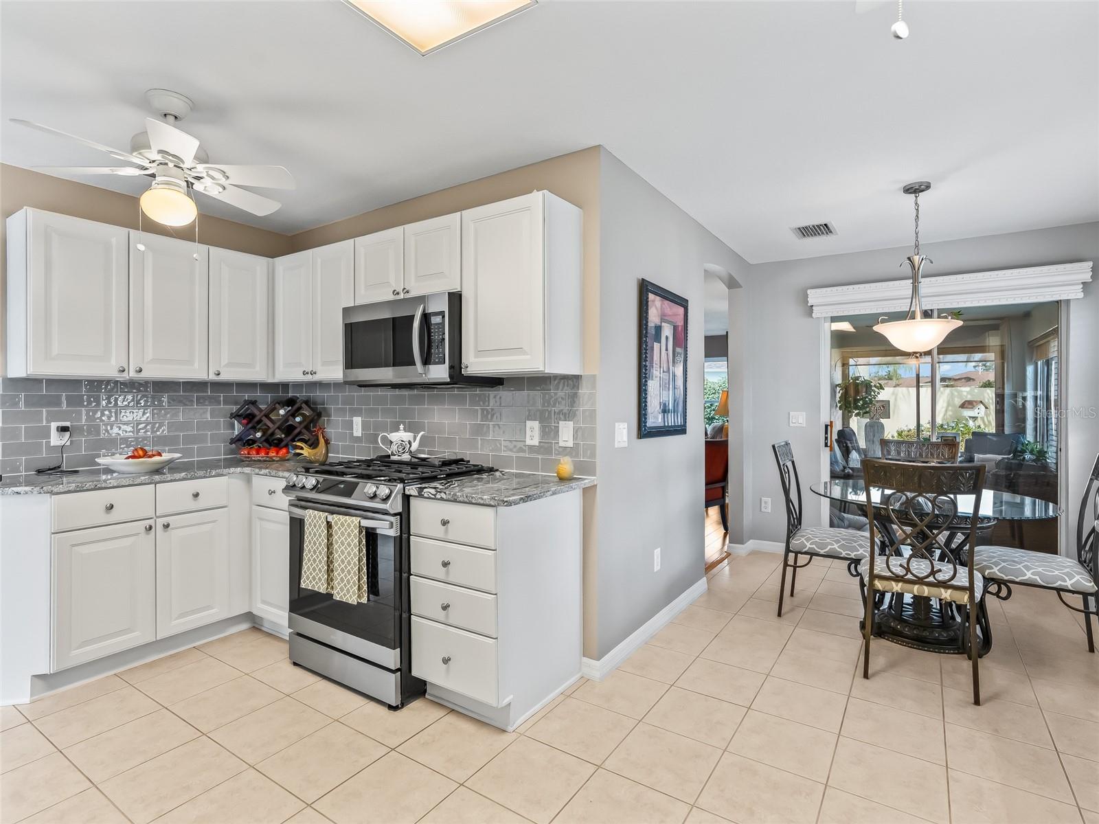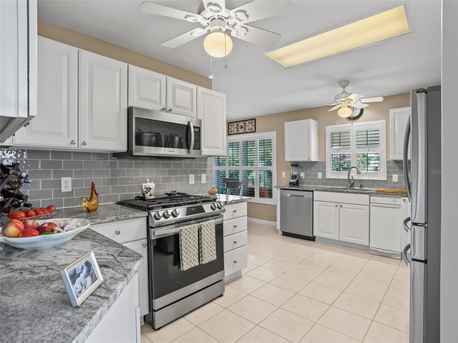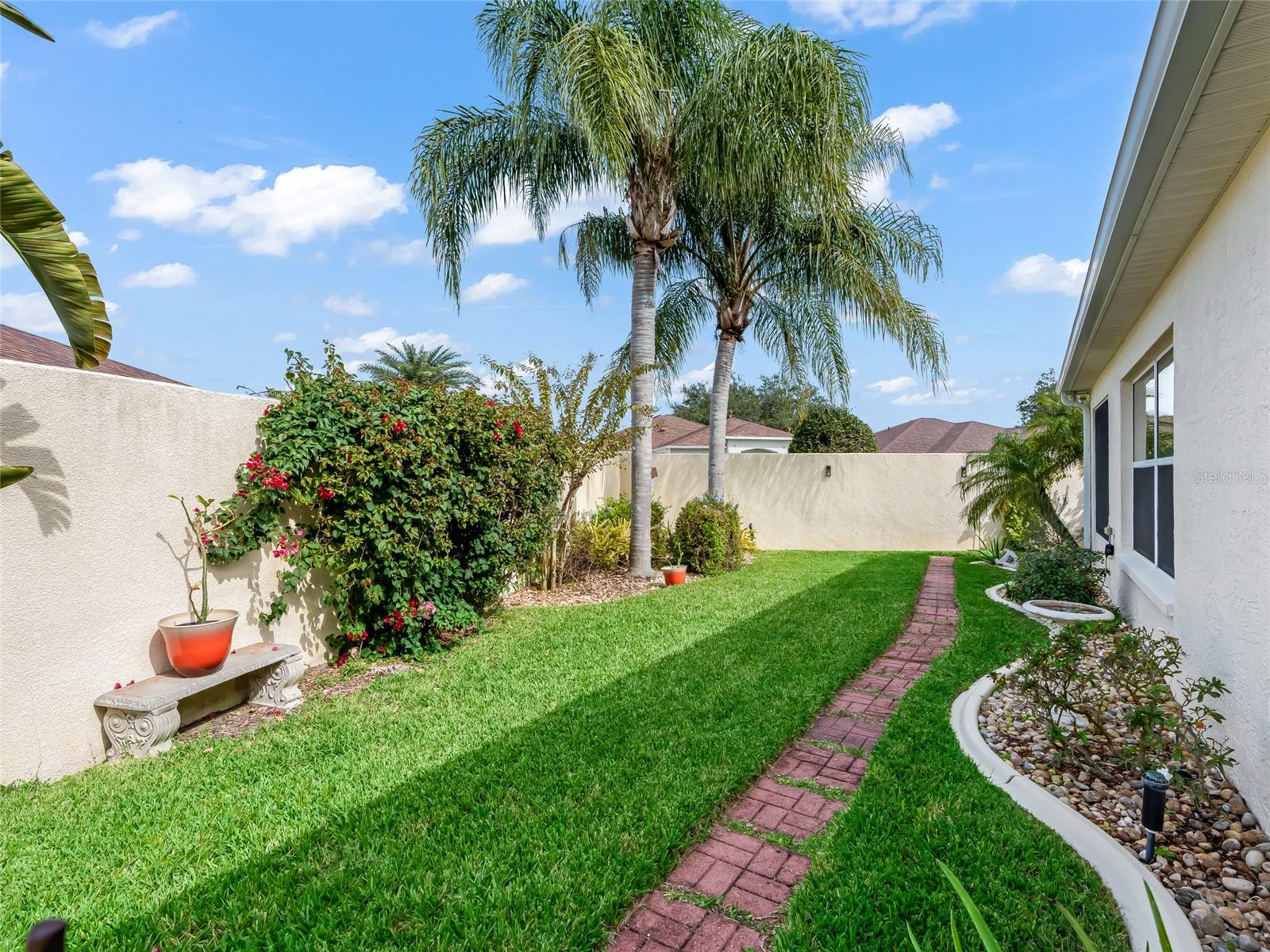 BOND PAID! This is truly an Ultimate Stoneybrook Courtyard Villa! 1580 heated sq ft of living!! New HVAC in 2020 and new roof in 2021!! Natural gas hot water heater, HVAC and stove. New garbage disposal and a built in trash compactor in 2020. New appliances in 2021- dishwasher, microwave, stove and frig. On a corner lot and landscaped to the hilt! A New 'hard topped' Pergola was added to the side yard patio and also has an insulated patio cover. The side patio has 'shark coating sealer' on the concrete, and it also includes 2 outdoor ceiling fans and ample outside outlets. There are 2 sides of glassed windows in 4 season Sunroom which looks out to the beauty of the groomed and plushly landscaped privacy fenced yard. The Florida room has ducted heat and air. Natural gas hook up for a grill at the entertaning side of the patio. The lot is fully fenced on all sides and comes with a garden shed (glass decorative pots and yard ornaments of potted plantings do not stay with the Villa) The bird bath and concrete bench do stay with the landscaped yard. The interior design is a rare one with a breakfast nook off the Kitchen plus a more formal dining area off the living room. The kitchen is delightfully decorated and includes new granite counter tops as does both bathrooms. There are sliding glassed doors to the Florida room. The living area (includes living room furniture except for the lamps and mirror and personal items) has views to the covered patio with pergola, and the back yard that's delightfully colorful with professional landscaping. Inside, the split bedroom arrangement includes a 3rd bedroom set up as an office, the 2nd bedroom is big and roomy and will delight any guest. The primary bedroom has huge walk in closets and ceilings with ceiling fan. Both bathrooms have ceramic tile floors. The ensuite bath includes a Roman shower and water closet plus dual sinks. The garage, with 2 foot expansion, includes a washer dryer (included in the package sale) area with utility sink, and pull down stairs for some attic storage. Plenty of natural light from the oversized window in the garage too. This consideration will be worth your while!