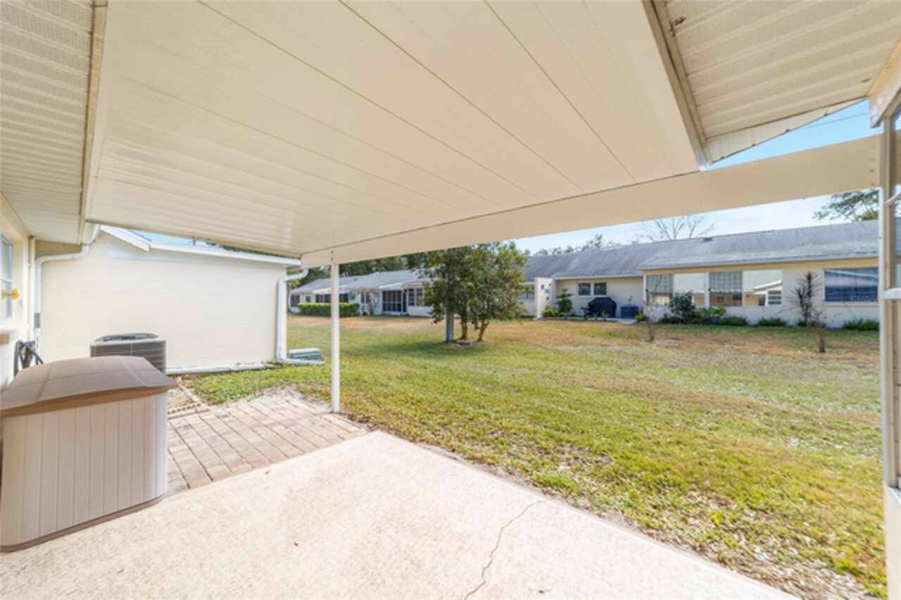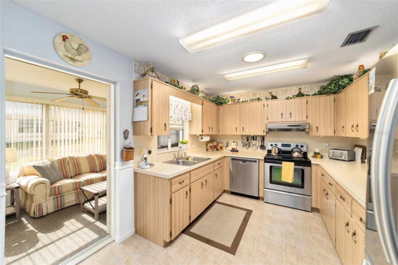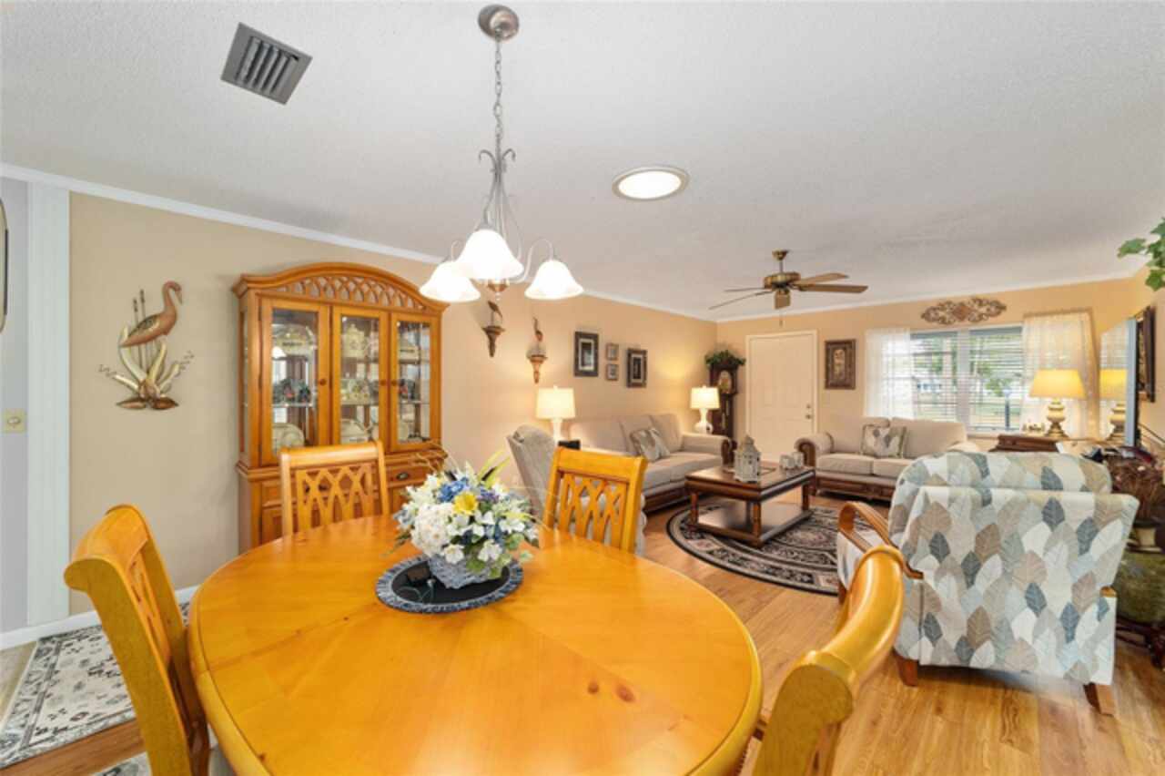 Nicely decorated villa with many extras. This expanded Philadelphian model villa is located in the much sought after 55+ community at On top of the World. A large front porch under roof welcomes you to the home. Room/Formal Dining area lie the Master and Guest Bedrooms joined by a common hallway and Guest Bath. The spacious Master Bedroom features a large walk-in closet and Master Bath with walk-in shower. Crown molding throught the house is an added feature. The glass enclosed Florida Room is under air and heat just beyond the kitchen, on the left side is a covered back patio perfect for cooking and entertaining. Kitchen features Stainless steel appliances The extra wide garage is perfect for parking your vehicle and a golf cart. Roof installed in 2017, Air conditioner replaced in 2021.Home is sold furnished or unfurnished. Enjoy the community's extensive amenities, including golf courses available with golf membership, indoor and outdoor pools, fitness center, racquetball, tennis, pickleball courts, walking trails, gardening areas, a hobby building, and an RC car area. With the convenience of taking your golf cart to nearby grocery stores and shopping centers ,
