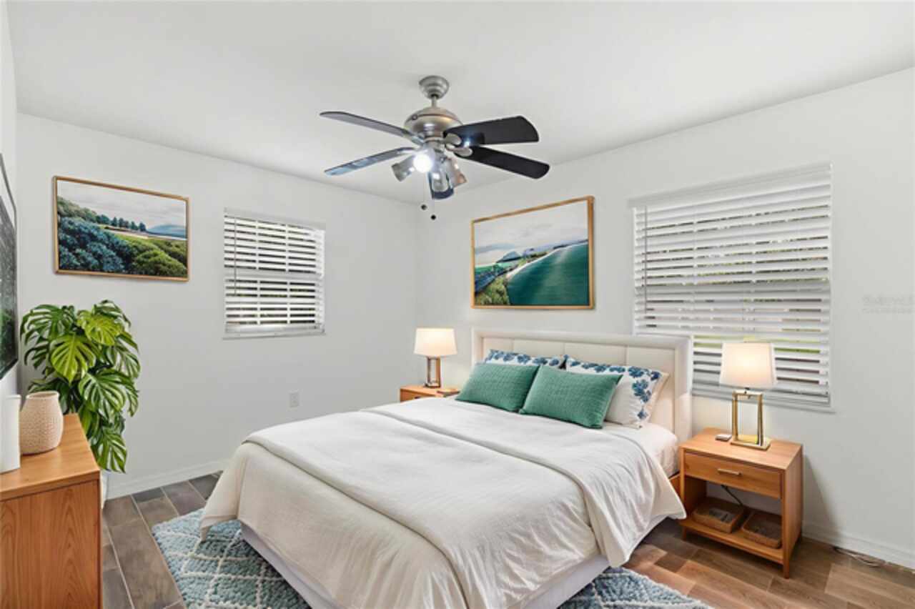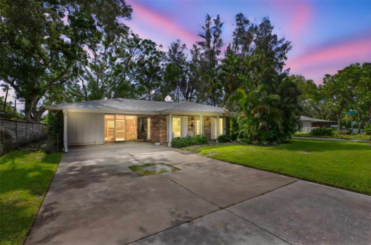 One or more photo(s) has been virtually staged. New HVAC System (2025) and Recently Installed Roof (2021) in a Prime Location with No HOA or CDD Fees or Restrictions! This charming 3-bedroom, 2-bath home is situated on a spacious corner lot! Sturdy brick construction, vibrant landscaping, and a covered front porch welcomes your guests, as well as a cozy spot for enjoying your morning coffee or evening drink. Inside, updates on this split floor plan include wood-like porcelain tile plank flooring throughout, Quartz countertops in the kitchen and baths and new appliances including a convection double oven. The primary bedroom has its own entrance leading into the bedroom for added privacy making it perfect for multi-generational living, potential income-generating/roommate situation. The en-suite bathroom has a new vanity and walk-in shower. The secondary bedrooms are spacious and share a guest bathroom, which includes a new vanity and tub and shower combination. There is a screened and covered porch and additional storage in the rear of the home as well as a room that contains the mechanical items and laundry area. The oversized carport shields your vehicle from weather elements and offers a sheltered space while you enter or exit your vehicle. The yard is grand and offers plenty of space for gatherings, BBQs, pets, play, and much more! This location is desirable as it is one minute to Riviera Bay Park where there are tennis courts, playground, large pavilion, and lighted recreational trails! With many local public boat ramps including Wheedon Island that has over 3 acres, this coastal system is home to numerous species of native plants and animals, an educational facility and a rich cultural history. There are even rentals available to canoe or paddleboard or launch your own. Downtown St. Pete is less than 15 minutes away and was named the “One of the Best Place to Travel in the US” by Forbes Magazine (2023)! Also located about 20 minutes to the #1 Rated St. Pete Beach and the St. Pete-Clearwater International Airport is just 15 minutes away and Tampa International Airport is 20 minutes away.