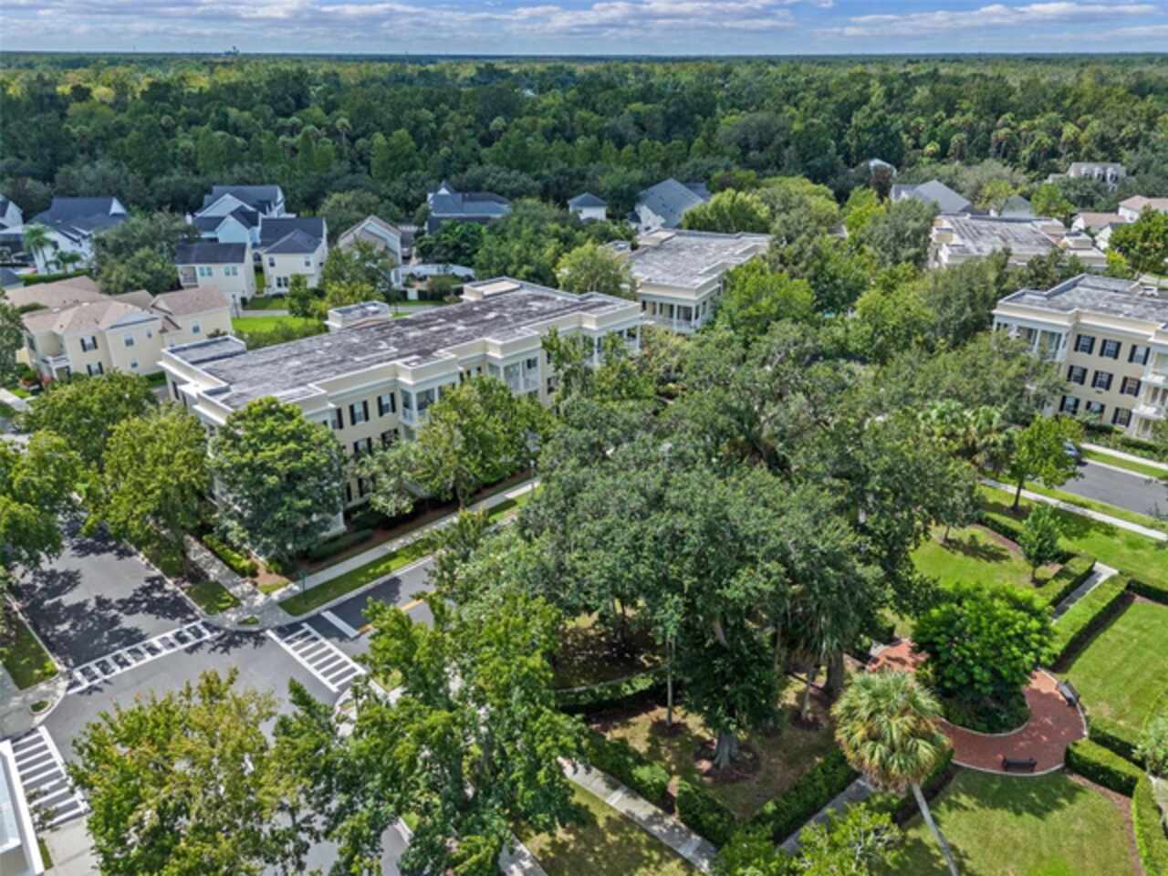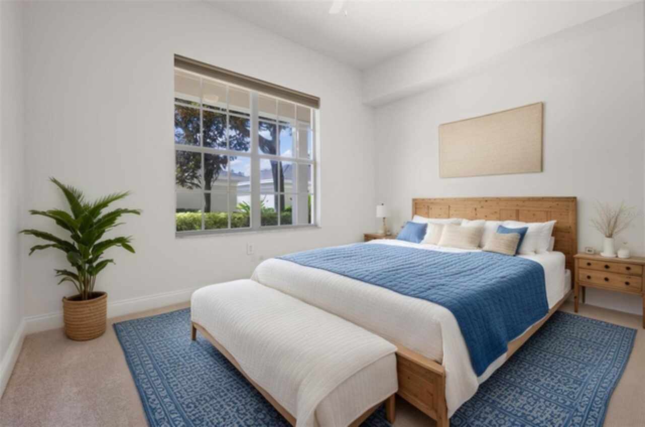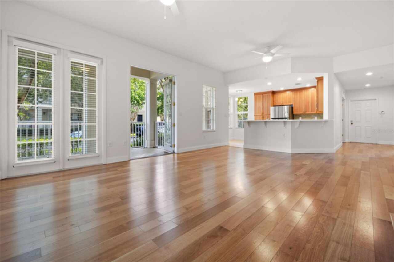 One or more photo(s) has been virtually staged. Welcome to your charming oasis at 844 Blue Sage Street, Unit 104 located in the highly desirable East Park Terraces of Celebration, FL. This delightful ground floor corner unit offers an inviting and open layout, perfect for both relaxation and entertaining. Step inside to discover an abundance of natural light pouring into the airy living spaces, creating an ambiance of warmth and comfort. With 1, 406 square feet of living space, this home features three spacious bedrooms and two well-appointed bathrooms. The kitchen is a chef’s delight, boasting sleek stainless-steel appliances and plenty of room for culinary creativity. The home features fresh paint, updated fans, and brand-new carpet. Step outside through the double set of French doors to the wrap around porch providing a welcoming space to enjoy the park views - ideal for relaxing with your morning coffee. You'll love the convenience of the in-unit laundry and detached garage, along with included parking pad. The pet-friendly community of Celebration boasts fantastic amenities, including a pool for those sunny Florida days, miles of conservation trails, and a playground for fun-filled afternoons. For sports enthusiasts, enjoy the tennis court and benefit from living in a golf course community. Embrace the vibrant community spirit of Celebration and enjoy the common outdoor space this charming condo provides. Make this unit your serene retreat in Celebration, where comfort meets community.