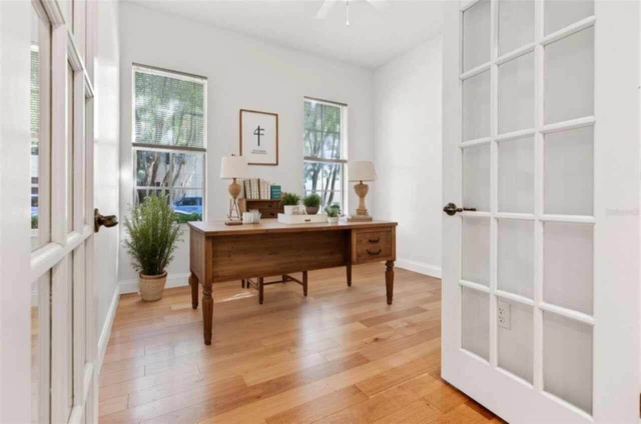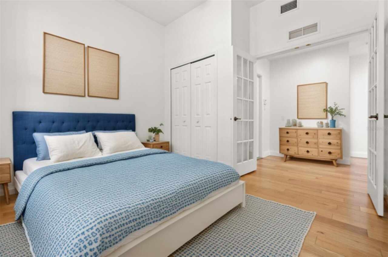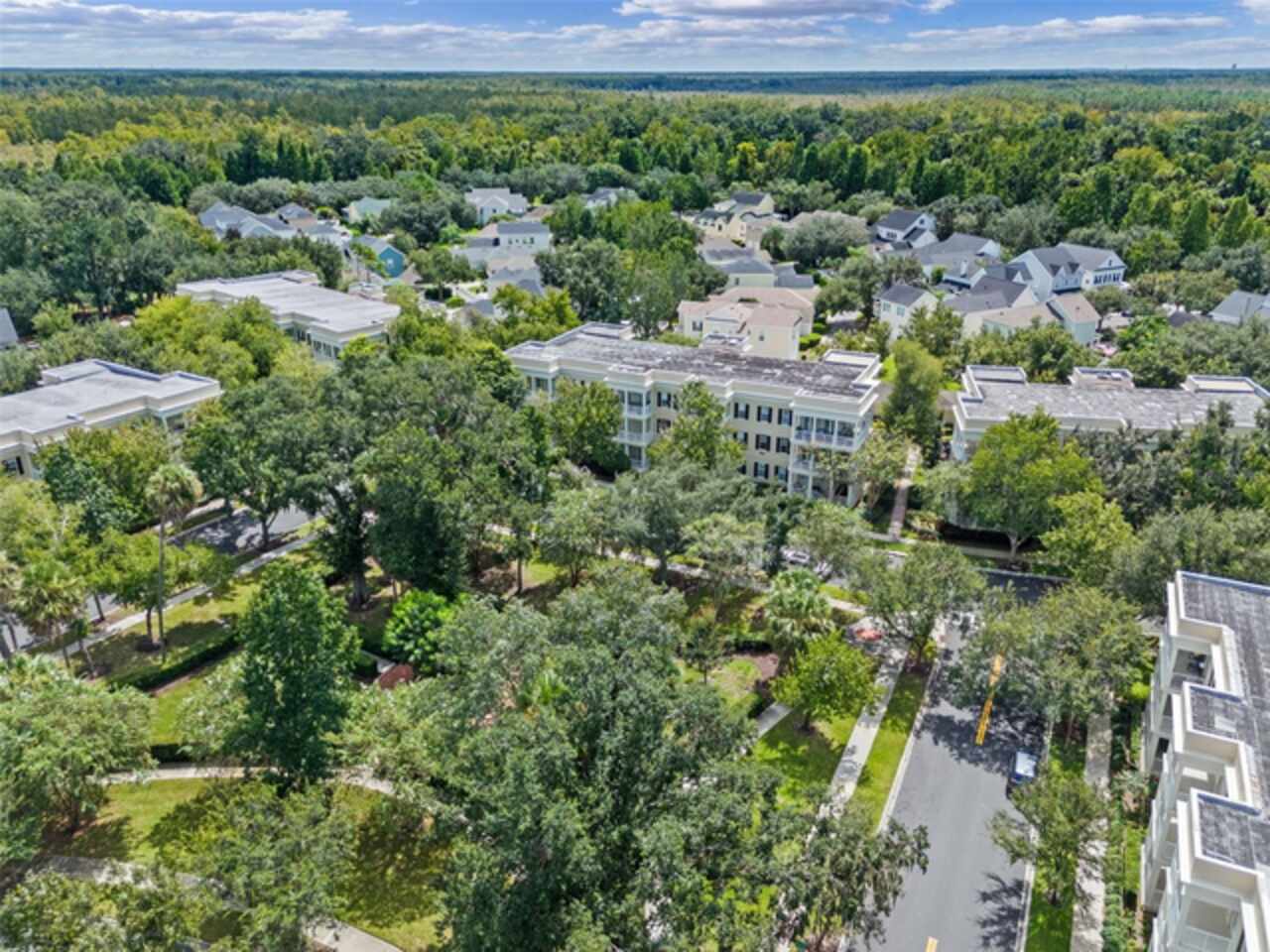 One or more photo(s) has been virtually staged. Welcome to your charming oasis at 844 Blue Sage Street, Unit 104 located in the highly desirable East Park Terraces of Celebration, FL. This delightful ground floor corner unit offers an inviting and open layout, perfect for both relaxation and entertaining. Step inside to discover an abundance of natural light pouring into the airy living spaces, creating an ambiance of warmth and comfort. With 1, 406 square feet of living space, this home features three spacious bedrooms and two well-appointed bathrooms. The kitchen is a chef’s delight, boasting sleek stainless-steel appliances and plenty of room for culinary creativity. The home features fresh paint, updated fans, and brand-new carpet. Step outside through the double set of French doors to the wrap around porch providing a welcoming space to enjoy the park views - ideal for relaxing with your morning coffee. You'll love the convenience of the in-unit laundry and detached garage, along with included parking pad. The pet-friendly community of Celebration boasts fantastic amenities, including a pool for those sunny Florida days, miles of conservation trails, and a playground for fun-filled afternoons. For sports enthusiasts, enjoy the tennis court and benefit from living in a golf course community. Embrace the vibrant community spirit of Celebration and enjoy the common outdoor space this charming condo provides. Make this unit your serene retreat in Celebration, where comfort meets community.