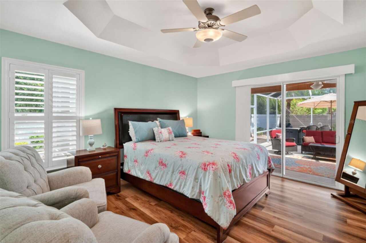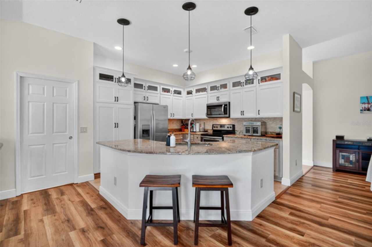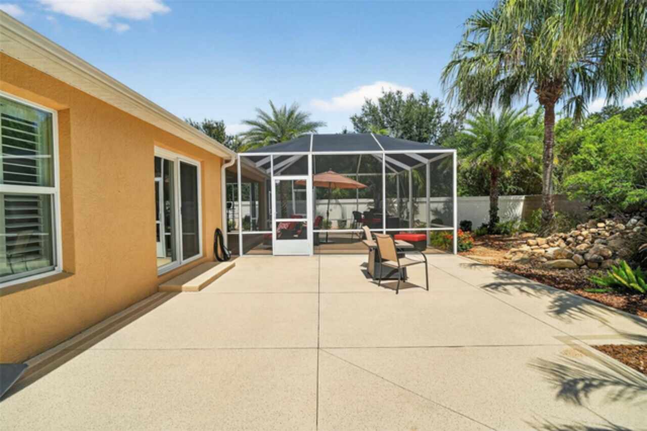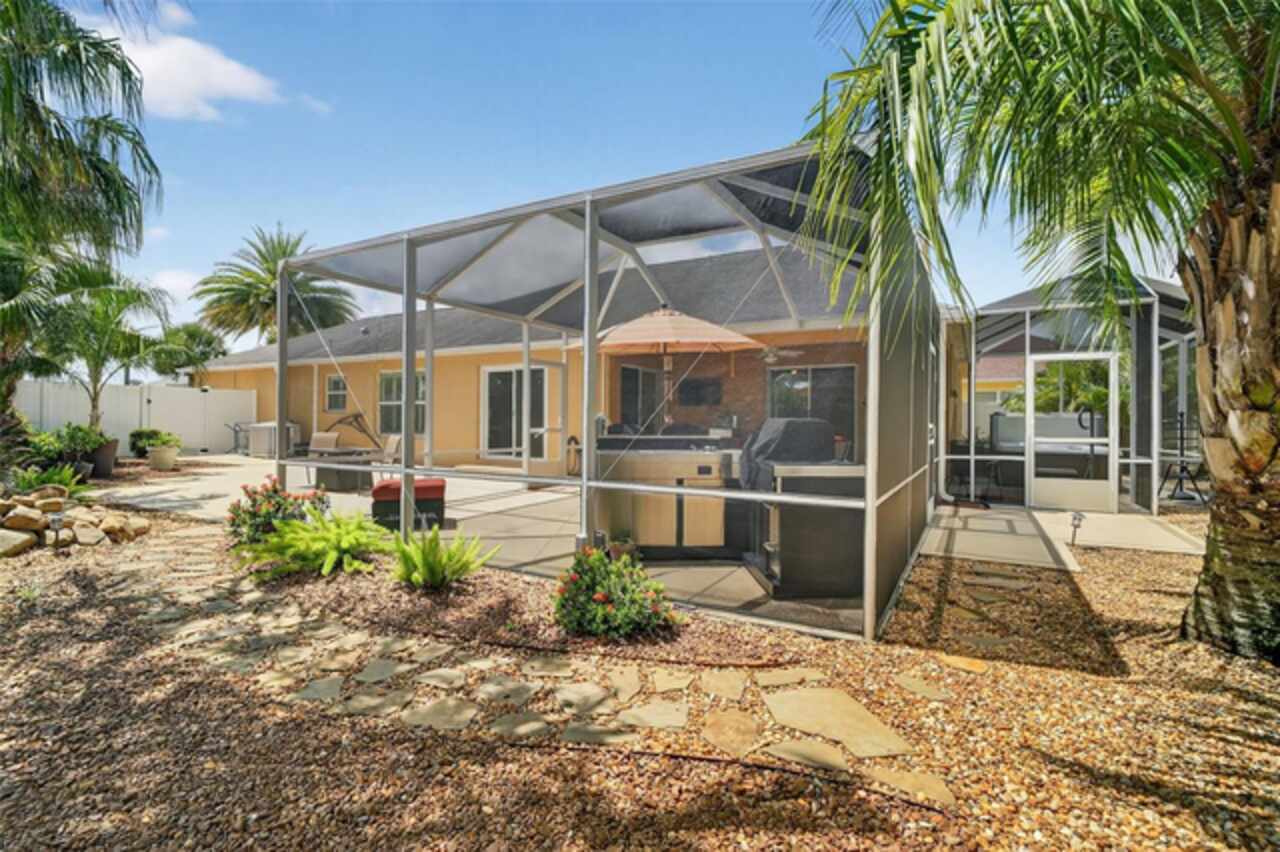 Welcome to your Oasis in the Villages. This Arlington courtyard villa on a corner site with room for a pool is the definition of WOW. The upgrades are too numerous to list but several are large bird caged with a hot tub and summer kitchen and TV. Also, a large patio with a fireplace and covered seating area. The home has a brand-new roof coming, The home also has a leased solar system resulting in lower electric bills. Some interior features include laminate flooring throughout, plantation shutters, and stainless-steel appliances. There are many more upgrades that make this a one-of-a-kind property in the villages. You will immediately fall in love with this property. The information here is deemed to be correct but should be verified by the buyer. Seller's payed $550, 000.00 and did $50, 000.00 in UPGRADES their loss is your gain!