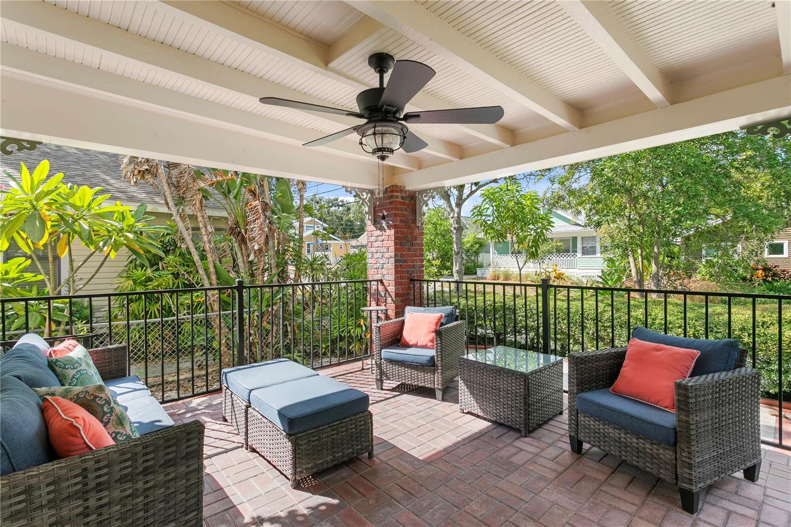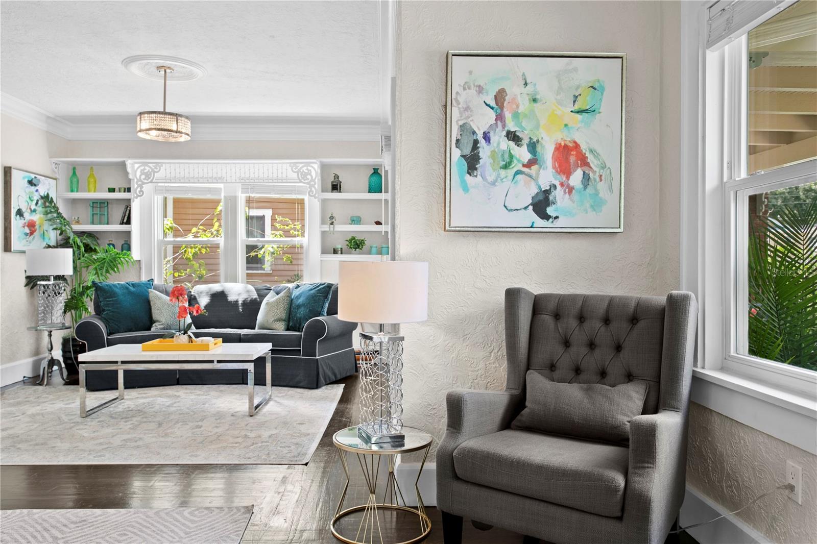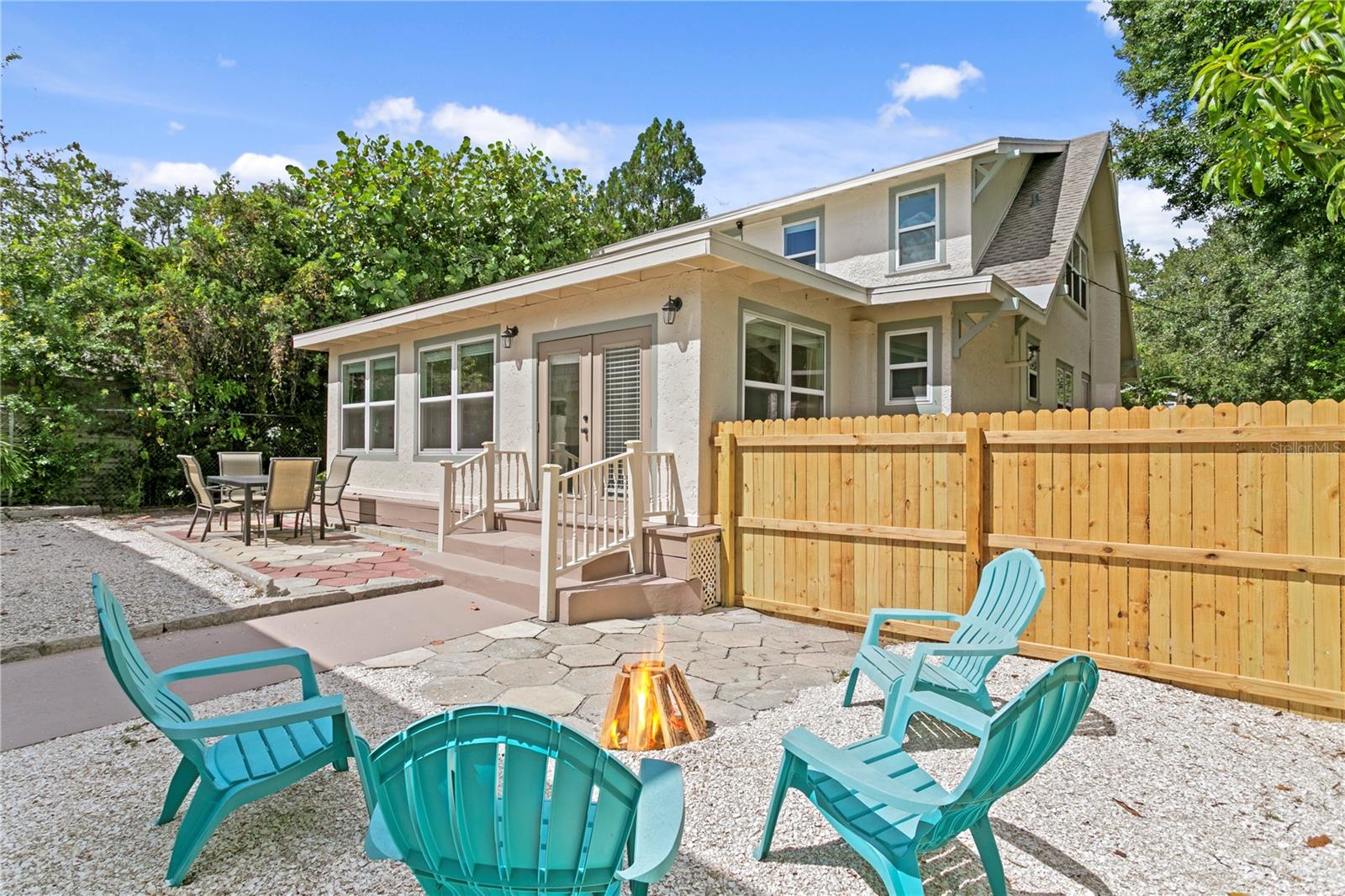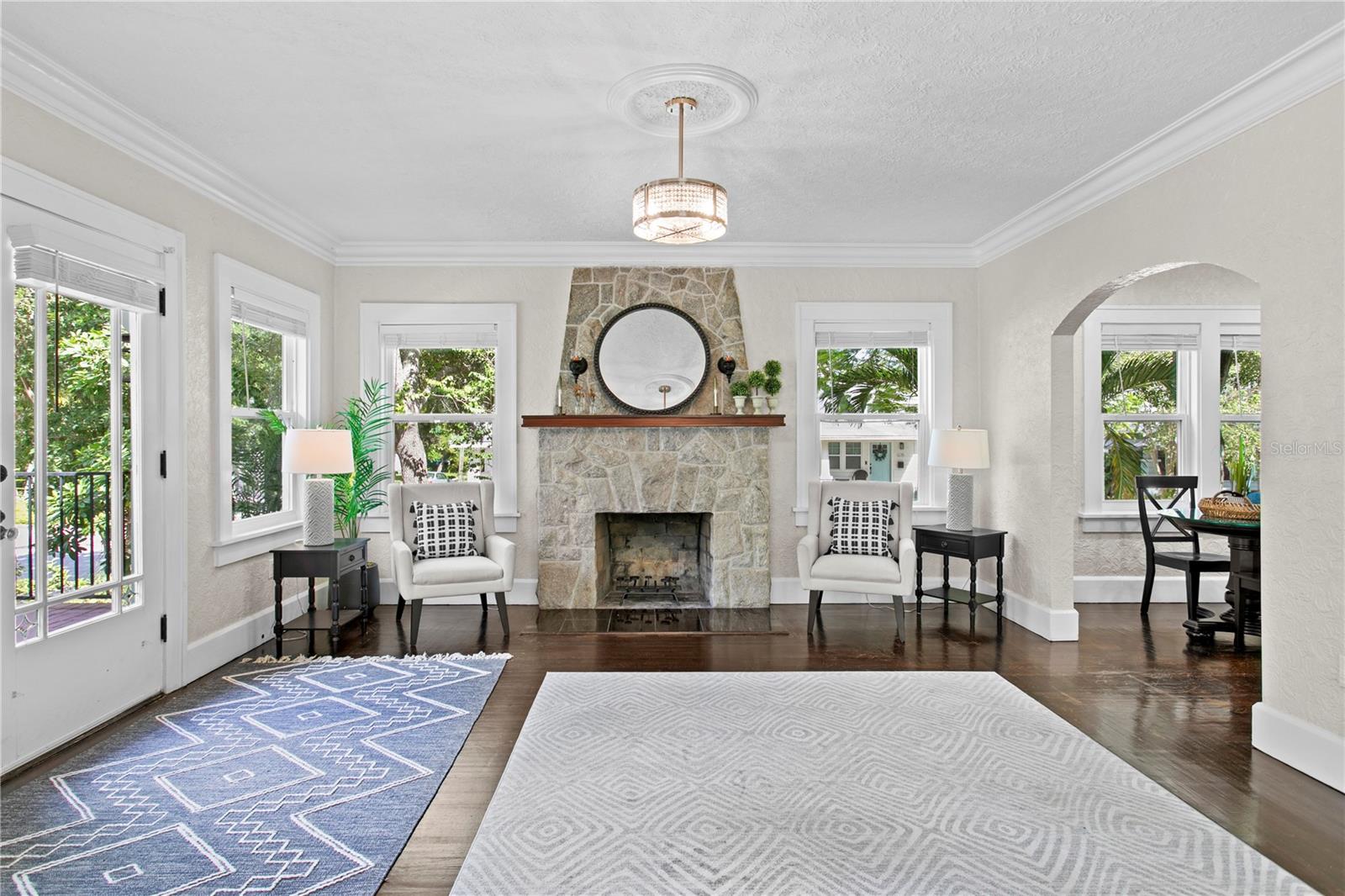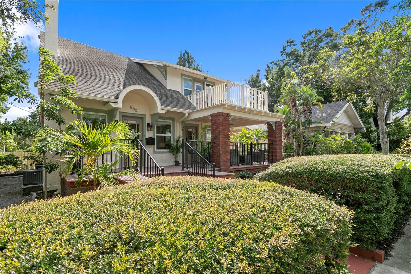One or more photo(s) has been virtually staged. STUNNING 1925 CRAFTSMAN ESTATE WITH INCOME-PRODUCING GUEST HOUSE MINUTES FROM CRESCENT LAKE PARK IN ST PETERSBURG FL | Discover architectural magnificence in this meticulously preserved 1925 Craftsman masterpiece, nestled in one of St. Petersburg’s most coveted neighborhoods just a short 2 block stroll from the pristine beauty of Crescent Lake Park. This extraordinary estate seamlessly blends century-old craftsmanship with contemporary luxury across 2, 754 square feet of elegant living space, a 2 car detached garage, complemented by a fully independent and renovated 910-square-foot guest house complete with separate address, 2 bedrooms and an office, utilities, its own laundry, and a garage for storage. Every corner of this distinguished home celebrates its rich heritage through carefully preserved original features: hardwood floors, hand-crafted artistic wall plaster, elegant crown molding, a striking wood burning fireplace, period-authentic interior doors adorned with cut-glass knobs, and exquisite detailed trim work that speaks to the era’s superior artisanship. The options for the residence are endless. The main house offers 2 master suites with ensuite bathrooms (one downstairs and one upstairs) as well as a 3rd bedroom upstairs with a full guest bath. The downstairs primary suite offers zen-like qualities with a sizable bathroom complete with a wet shower and freestanding tub, dual vanities, and a commode room for privacy. The upstairs primary is incredibly roomy with a seating area for reading, dual closets and a private balcony retreat. Modern updates have enhanced this classic beauty with today’s conveniences while respecting its historic integrity. Updates include a new flat roof (2024), three energy-efficient HVAC systems (2 of the 3 were replaced in 2024) with dual-zone climate control, vinyl double-pane insulated windows, premium appliances, and beautifully appointed renovated bathrooms. Enjoy the outdoors in rain or shine with a beautiful covered front porch, private fenced rear patio, and open patio adjacent to the covered patio in the front. The entertainment factor is off the charts with this home given all the spaces plus there is also room for a pool as well. Positioned on a desirable corner lot for enhanced privacy, this property offers immediate access to Crescent Lake Park’s 56 acres of recreational paradise. Enjoy the one-mile paved walking trail, tennis and pickleball courts, dog park, playground, and the historic baseball field that once hosted Yankees, Mets, and Orioles spring training. Downtown St. Petersburg’s vibrant dining, arts, and entertainment scene awaits just minutes away as is 4th Street and 9th Street for lots of dining and coffee shop options. This is more than a home—it’s a rare opportunity to own a piece of St. Petersburg history while enjoying modern luxury and investment potential in an unmatched location.