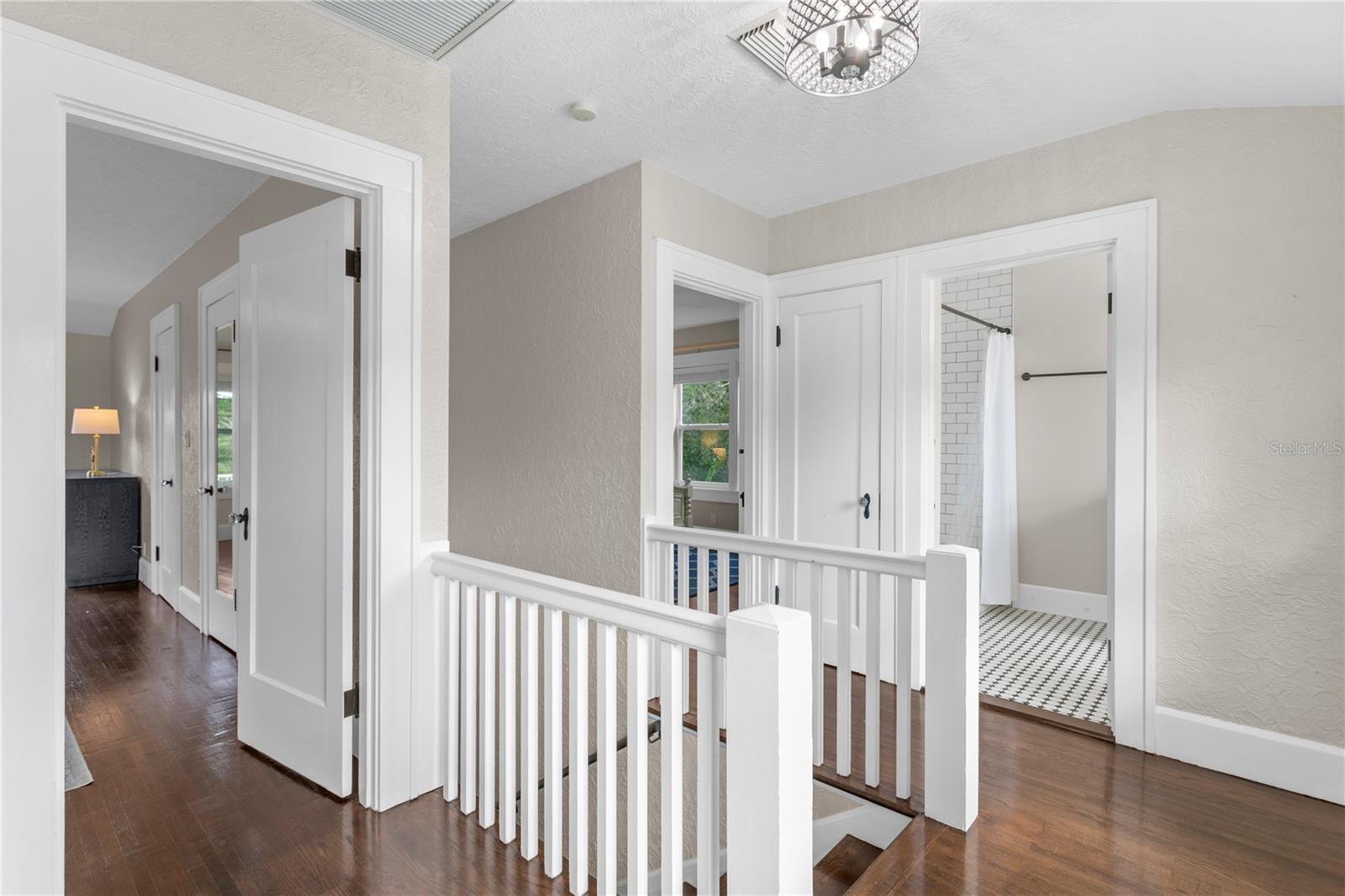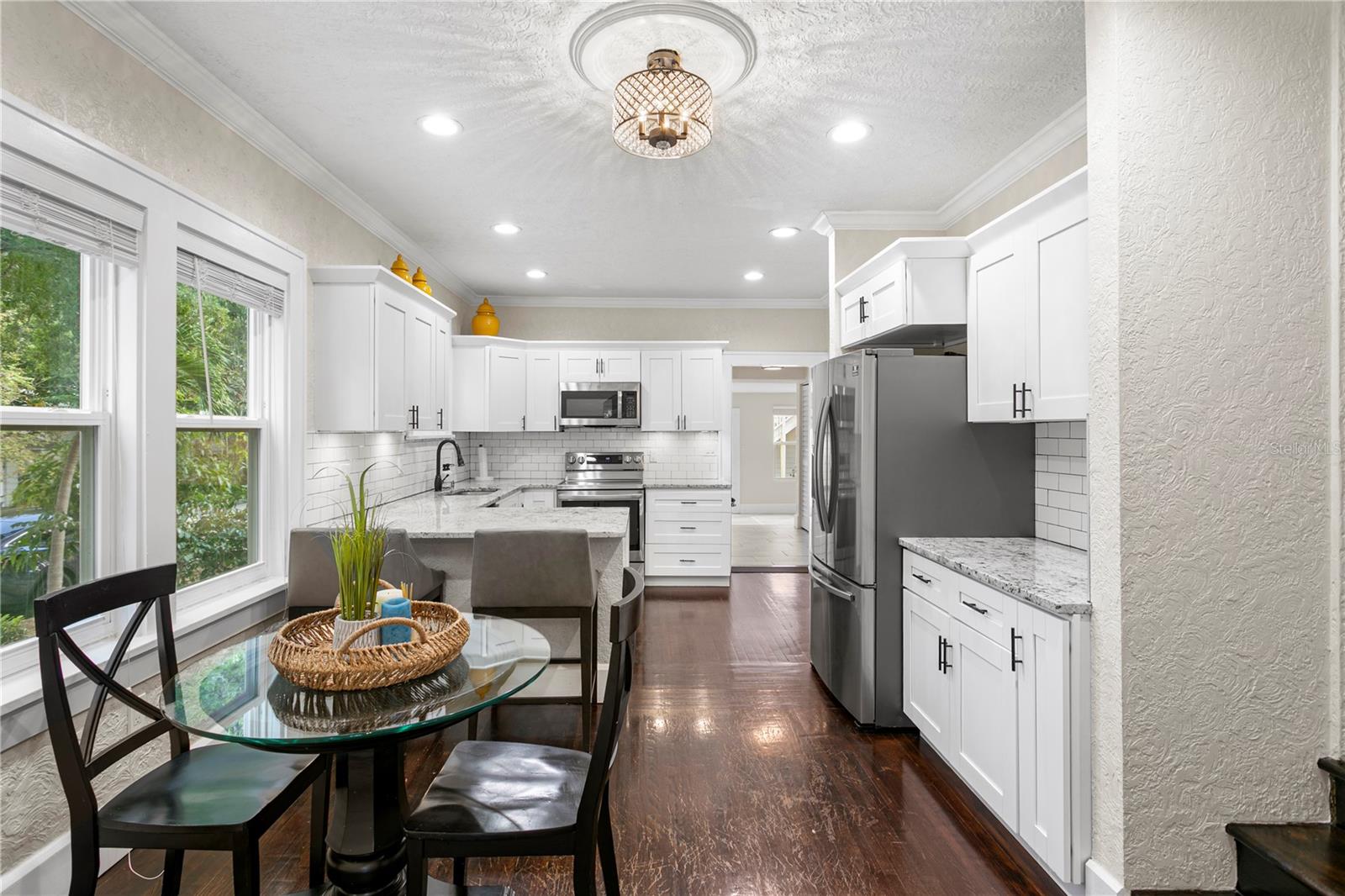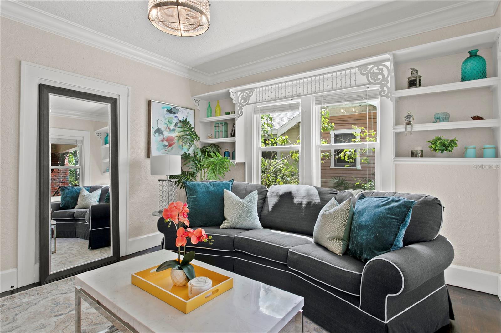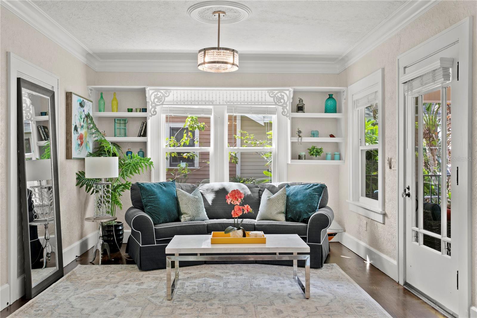 One or more photo(s) has been virtually staged. STUNNING 1925 CRAFTSMAN ESTATE WITH INCOME-PRODUCING GUEST HOUSE MINUTES FROM CRESCENT LAKE PARK IN ST PETERSBURG FL | Discover architectural magnificence in this meticulously preserved 1925 Craftsman masterpiece, nestled in one of St. Petersburg’s most coveted neighborhoods just a short 2 block stroll from the pristine beauty of Crescent Lake Park. This extraordinary estate seamlessly blends century-old craftsmanship with contemporary luxury across 2, 754 square feet of elegant living space, a 2 car detached garage, complemented by a fully independent and renovated 910-square-foot guest house complete with separate address, 2 bedrooms and an office, utilities, its own laundry, and a garage for storage. Every corner of this distinguished home celebrates its rich heritage through carefully preserved original features: hardwood floors, hand-crafted artistic wall plaster, elegant crown molding, a striking wood burning fireplace, period-authentic interior doors adorned with cut-glass knobs, and exquisite detailed trim work that speaks to the era’s superior artisanship. The options for the residence are endless. The main house offers 2 master suites with ensuite bathrooms (one downstairs and one upstairs) as well as a 3rd bedroom upstairs with a full guest bath. The downstairs primary suite offers zen-like qualities with a sizable bathroom complete with a wet shower and freestanding tub, dual vanities, and a commode room for privacy. The upstairs primary is incredibly roomy with a seating area for reading, dual closets and a private balcony retreat. Modern updates have enhanced this classic beauty with today’s conveniences while respecting its historic integrity. Updates include a new flat roof (2024), three energy-efficient HVAC systems (2 of the 3 were replaced in 2024) with dual-zone climate control, vinyl double-pane insulated windows, premium appliances, and beautifully appointed renovated bathrooms. Enjoy the outdoors in rain or shine with a beautiful covered front porch, private fenced rear patio, and open patio adjacent to the covered patio in the front. The entertainment factor is off the charts with this home given all the spaces plus there is also room for a pool as well. Positioned on a desirable corner lot for enhanced privacy, this property offers immediate access to Crescent Lake Park’s 56 acres of recreational paradise. Enjoy the one-mile paved walking trail, tennis and pickleball courts, dog park, playground, and the historic baseball field that once hosted Yankees, Mets, and Orioles spring training. Downtown St. Petersburg’s vibrant dining, arts, and entertainment scene awaits just minutes away as is 4th Street and 9th Street for lots of dining and coffee shop options. This is more than a home—it’s a rare opportunity to own a piece of St. Petersburg history while enjoying modern luxury and investment potential in an unmatched location.