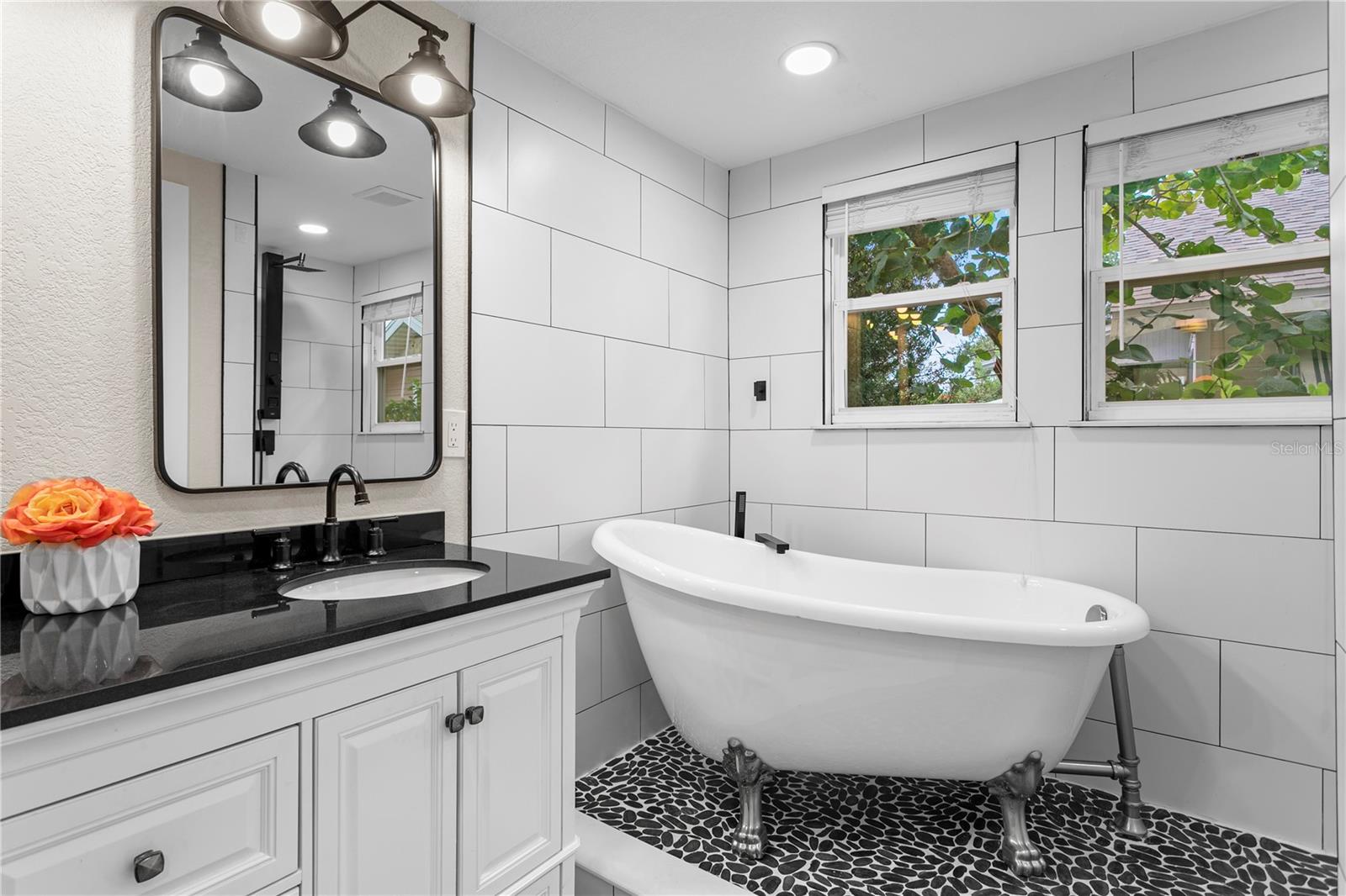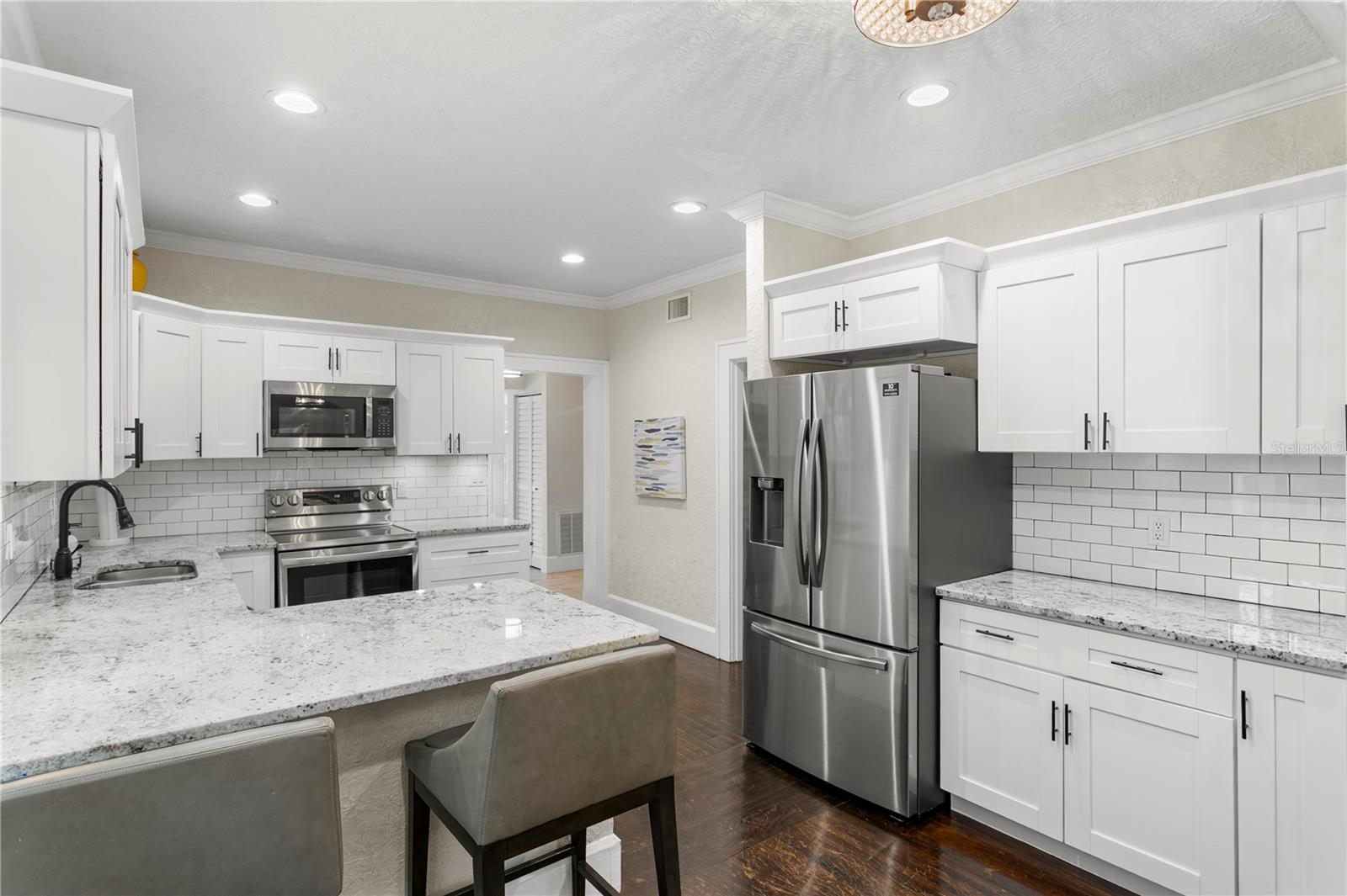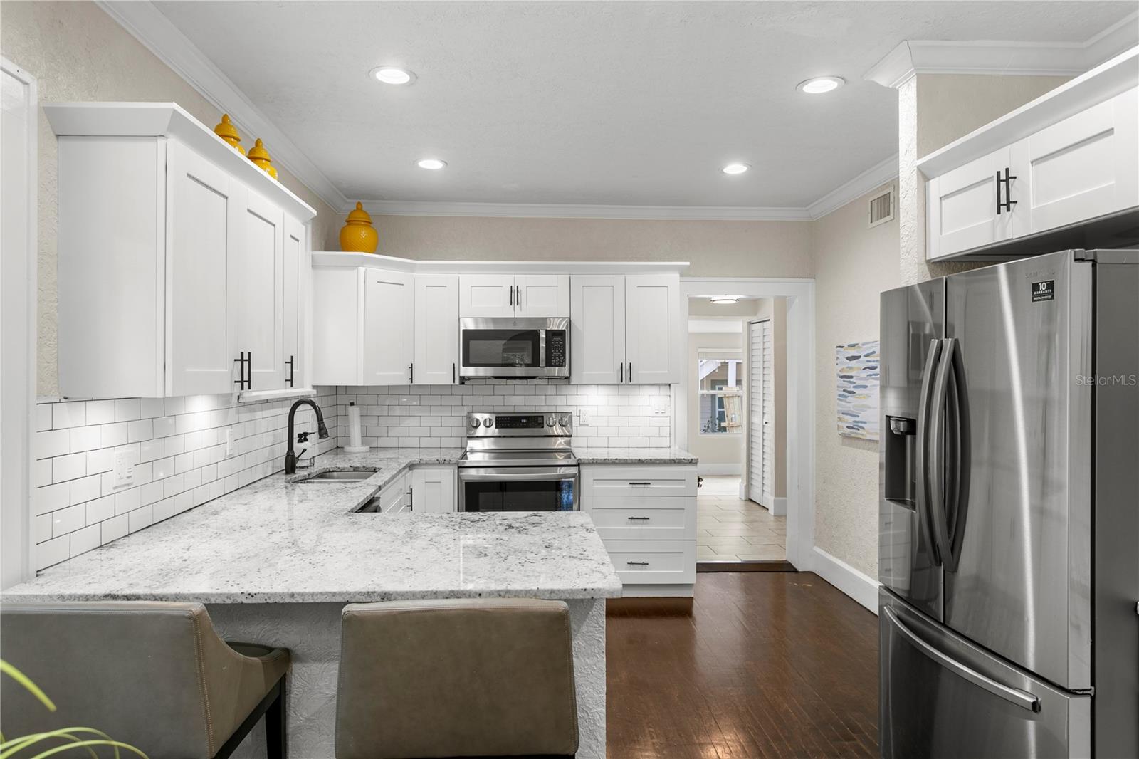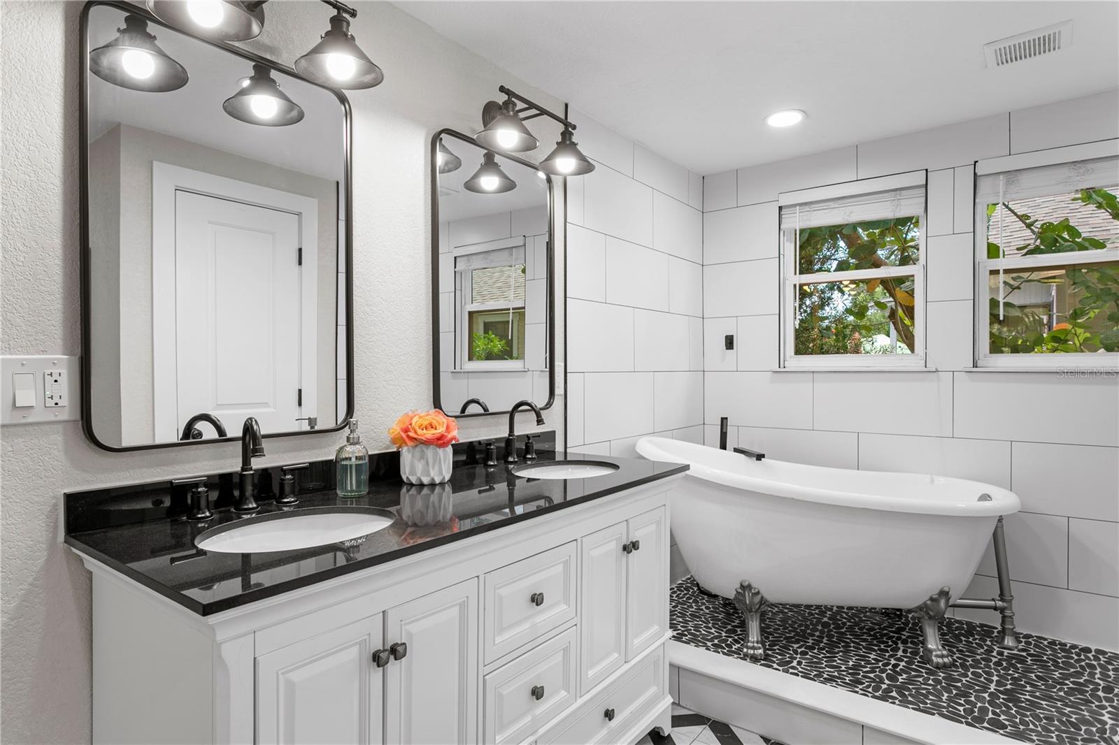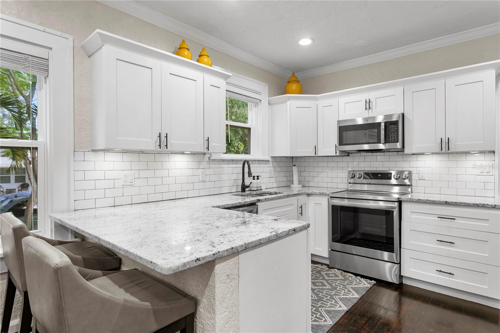 One or more photo(s) has been virtually staged. STUNNING 1925 CRAFTSMAN ESTATE WITH INCOME-PRODUCING GUEST HOUSE MINUTES FROM CRESCENT LAKE PARK IN ST PETERSBURG FL | Discover architectural magnificence in this meticulously preserved 1925 Craftsman masterpiece, nestled in one of St. Petersburg’s most coveted neighborhoods just a short 2 block stroll from the pristine beauty of Crescent Lake Park. This extraordinary estate seamlessly blends century-old craftsmanship with contemporary luxury across 2, 754 square feet of elegant living space, a 2 car detached garage, complemented by a fully independent and renovated 910-square-foot guest house complete with separate address, 2 bedrooms and an office, utilities, its own laundry, and a garage for storage. Every corner of this distinguished home celebrates its rich heritage through carefully preserved original features: hardwood floors, hand-crafted artistic wall plaster, elegant crown molding, a striking wood burning fireplace, period-authentic interior doors adorned with cut-glass knobs, and exquisite detailed trim work that speaks to the era’s superior artisanship. The options for the residence are endless. The main house offers 2 master suites with ensuite bathrooms (one downstairs and one upstairs) as well as a 3rd bedroom upstairs with a full guest bath. The downstairs primary suite offers zen-like qualities with a sizable bathroom complete with a wet shower and freestanding tub, dual vanities, and a commode room for privacy. The upstairs primary is incredibly roomy with a seating area for reading, dual closets and a private balcony retreat. Modern updates have enhanced this classic beauty with today’s conveniences while respecting its historic integrity. Updates include a new flat roof (2024), three energy-efficient HVAC systems (2 of the 3 were replaced in 2024) with dual-zone climate control, vinyl double-pane insulated windows, premium appliances, and beautifully appointed renovated bathrooms. Enjoy the outdoors in rain or shine with a beautiful covered front porch, private fenced rear patio, and open patio adjacent to the covered patio in the front. The entertainment factor is off the charts with this home given all the spaces plus there is also room for a pool as well. Positioned on a desirable corner lot for enhanced privacy, this property offers immediate access to Crescent Lake Park’s 56 acres of recreational paradise. Enjoy the one-mile paved walking trail, tennis and pickleball courts, dog park, playground, and the historic baseball field that once hosted Yankees, Mets, and Orioles spring training. Downtown St. Petersburg’s vibrant dining, arts, and entertainment scene awaits just minutes away as is 4th Street and 9th Street for lots of dining and coffee shop options. This is more than a home—it’s a rare opportunity to own a piece of St. Petersburg history while enjoying modern luxury and investment potential in an unmatched location.