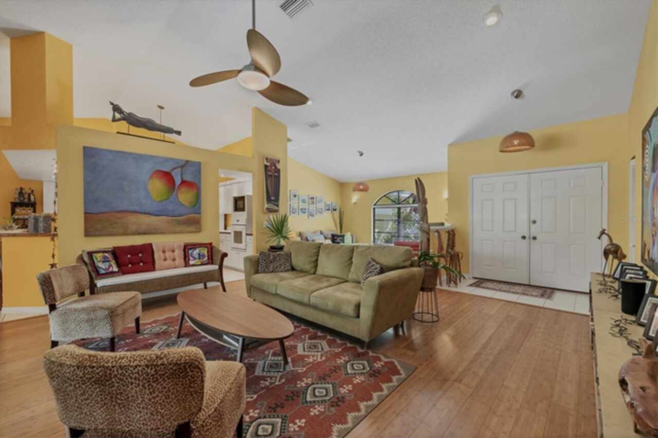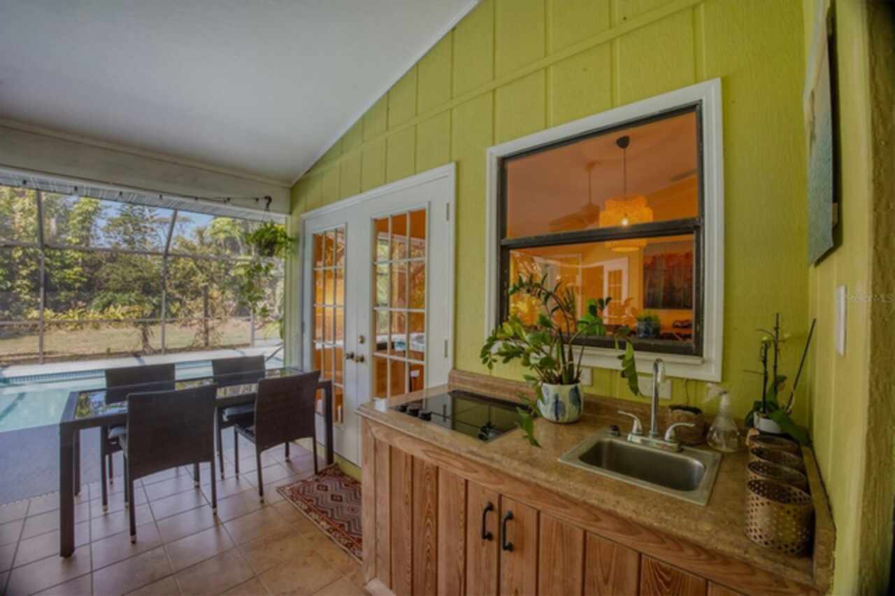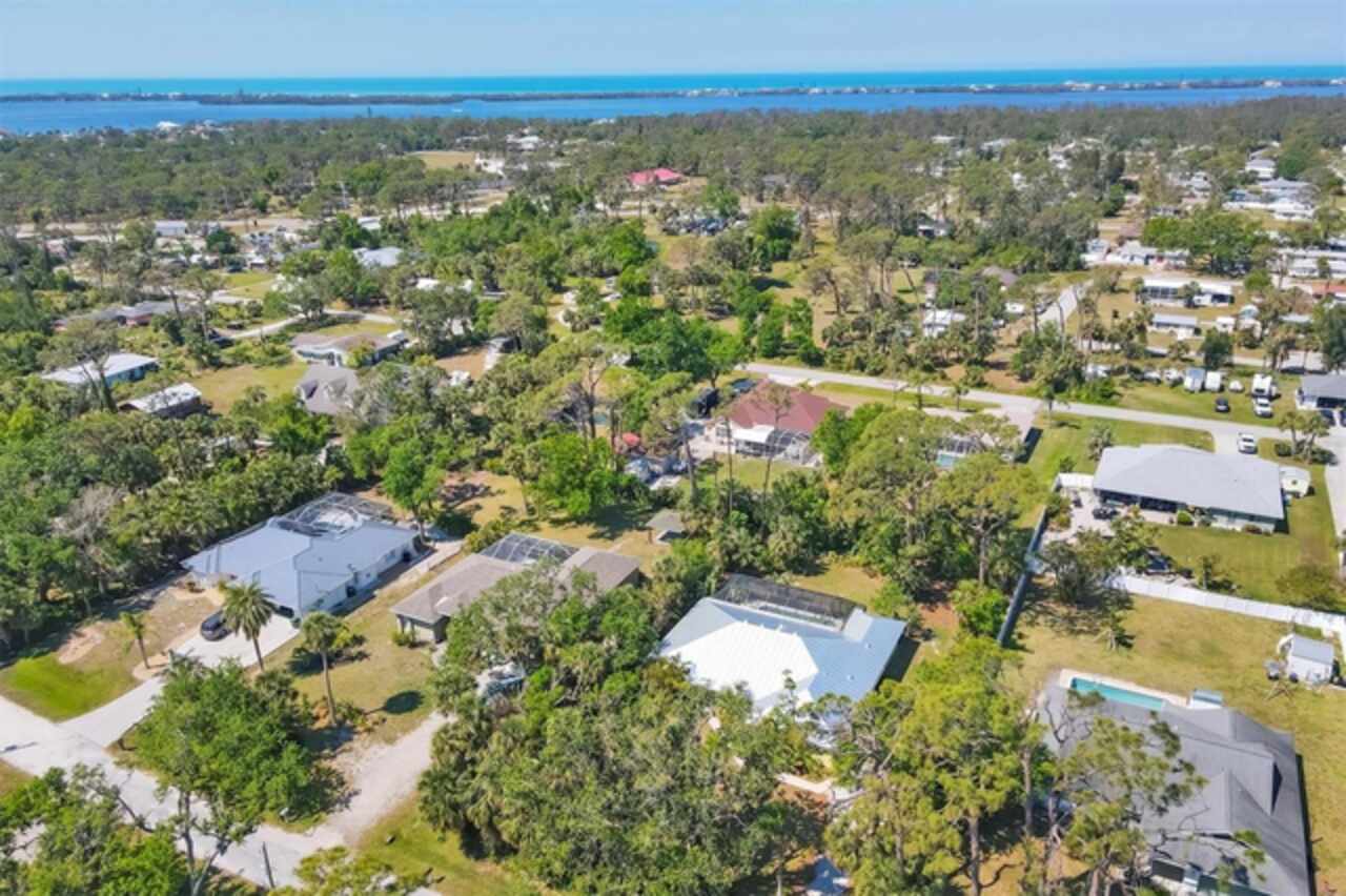 Welcome to your new Artist Acres home featuring a saltwater pool and jacuzzi surrounded by beautiful landscaping while conveniently located in the heart of Englewood. This 3-Bedroom 2 ½ Bath Home is the perfect Southwest Florida retreat home providing the perfect combination of nature and privacy. Hidden to the road by mature landscaping, you will feel right at home as you enter through the front, screened-in patio into the large, open-floor plan living and family rooms featuring bamboo flooring and vaulted ceilings. The sizable kitchen features wrapped around counters with ample cabinets, a new dishwasher, an island, a secluded desk area, and a breakfast bar that gives way to your inviting dining area. The dining area glistens with excellent natural lighting, views and access through French doors to the beautifully landscaped back patio and pool deck. Just off the Kitchen, is the Laundry Room with Washer/Dryer, large Pantry, and a half Bath with entry from the two Car Garage. Offering privacy indoors and out, the split floor plan holds two bedrooms and full bathroom on one side and the Master Bedroom across the home. The Master Bedroom features bamboo flooring, two Walk-In Closets, Master Bath with walk-in shower, separate garden tub, and French door access to the lanai. The covered lanai is home to an outdoor kitchen making entertaining a breeze and gives way to the custom landscaped pool deck with an oversized, heated, saltwater pool/spa, and an outdoor shower with both hot and cold. With a completely private backyard as well, this oversized 20, 000 square-foot lot will truly feel like your own private oasis with mature trees and landscaping which includes Arika Palms, Mango Tree, Bird of Paradise Plants, Palmettos, and so much more. If you love all the art work throughout the home, most was done by local artist Marie Laforge and is also available for sale. Built-to-last since 1991, this updated block home features a 2024 Metal Roof, 2023 AC Unit, and 2022 Hot Water Heater, while the home is also on septic but sewer is available for connection if desired. While tucked away at home, you will enjoy being walking distance to Lemon Bay Park with miles of trails and water views as well as a local lake servicing as a fun fishing spot. Additionally, you will have quick access to countless local shops, restaurants, schools, beaches, and bays. You will also be merely minutes from the popular Dearborn Street which offers live local entertainment, art shows, car shows and fresh farmers’ market. One of the best-kept secrets in Florida Englewood is perfectly situated between Fort Myers & Sarasota for additional access to Marinas, Boating, Fishing, Parks, Playgrounds, Shopping, Restaurants, Baseball Spring Training, Myakka State Preserve, Wildlife, and Much More. Come relax and enjoy all that the Southwest Florida Lifestyle has to provide. You’ve found Your Piece of Paradise!