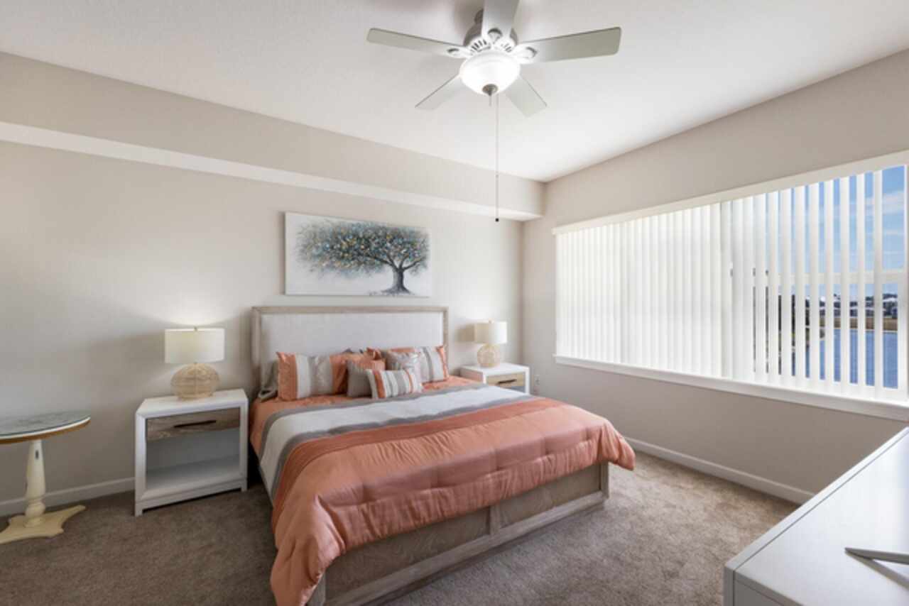 Ceiling Fans(s), High Ceilings, Living Room/Dining Room Combo, Open Floorplan, Primary Bedroom Main Floor, Solid Surface Counters, Thermostat, Walk-In Closet(s), Window Treatments