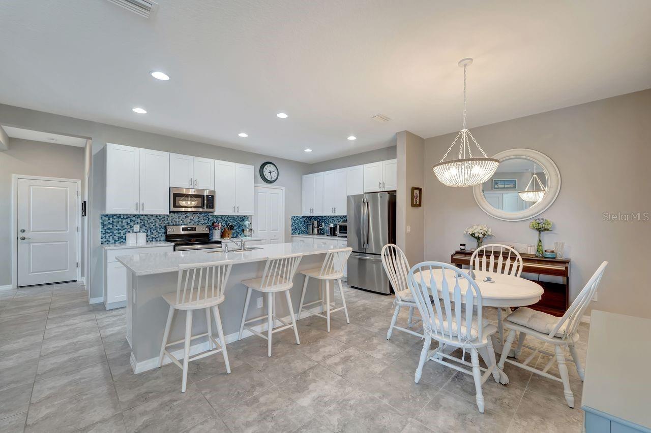 Elegantly maintained and beautifully appointed, this 3-bedroom, 2-bath villa with an attached 2 car garage offers the perfect balance of style, comfort, and quality. The open light filled floor plan features tile flooring in the kitchen and bathrooms, and plush carpet in the bedrooms for a cozy retreat. Ceiling fans in all bedrooms and living room provide comfort, while a plantation shutter on the sliding glass door adds style and functionality. The Chef's kitchen is a showpiece with quartz countertops, a tile backsplash, stainless steel appliances, and a large island with seating. Retreat to the inviting primary suite, complete with a custom Closet Envy walk-in closet designed for luxury and organization, and an en suite offering a large tiled walk-in shower, double vanity, and private water closet. Enjoy relaxing mornings or evenings on the screened-in lanai. Additional upgrades include a UV light air purification system for improved indoor air quality and Kevlar hurricane shutters for safety and peace of mind. Nestled in the exclusive Hidden Creek community, residents enjoy access to a pavilion with grill area, playground, open fields, and walking paths. With low HOA and no CDD, this neighborhood offers a true sense of community and exceptional value. Ideally located near the exclusive and lively Waterside Place at Lakewood Ranch, University Town Center, and premier golf courses such as Tatum Ridge and The Founders Club, with Sun Outdoor Resort just 2.4 miles away for family fun and optional membership access. Experience luxury Sarasota living in this beautifully finished, move in ready villa - refined, inviting, and perfectly situated for today's lifestyle.