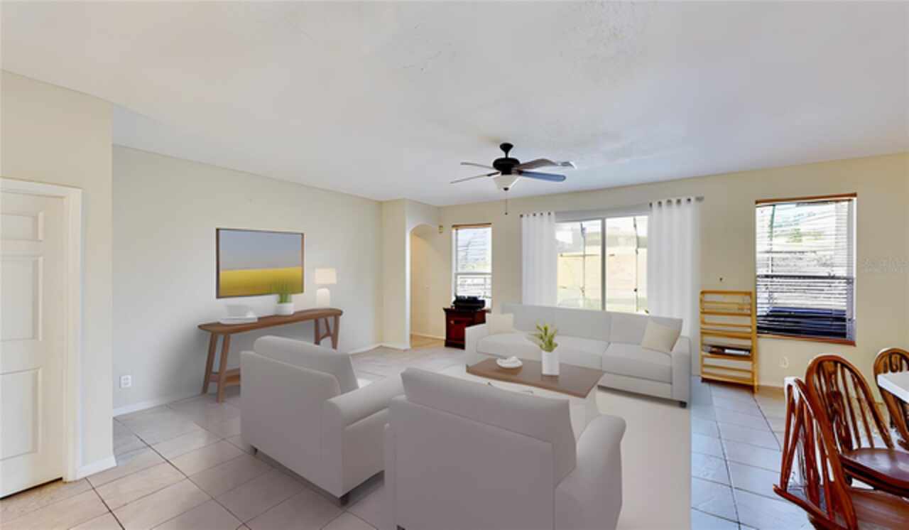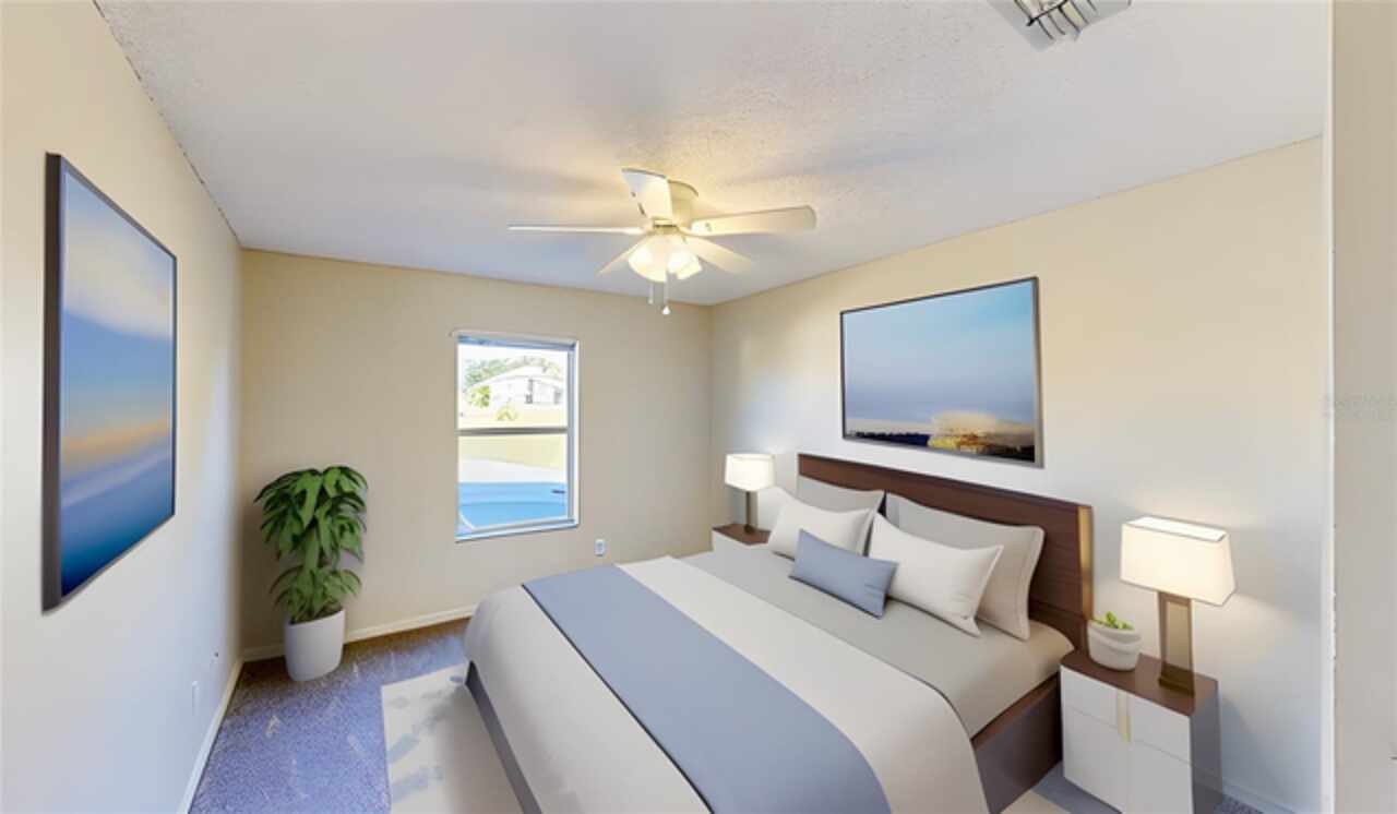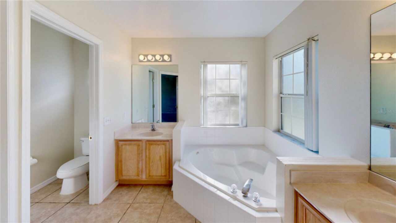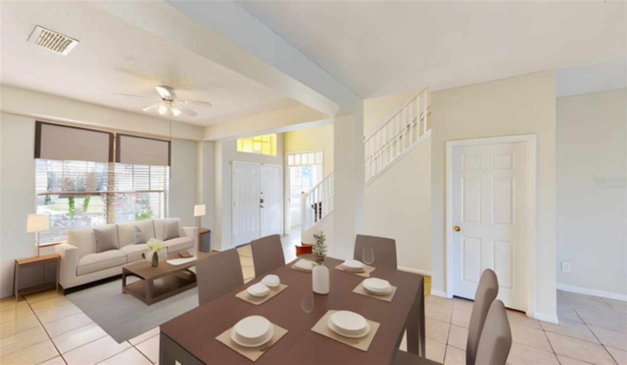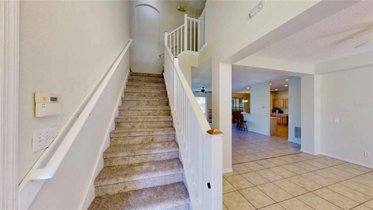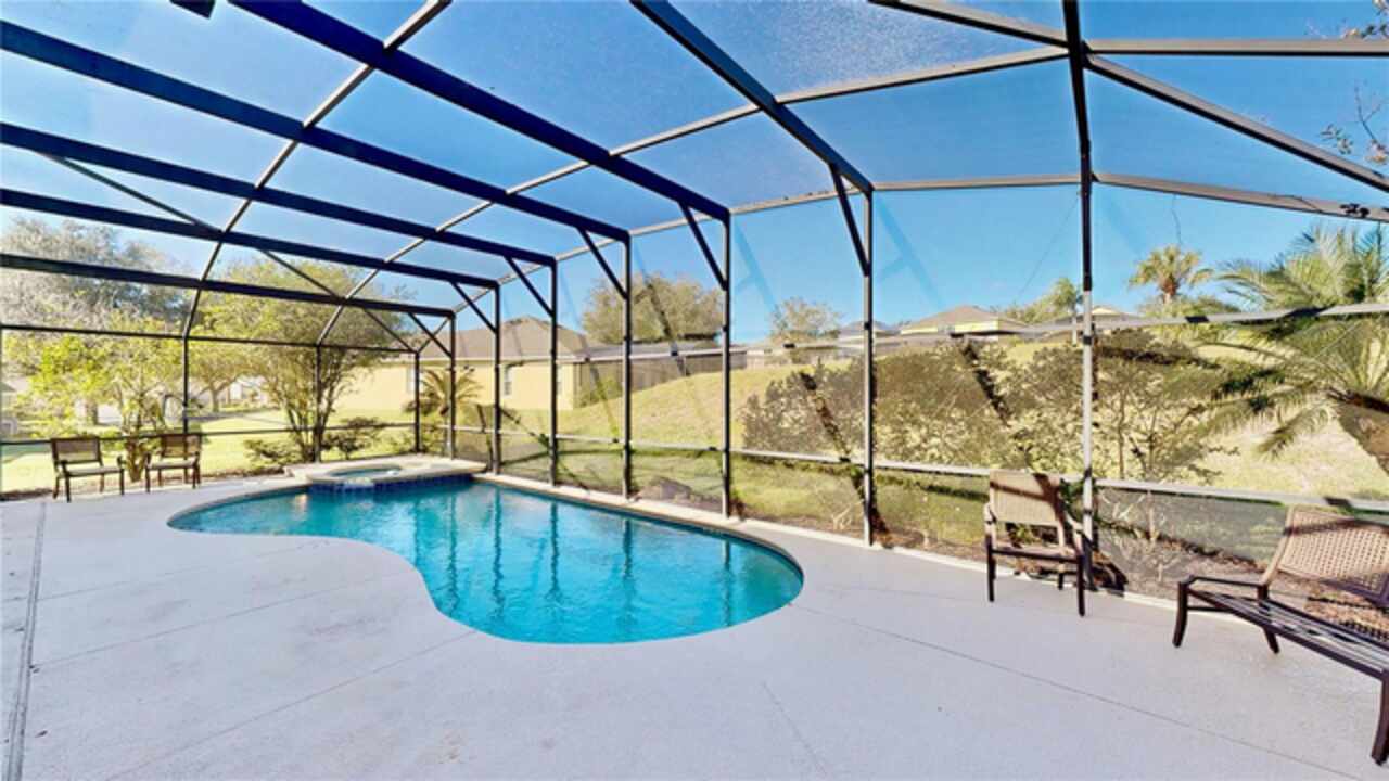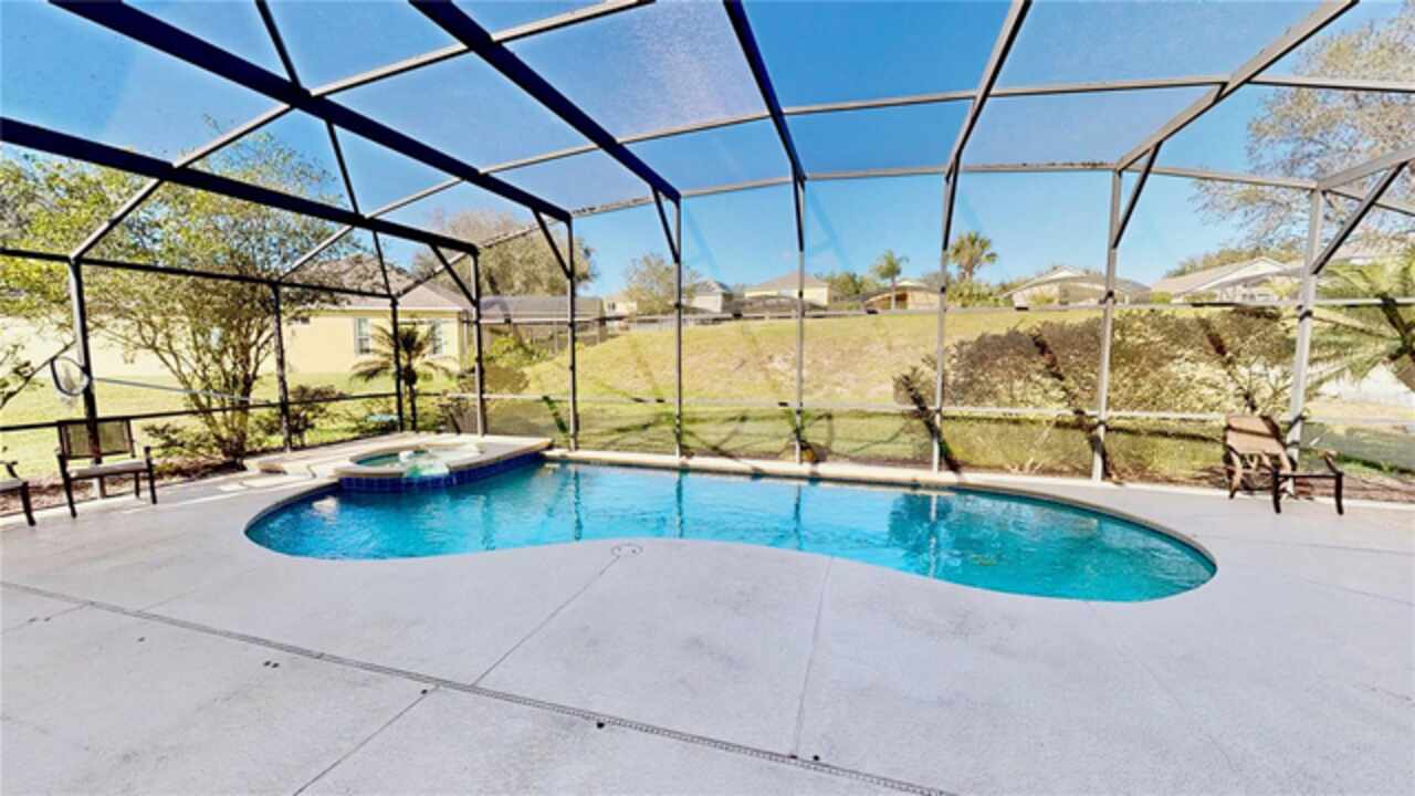 One or more photo(s) has been virtually staged. --Resort-Style Pool Home Near Disney – Energy Efficient and Move-In Ready!-- Welcome to your Florida dream home — a perfect blend of comfort, style, and energy efficiency in a guard-gated community just minutes from Disney. From the moment you arrive, the freshly painted exterior (Dec 2023) and vibrant colors make this home feel warm and welcoming. Even the closets got a fresh coat, showing just how meticulously cared for this home is. Step inside and discover a bright, open layout where tile flooring flows throughout the entire first floor, connecting the living, dining, and family rooms in a seamless design that’s perfect for everyday life and entertaining. Natural light pours in from large windows, giving the home an inviting, airy feel. The kitchen is both stylish and functional, featuring modern appliances, ample cabinet space, and plenty of counter area for cooking and entertaining. A dedicated office with French doors makes working from home easy, and a first-floor guest suite with its own bath (which also opens to the pool area) adds comfort and convenience for visitors. Upstairs, you’ll find brand-new carpet (Dec 2023) and six spacious bedrooms, each with quick access to a bath — perfect for large families or guests. The primary suite overlooks the backyard and offers a spa-like retreat with dual vanities, a soaking tub, and a large walk-in closet. Step outside and you’ll fall in love with your private pool oasis — perfect for morning swims, weekend BBQs, or relaxing under the sun. The spacious patio and deck offer plenty of room for outdoor dining and lounging, surrounded by tropical landscaping that makes every day feel like vacation. This home also features energy-efficient touches and sits in a guarded gated community with resort-style amenities, including a pool, play area, and golf-cart-friendly streets. Lawn care is simple, and you’re just minutes from Walt Disney World, Highway 192, Celebration, and Orlando International Airport. If you’ve been searching for a home that feels like a private resort — stylish, secure, and move-in ready — this one has it all.