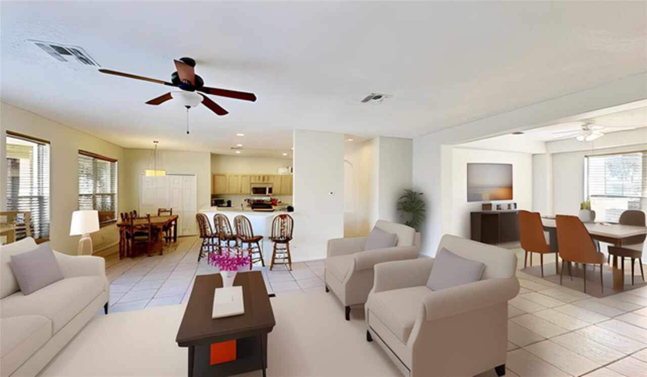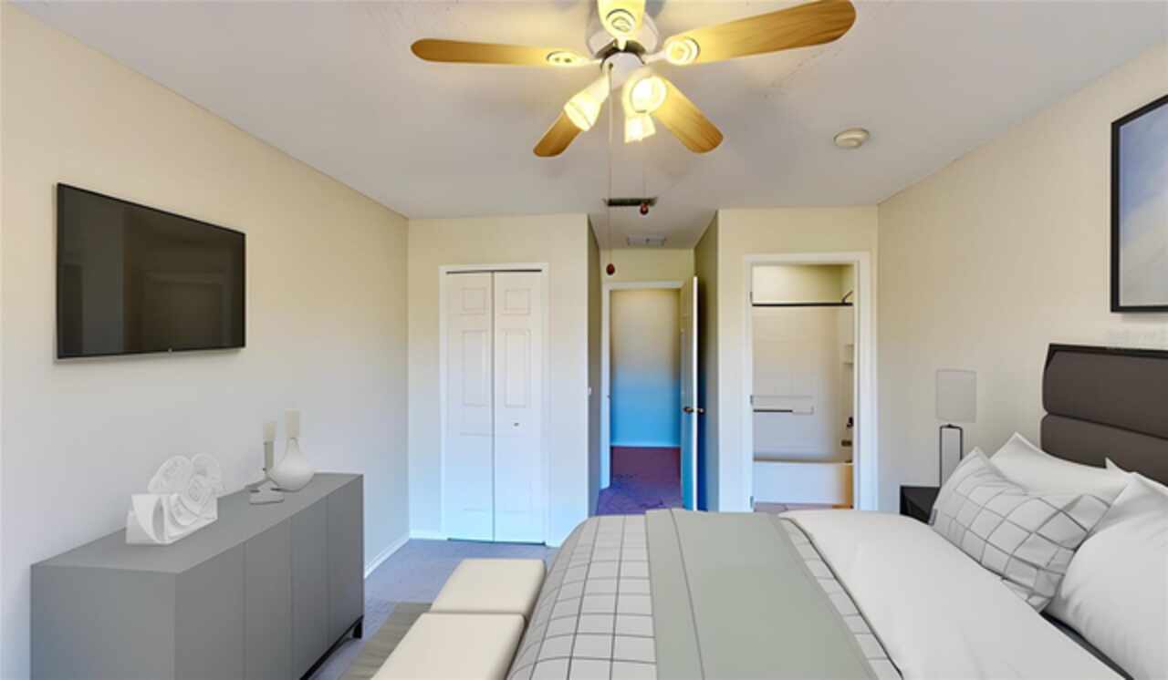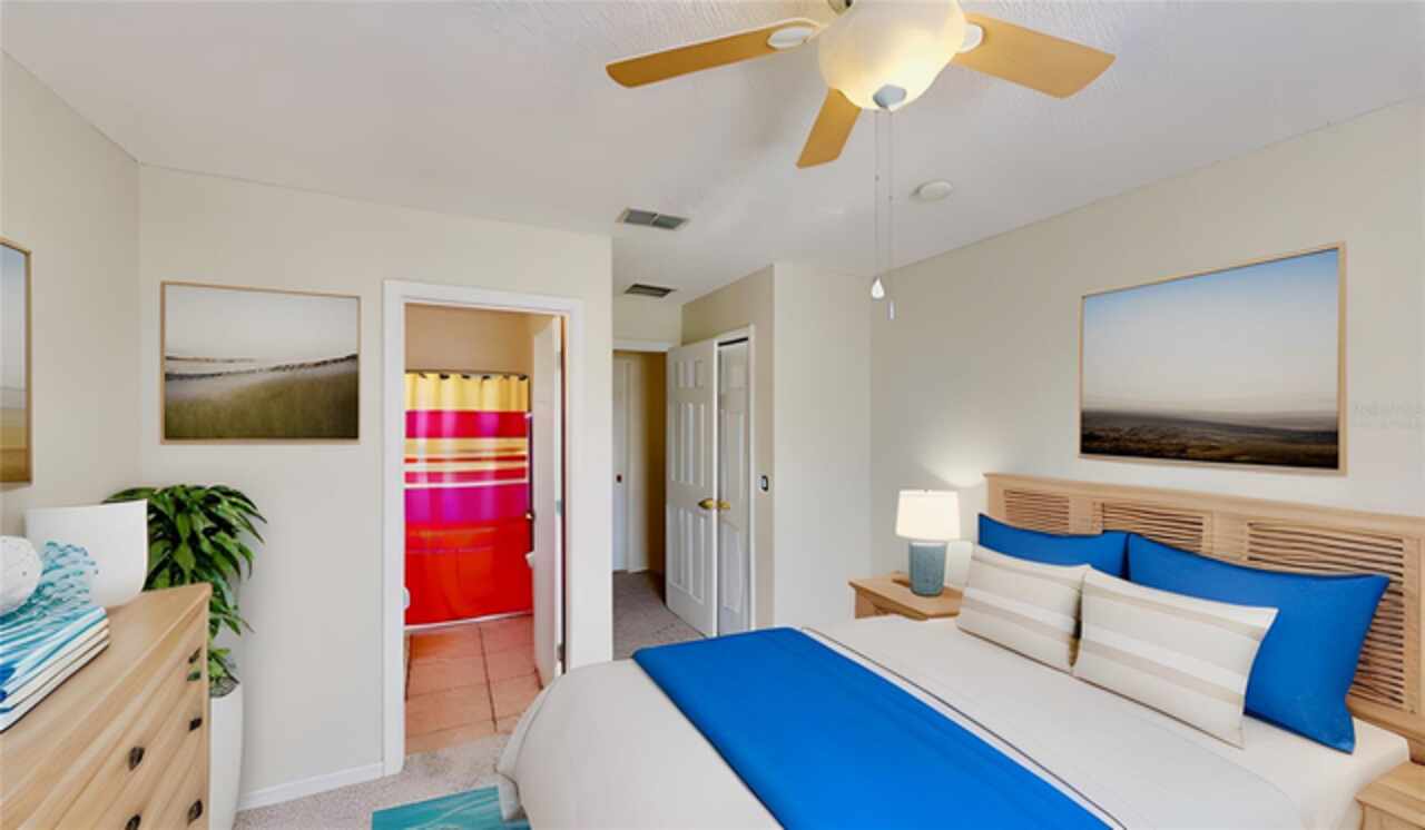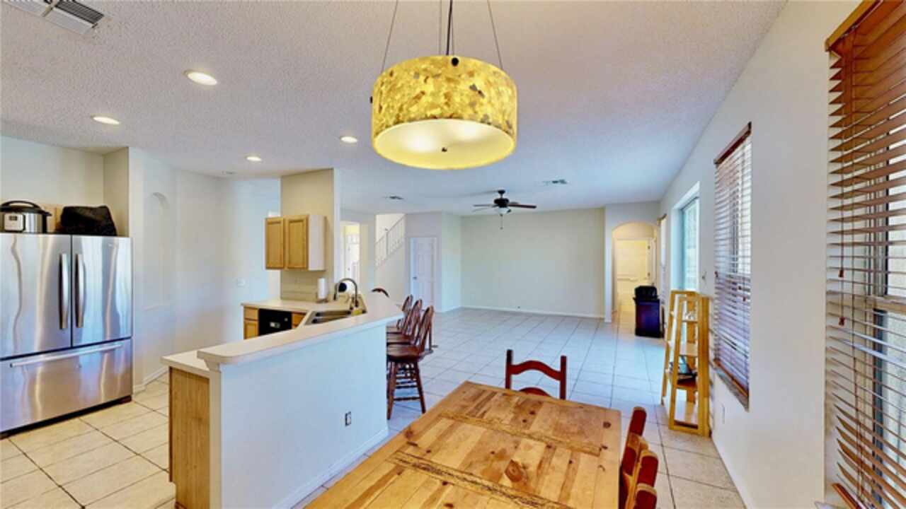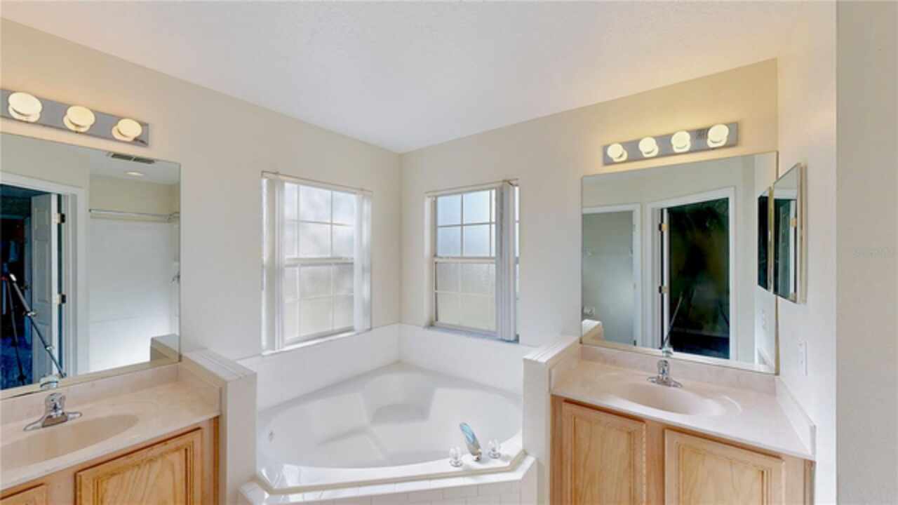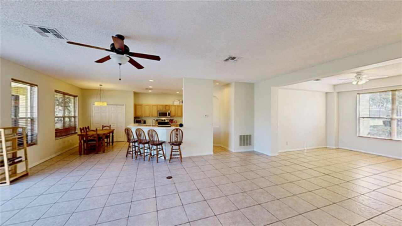 One or more photo(s) has been virtually staged. --Resort-Style Pool Home Near Disney – Energy Efficient and Move-In Ready!-- Welcome to your Florida dream home — a perfect blend of comfort, style, and energy efficiency in a guard-gated community just minutes from Disney. From the moment you arrive, the freshly painted exterior (Dec 2023) and vibrant colors make this home feel warm and welcoming. Even the closets got a fresh coat, showing just how meticulously cared for this home is. Step inside and discover a bright, open layout where tile flooring flows throughout the entire first floor, connecting the living, dining, and family rooms in a seamless design that’s perfect for everyday life and entertaining. Natural light pours in from large windows, giving the home an inviting, airy feel. The kitchen is both stylish and functional, featuring modern appliances, ample cabinet space, and plenty of counter area for cooking and entertaining. A dedicated office with French doors makes working from home easy, and a first-floor guest suite with its own bath (which also opens to the pool area) adds comfort and convenience for visitors. Upstairs, you’ll find brand-new carpet (Dec 2023) and six spacious bedrooms, each with quick access to a bath — perfect for large families or guests. The primary suite overlooks the backyard and offers a spa-like retreat with dual vanities, a soaking tub, and a large walk-in closet. Step outside and you’ll fall in love with your private pool oasis — perfect for morning swims, weekend BBQs, or relaxing under the sun. The spacious patio and deck offer plenty of room for outdoor dining and lounging, surrounded by tropical landscaping that makes every day feel like vacation. This home also features energy-efficient touches and sits in a guarded gated community with resort-style amenities, including a pool, play area, and golf-cart-friendly streets. Lawn care is simple, and you’re just minutes from Walt Disney World, Highway 192, Celebration, and Orlando International Airport. If you’ve been searching for a home that feels like a private resort — stylish, secure, and move-in ready — this one has it all.