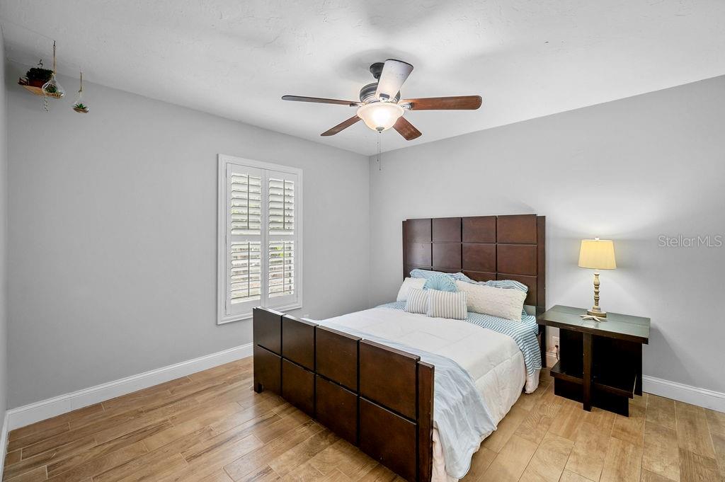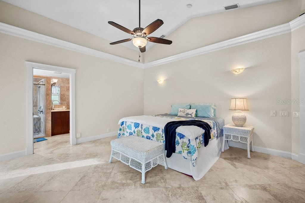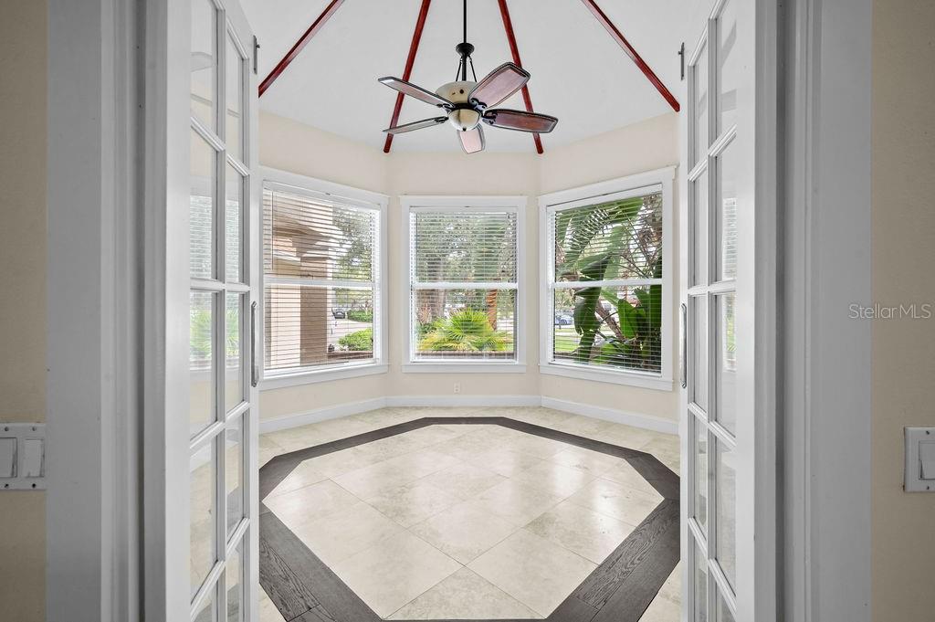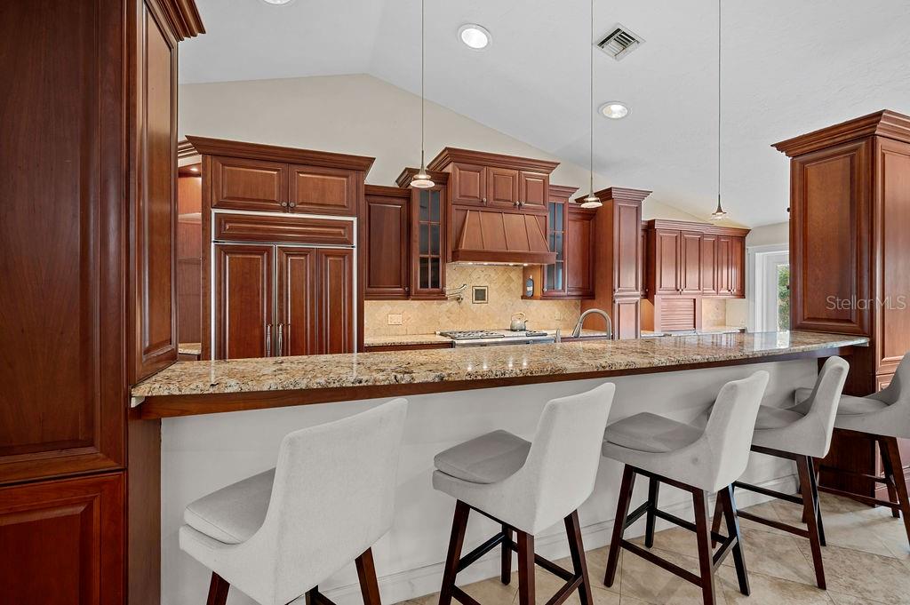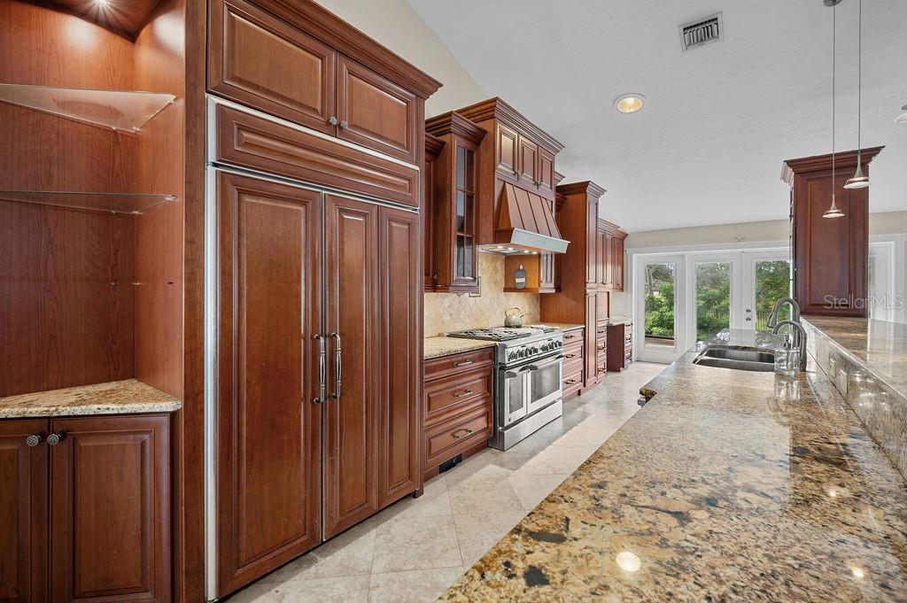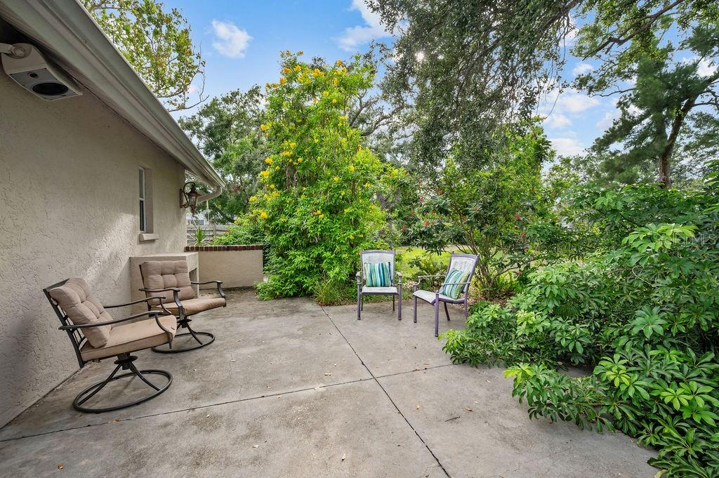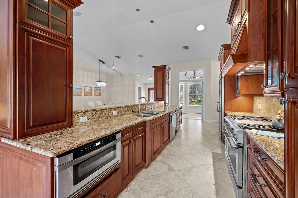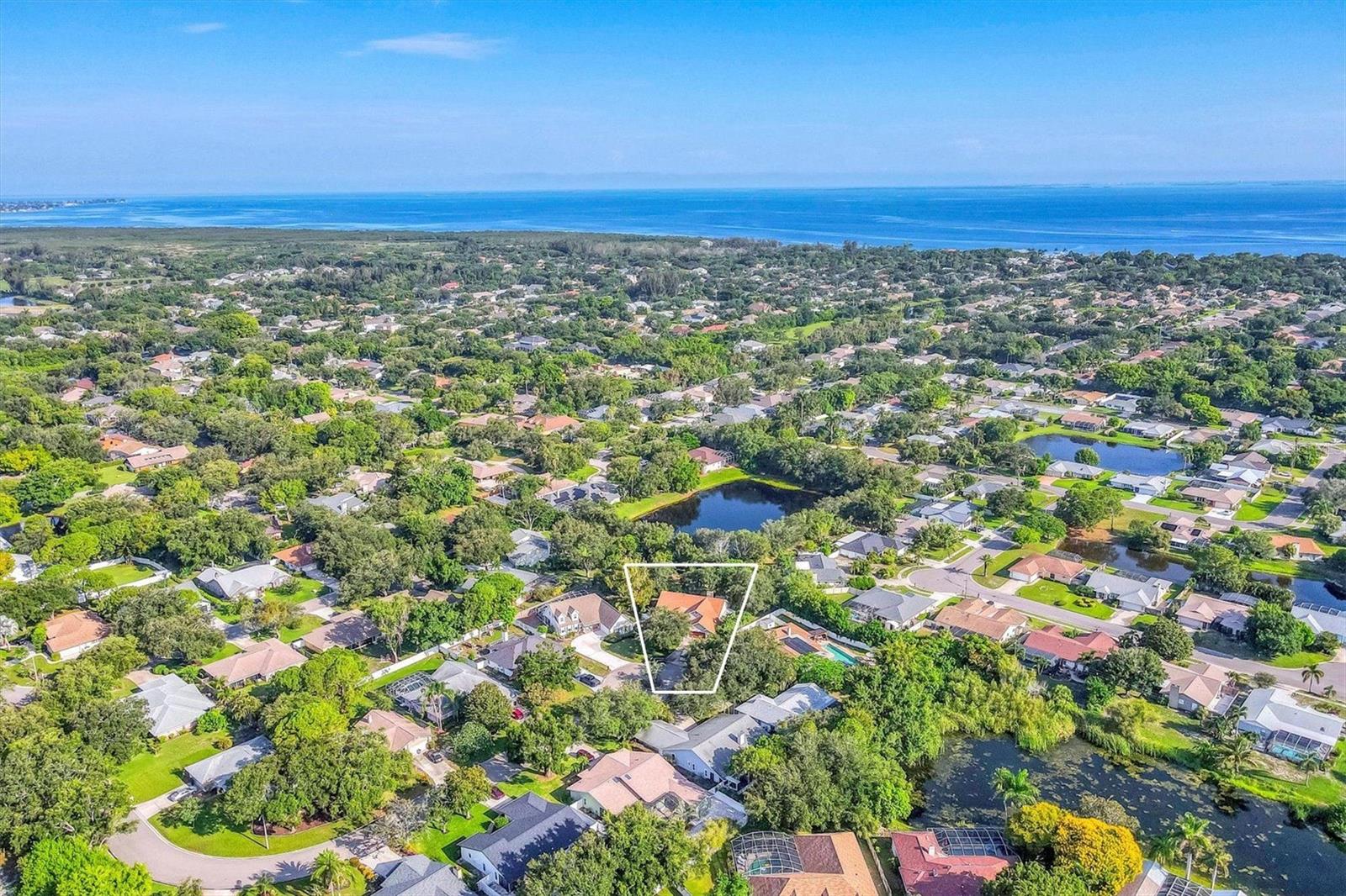 Welcome Home to Azalea Park! This 4 bedroom + den spacious home with 2.5 baths sits on one of the largest lots in the neighborhood! Situated on a quiet cul-de-sac, the large, fully fenced yard enjoys private water views. This spacious home features high ceilings and an open floor plan, with split bedrooms, open living space and a 2 car, air conditioned garage. You will love the chef's kitchen with skylights and high counter seating, granite counters and solid wood cabinetry. This home is full of extras - like your GE Monogram 6 burner gas stove with griddle and double oven, touchless Moen faucet (2022), separate ice maker mini-freezer (2020), wall mounted pot filler faucet, double oversized stainless sink, tankless hot water heater (2023), updated A/C (2024) and remote controlled kitchen hood (2024). Enjoy the serene views through French doors to the large patio space. Attach your grill out back to the patio's propane hook up, and enjoy the privacy of your large yard with the mature landscaping while relaxing under the trellis. You can even use the existing wiring hook up to add a spa. Or unwind inside the spacious family room with gas fireplace and built in entertainment center. The bedrooms have large windows with plantation shutters, ceiling fans and lighted closets. The den/office space with high coffered ceiling, is bright with natural light from the double glass doors and bay windows. The spacious primary bedroom, with private access to the side yard, has a large walk in closet with solid wood custom organizer. The primary bathroom includes dual glass bowl sinks and a walk-in shower with pebble shower floor, foot bath, dual shower heads and a soaking tub. All of this in the desirable Azalea Park neighborhood, with community pool and easy access to Robinson Preserve, DeSoto Memorial Park, the botanical gardens, and just minutes to the beaches of Anna Maria Island!