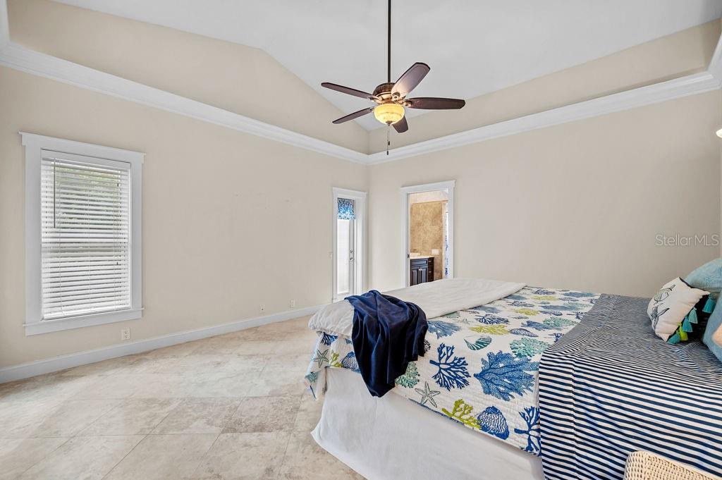 Ceiling Fans(s), Central Vaccum, Crown Molding, High Ceilings, Kitchen/Family Room Combo, Living Room/Dining Room Combo, Open Floorplan, Primary Bedroom Main Floor, Solid Wood Cabinets, Split Bedroom, Stone Counters, Thermostat, Vaulted Ceiling(s), Walk-In Closet(s)