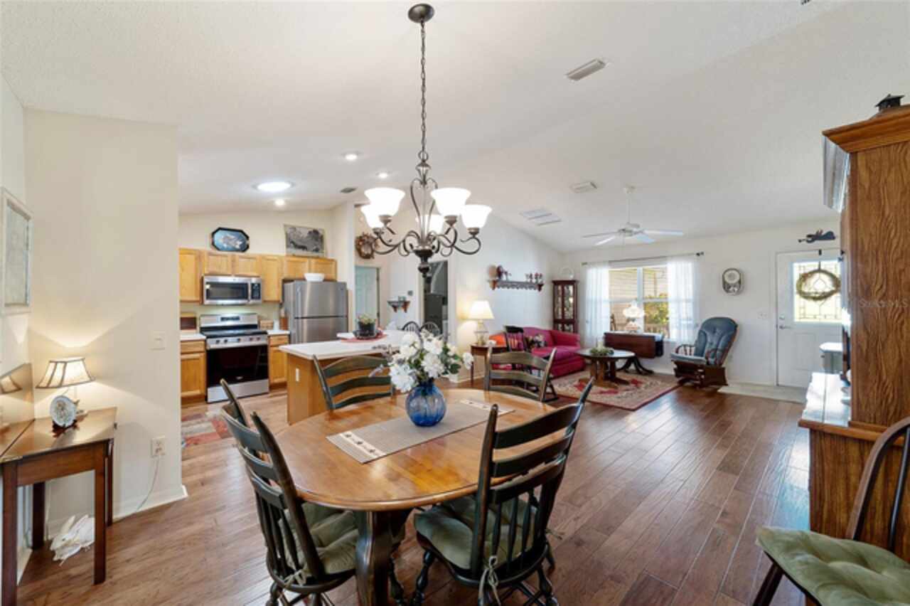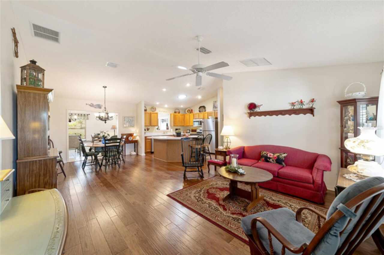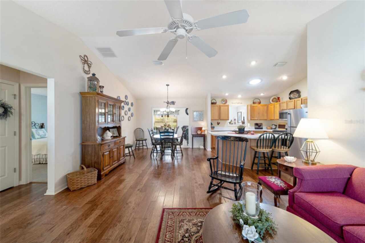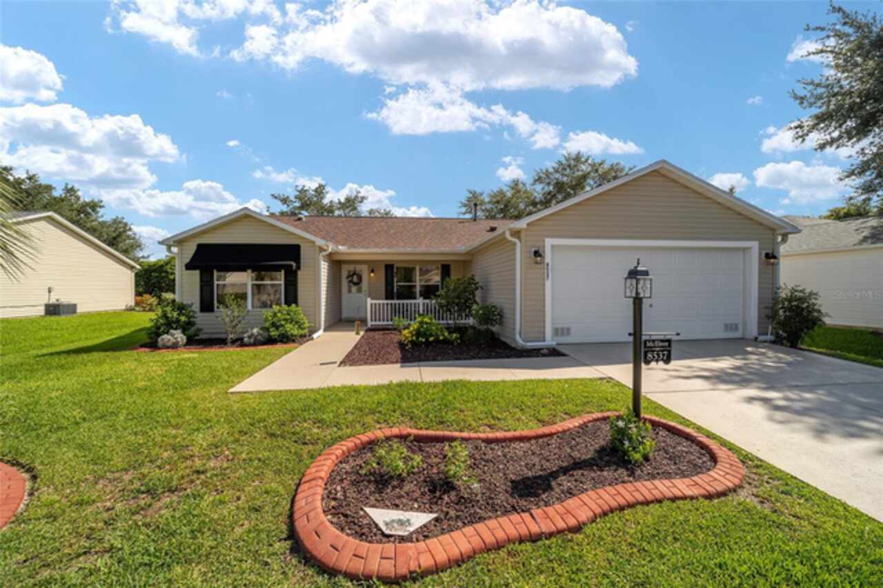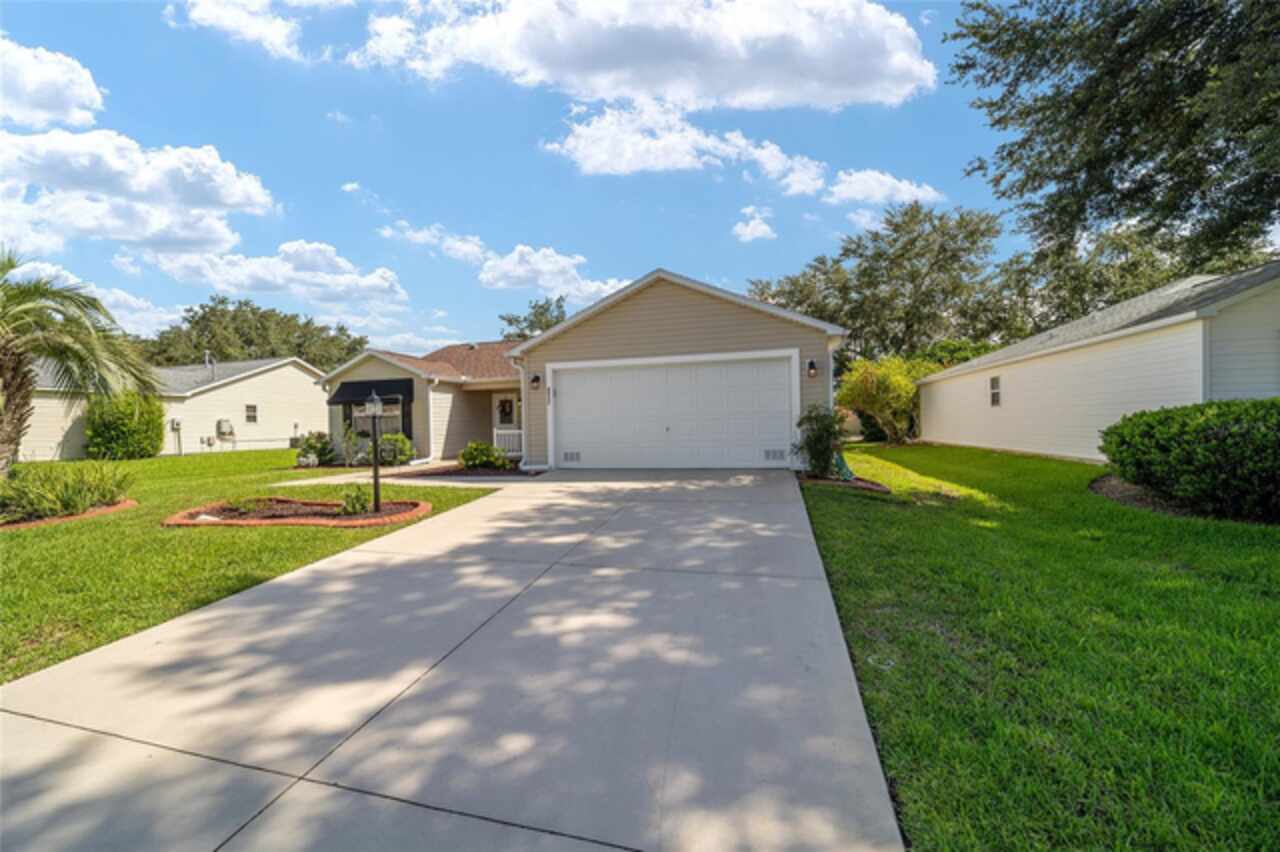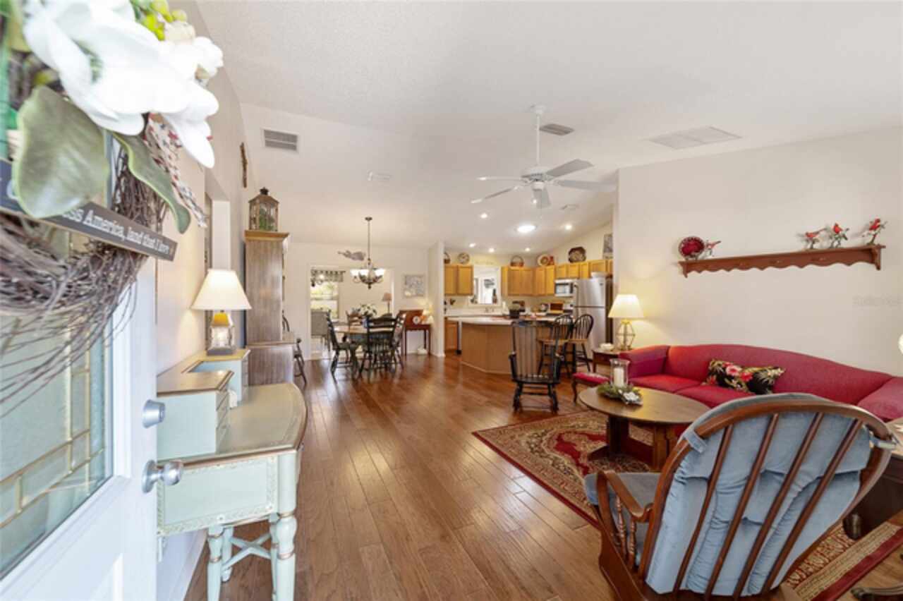 EXPANDED Amarillo Model with a 325 ft² FLORIDA ROOM added in The Villages. BOND IS PAID! No need to worry about ANYTHING because it has IMPRESSIVE upgrades and is METICULOUSLY MAINTAINED! *New ROOF: 2020 *New Trane AC unit: 2018 ***Be sure to WATCH the VIDEO @ https://youtu.be/6bkS_2T3QZk?si=yMq32mxWlxIuDObR *** LOCATED in the highly desired VILLAGE of PIEDMONT; just minutes from championship golf courses: Nancy Lopez Legacy and Glenview, as well as 4 Executive golf courses. Conveniently close to the Mulberry Regional Recreation Center, First Responders Recreation Center, and Calumet’s adult-only pool. Of course, in The Villages, you are close to shopping, restaurants, and squares with nightly live entertainment. The VA hospital and UF Health - The Villages Hospital, are both less than a 10 minute drive away, as well as many surrounding medical offices. BEAUTIFUL curb appeal with a welcoming and cozy front porch. As you enter; the first thing you notice is the STUNNING Hickory Engineered Harwood flooring! This OPEN CONCEPT, split bedroom plan, home has an added 25 x13 family room with plenty of windows. The natural light illuminates the exquisite transition of the natural tones in the ceramic tile floor and the beautifully stained hardwood floor in the main living area. Kitchen has all UPGRADED Stainless Steel appliances including a gas 5 burner stove. Primary bedroom has Engineered Hardwood Floors. Both guest bedrooms have carpet (replaced in 2021.) Guest bathroom has upgraded tile, and a solar tube light. Spacious PRIMARY BEDROOM has a walk-in-closet, and en-suite bathroom: Upgraded diamond patterned tile, counter top and shower with matching cultured marble, and solar tube light. Additional info:* (HVAC has an additional transferable warranty through 9/2028.) *Stainless Steel appliances: 2022 * SS Microwave: 2024 * Primary en-suite bathroom upgrade: 2018 * Termite Bond through 10/2029 (transferable to new owner.) * Tinted double pane windows * New garage door opener, remote, rollers, and springs: 2022 * Garage Floor Repainted: 2024 * Gutters and Downspouts = A MUST with Florida's downpours. ***Video on YouTube: https://youtu.be/6bkS_2T3QZk?si=yMq32mxWlxIuDObR