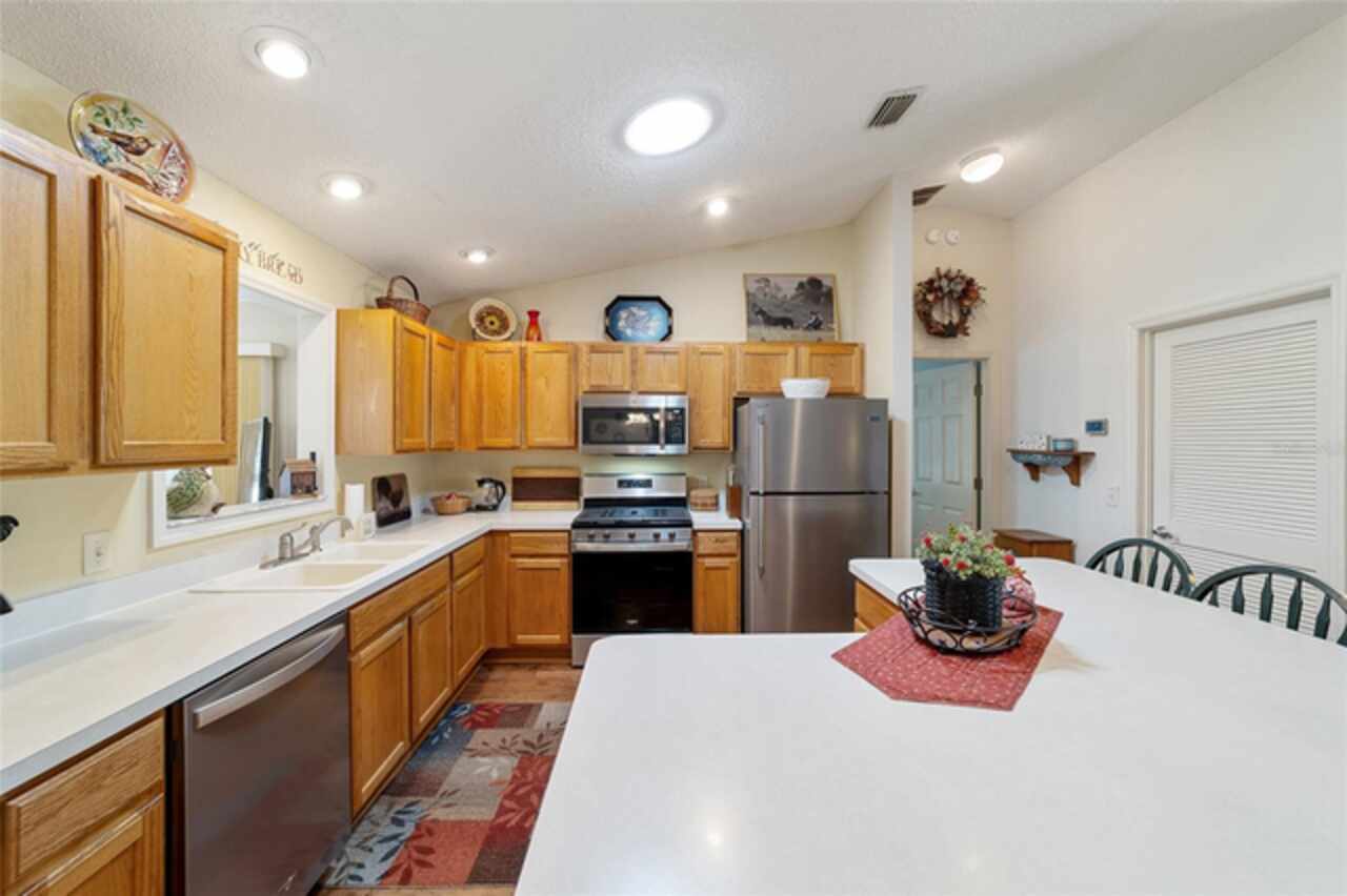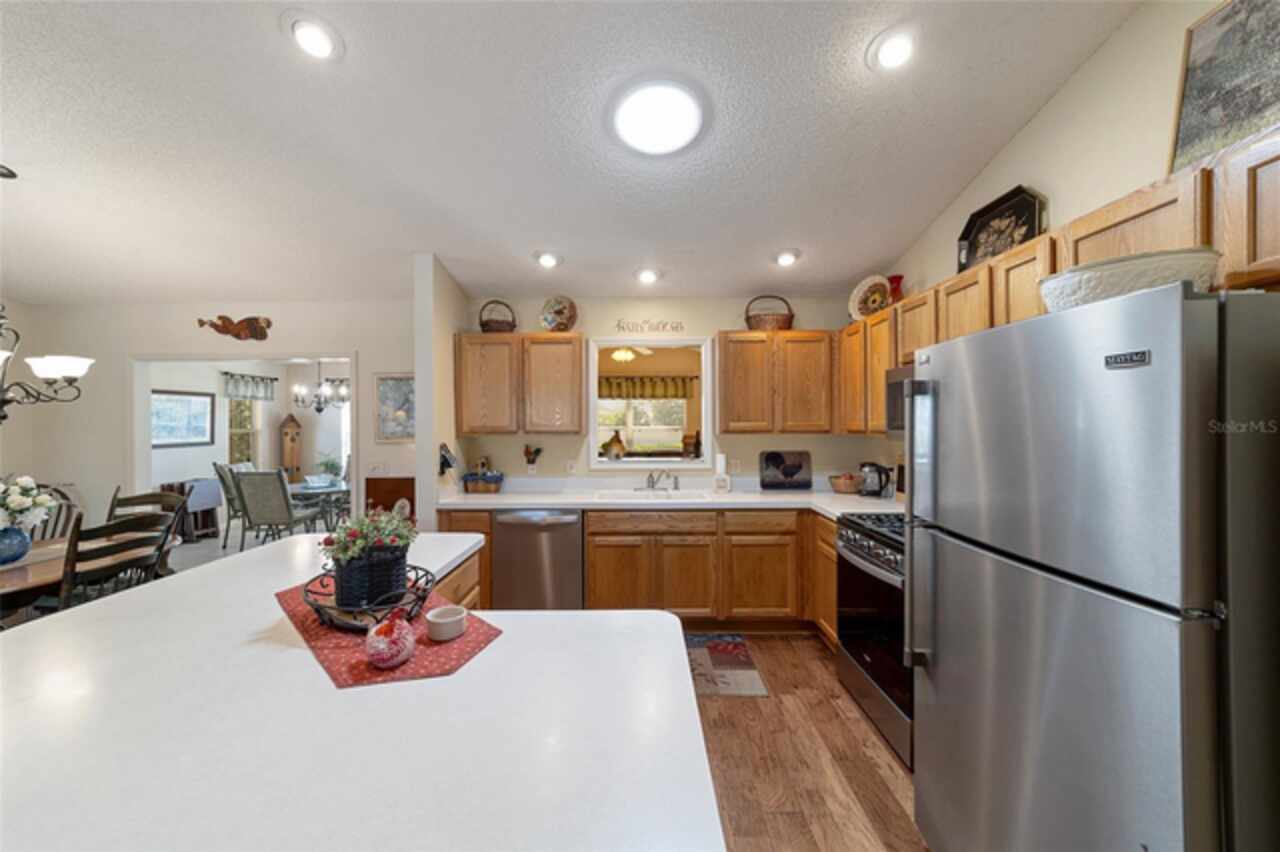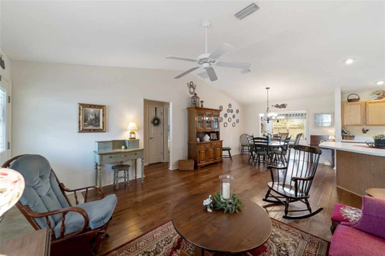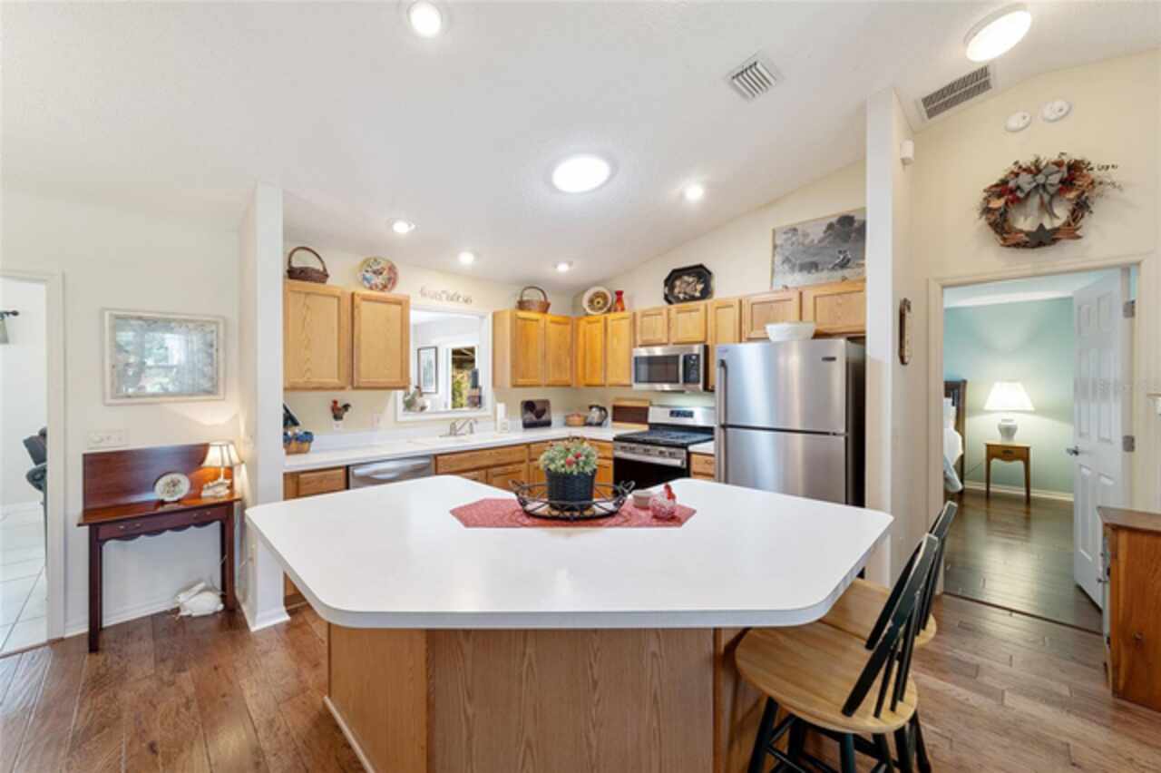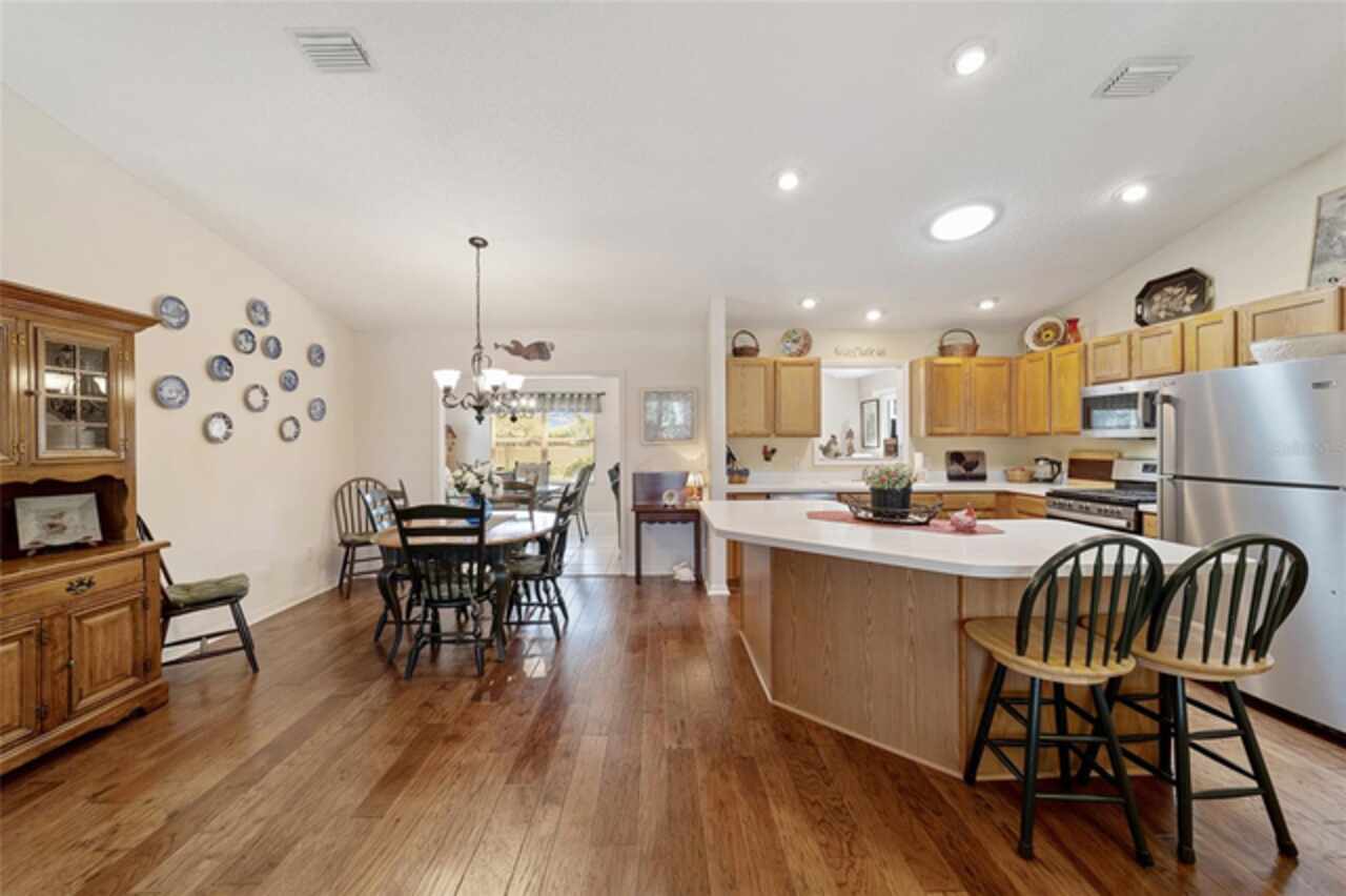 EXPANDED Amarillo Model with a 325 ft² FLORIDA ROOM added in The Villages. BOND IS PAID! No need to worry about ANYTHING because it has IMPRESSIVE upgrades and is METICULOUSLY MAINTAINED! *New ROOF: 2020 *New Trane AC unit: 2018 ***Be sure to WATCH the VIDEO @ https://youtu.be/6bkS_2T3QZk?si=yMq32mxWlxIuDObR *** LOCATED in the highly desired VILLAGE of PIEDMONT; just minutes from championship golf courses: Nancy Lopez Legacy and Glenview, as well as 4 Executive golf courses. Conveniently close to the Mulberry Regional Recreation Center, First Responders Recreation Center, and Calumet’s adult-only pool. Of course, in The Villages, you are close to shopping, restaurants, and squares with nightly live entertainment. The VA hospital and UF Health - The Villages Hospital, are both less than a 10 minute drive away, as well as many surrounding medical offices. BEAUTIFUL curb appeal with a welcoming and cozy front porch. As you enter; the first thing you notice is the STUNNING Hickory Engineered Harwood flooring! This OPEN CONCEPT, split bedroom plan, home has an added 25 x13 family room with plenty of windows. The natural light illuminates the exquisite transition of the natural tones in the ceramic tile floor and the beautifully stained hardwood floor in the main living area. Kitchen has all UPGRADED Stainless Steel appliances including a gas 5 burner stove. Primary bedroom has Engineered Hardwood Floors. Both guest bedrooms have carpet (replaced in 2021.) Guest bathroom has upgraded tile, and a solar tube light. Spacious PRIMARY BEDROOM has a walk-in-closet, and en-suite bathroom: Upgraded diamond patterned tile, counter top and shower with matching cultured marble, and solar tube light. Additional info:* (HVAC has an additional transferable warranty through 9/2028.) *Stainless Steel appliances: 2022 * SS Microwave: 2024 * Primary en-suite bathroom upgrade: 2018 * Termite Bond through 10/2029 (transferable to new owner.) * Tinted double pane windows * New garage door opener, remote, rollers, and springs: 2022 * Garage Floor Repainted: 2024 * Gutters and Downspouts = A MUST with Florida's downpours. ***Video on YouTube: https://youtu.be/6bkS_2T3QZk?si=yMq32mxWlxIuDObR