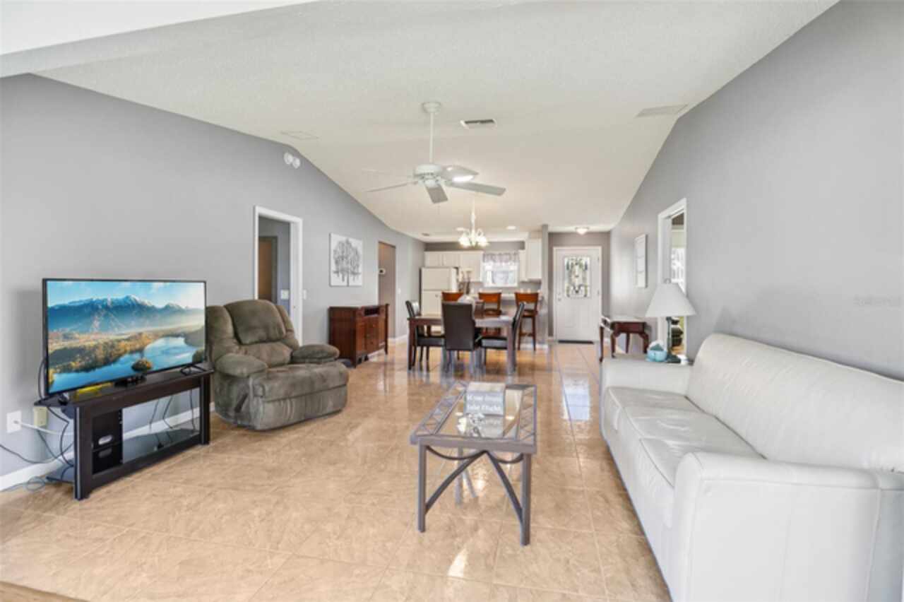 The Villages lifestyle is waiting just for you! This charming Corpus Christi model 3-bedroom, 2-bath home with a bonus room is located in the desirable Village of Piedmont, close to shopping, the VA hospital, and just a short golf cart ride from all the entertainment at Lake Sumter Landing. The spacious open floor plan flows seamlessly into the bright bonus room, filled with natural light and offering beautiful west-facing views—perfect for enjoying Florida’s incredible sunsets. The split bedroom layout provides privacy, making it ideal for family visits or short-term vacation rentals. Additional highlights include a new roof (2022), turnkey furnishings, and the bond is paid. This home is move-in ready and waiting for its next owner to start living the Villages dream!