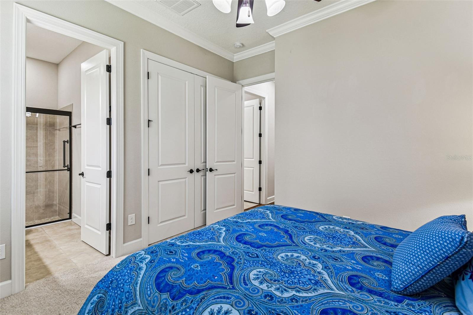 Ceiling Fans(s), Crown Molding, Eat-in Kitchen, High Ceilings, In Wall Pest System, Open Floorplan, Solid Surface Counters, Split Bedroom, Stone Counters, Thermostat, Tray Ceiling(s), Walk-In Closet(s), Window Treatments