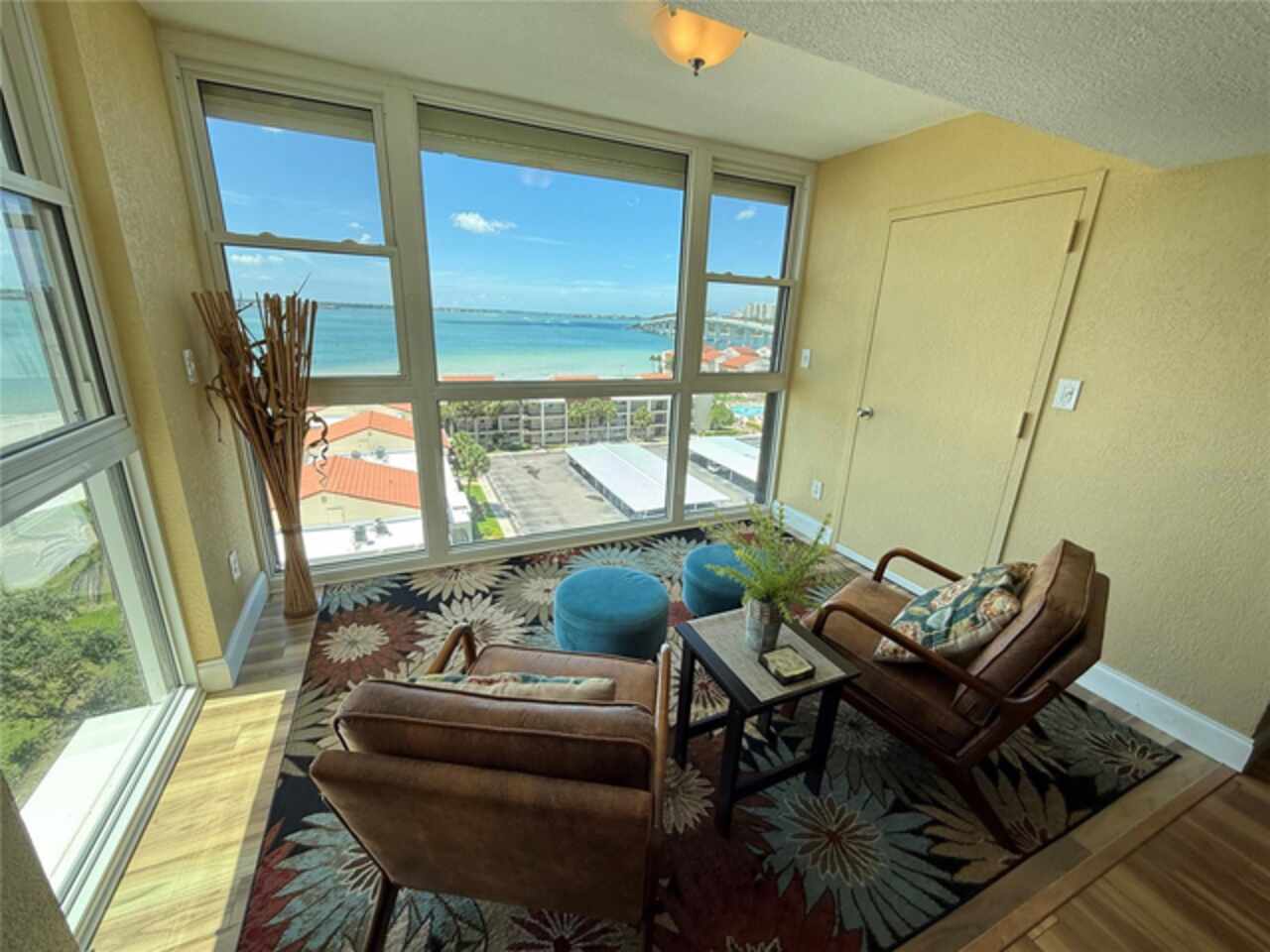 Live the Florida Coastal Dream! Discover beachside living at its finest in this beautifully furnished, top-floor 2-bedroom, 2-bath condo located on the serene southern end of Clearwater Beach. This spacious and light-filled residence boasts an open floor plan, a modern kitchen with updated appliances, and two private balconies offering stunning water views—perfect for relaxing or entertaining. Enjoy added comfort and peace of mind with electric storm shutters, an updated AC system, and a seller-paid roof assessment already taken care of. Both generously sized bedrooms feature ample closet space and direct access to their own bathrooms, creating a comfortable and private retreat for residents and guests alike. Located in the sought-after Clearwater Point community, this condo includes access to a rare, private resident-only beach, three heated pools, a grilling area, and impeccably maintained grounds with secure entry and assigned garage parking—a valuable inclusion that typically comes at an added cost! This unit offers arguably the best view in the community, with no immediate western-facing construction to block the vistas. While the luxury Viceroy building is expected to be completed by 2028 with prices starting at $2.5 million, now is the ideal time to secure this quality residence at a fraction of the price. Whether you're looking for a full-time residence or a high-end vacation retreat, this move-in-ready condo offers the perfect blend of location, lifestyle, and value—just a short stroll from Clearwater Beach’s world-class restaurants, shopping, and nightlife.