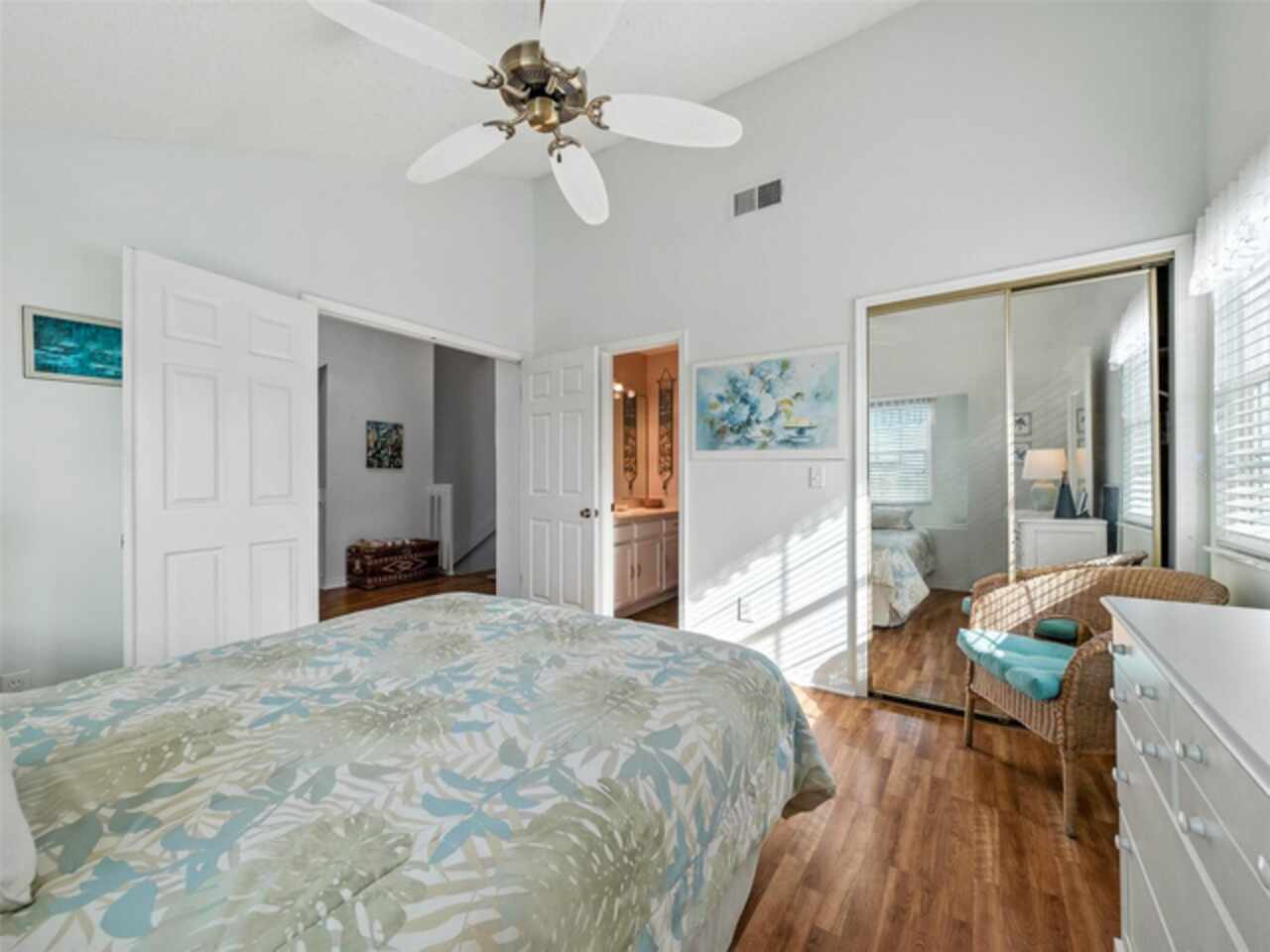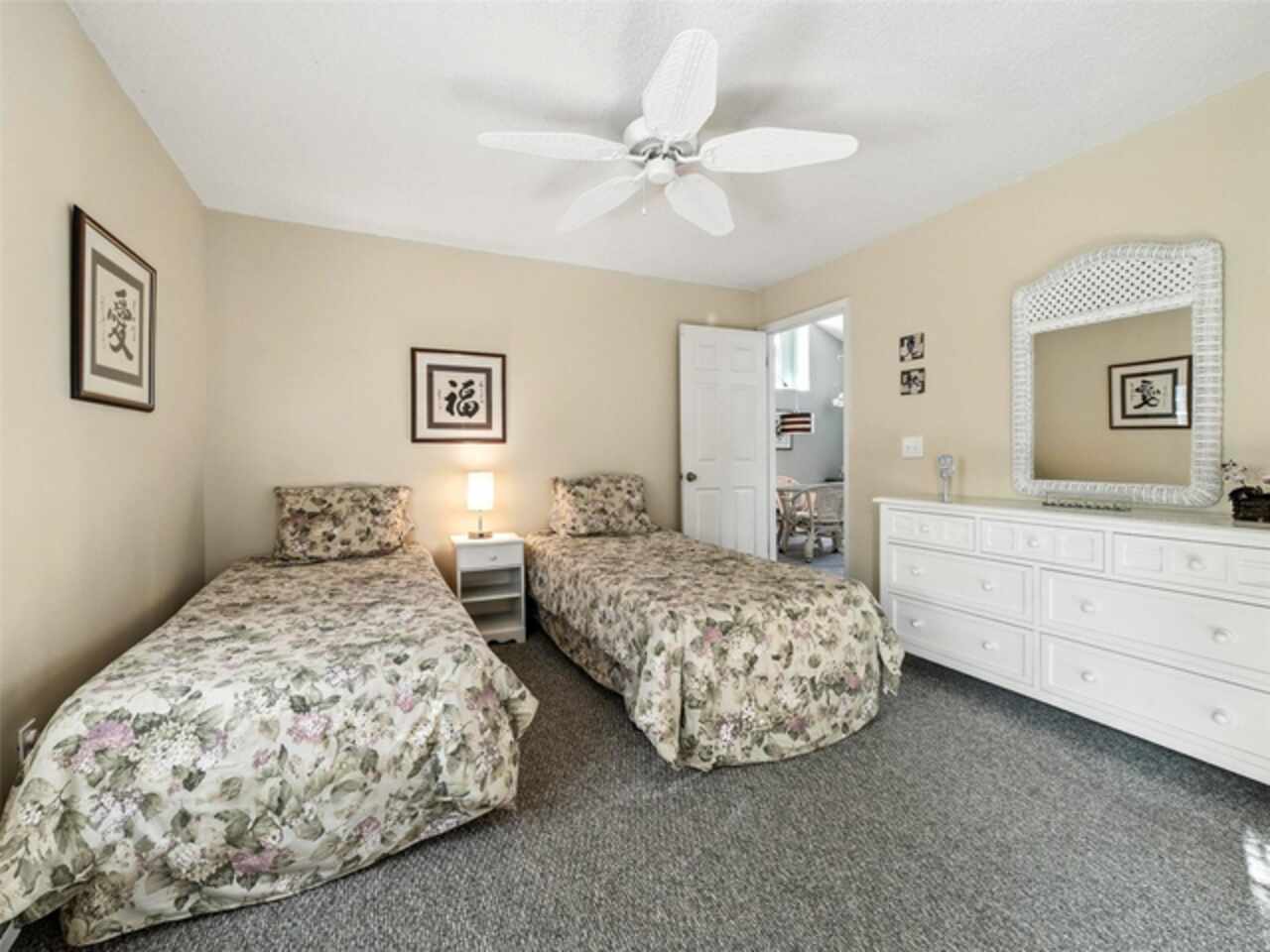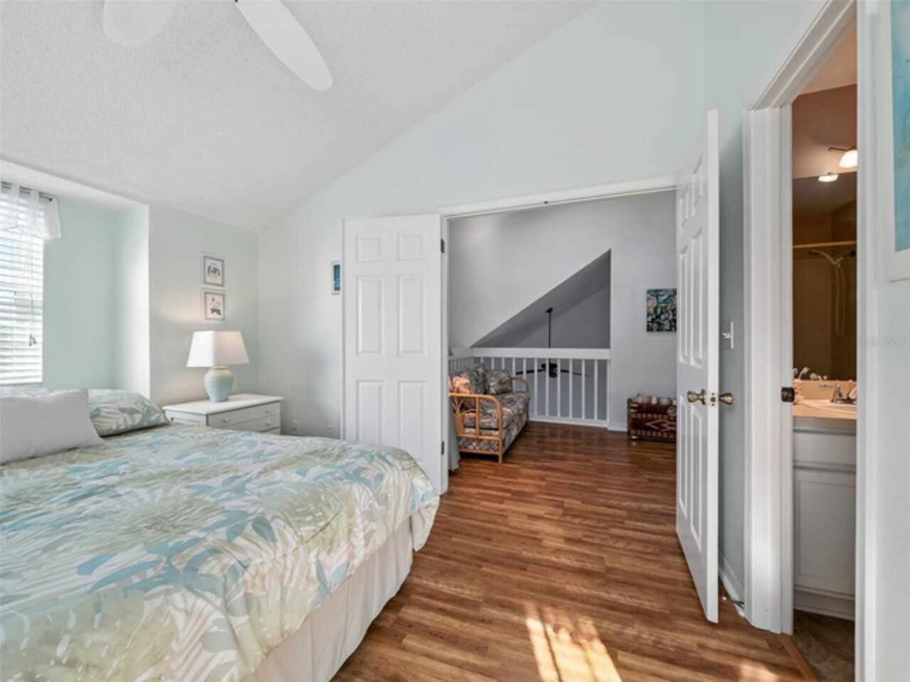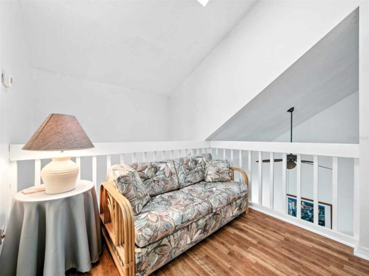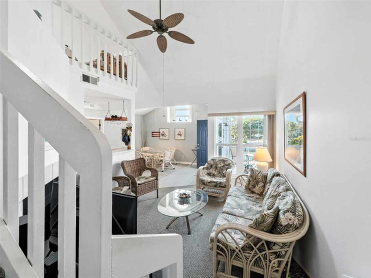 Just steps to the no-drive beach, this spacious 2 bedroom, 2 bath condominium includes a den that could double as extra sleeping or play space. There are newer double pane impact windows throughout. The vaulted ceilings add to the spacious feel. Primary suites on both levels offer privacy. In unit washer/dryer and walk-in closets. Electric fireplace adds ambience. HVAC installed Sept 2023. The complex completed major renovations and updates in 2024. Private storage closet for your beach chairs and umbrellas. One assigned parking spot (#68) plus plenty of guest parking. There’s a sparkling pool and peaceful tree-shaded paths throughout the grounds and an on-site manager, too.