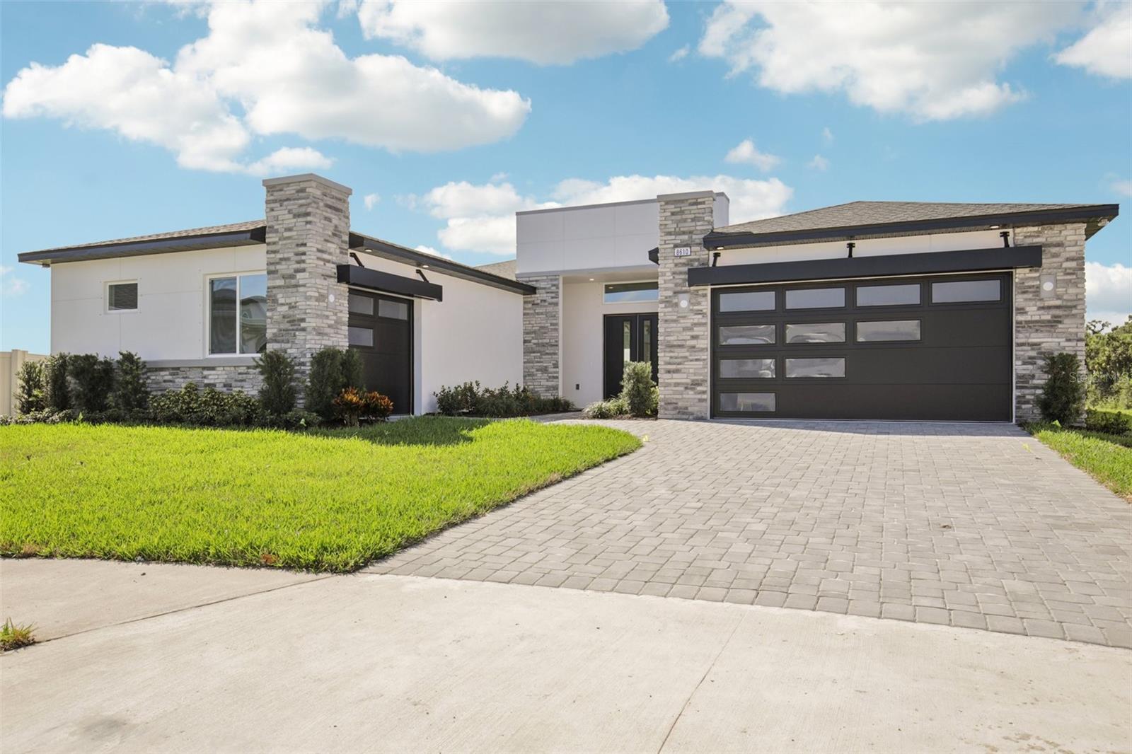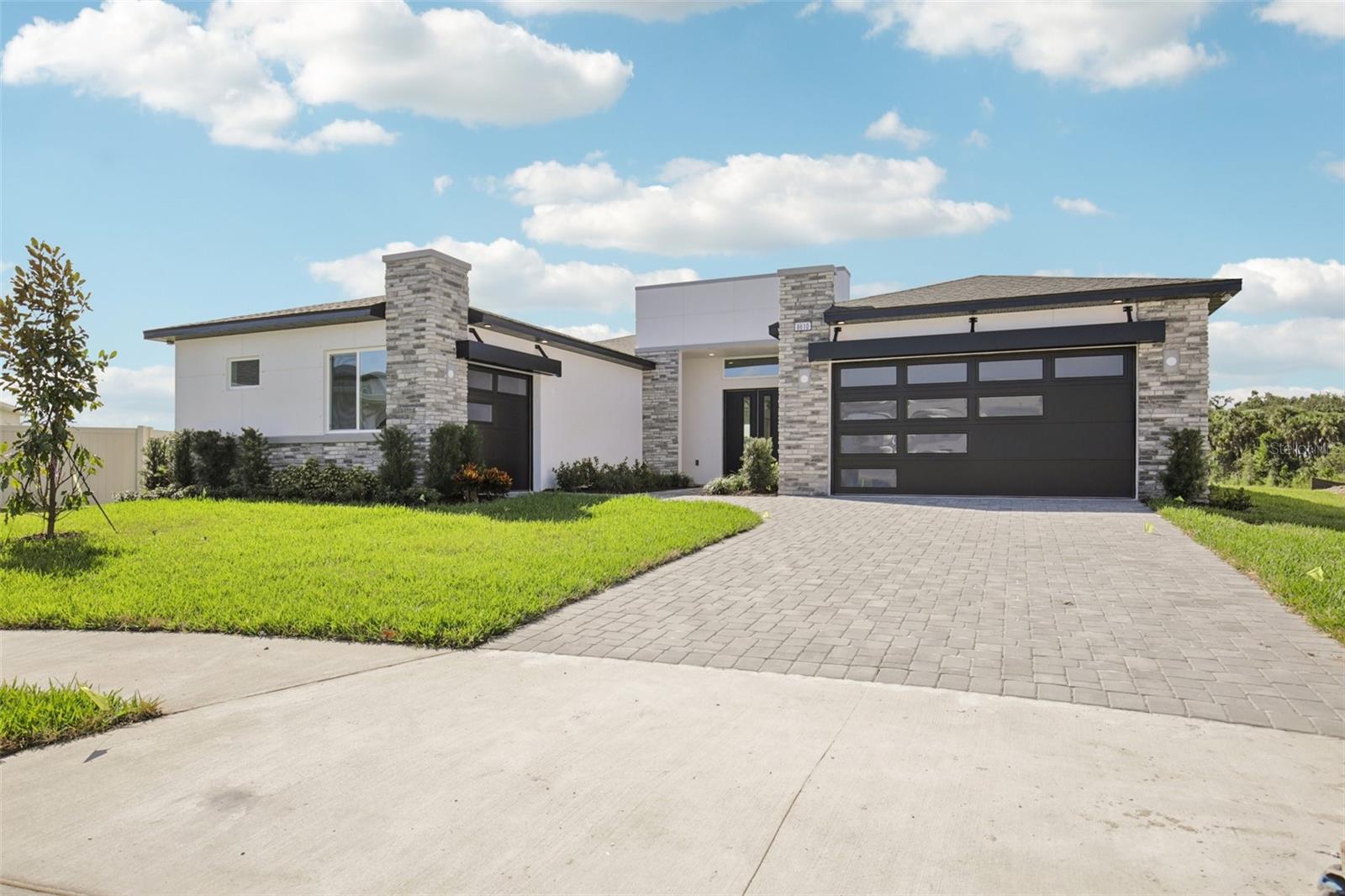 Under Construction. Welcome to 8610 Ocean Key Place – A Stunning Single-Level Sabal Home with Contemporary Flair This thoughtfully designed one-story home embraces modern aesthetics and functional living. Nestled on a pie-shaped lot at the end of a peaceful cul-de-sac, it showcases water and nature preserve views and offers exceptional versatility. *These photos are of a Similar Sabal Home Plan. Please contact our Sales Agents for updated photos. Key Features: - Contemporary exterior design with clean lines and welcoming curb appeal - Single-level Sabal floor plan offering 3 bedrooms, 3.5 bathrooms, and 3, 174 sq. ft. of living space - Two separate garages (3-car total) providing flexible parking/storage options - Pie-shaped homesite located in a quiet cul-de-sac with water and preserve views - Covered front porch leading to a gracious foyer and expansive family room with access to the covered lanai - Extended gourmet kitchen featuring double islands, a walk-in pantry, and open views to the adjoining dining area—perfect for entertaining - Luxurious primary suite includes dual vanities, a Roman shower with dual heads, private water closet, and two walk-in closets - Versatile game room ideal for media, play, or casual gathering space - Generous covered lanai extending your living and entertaining space outdoors - Smart home features, tray ceilings, stone countertops, and stylish finishes throughout
