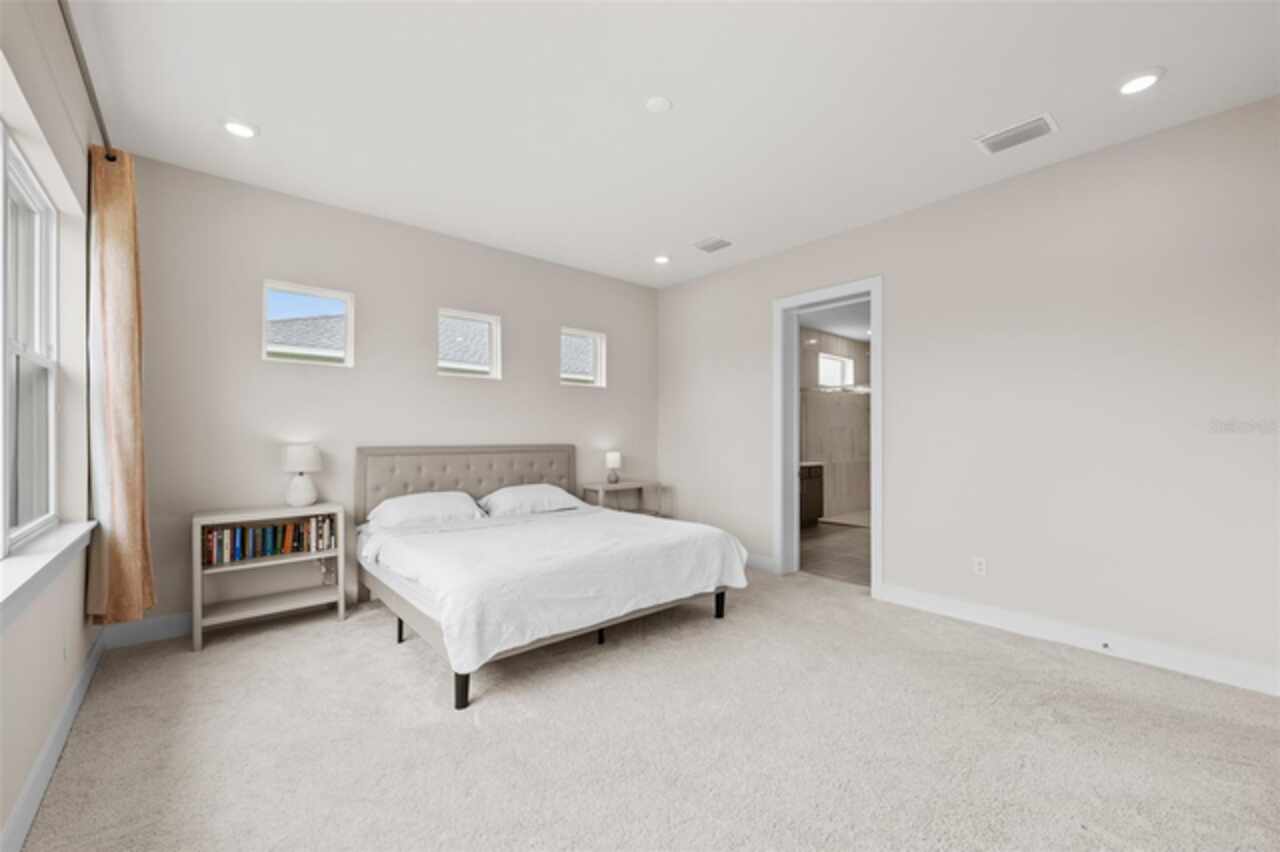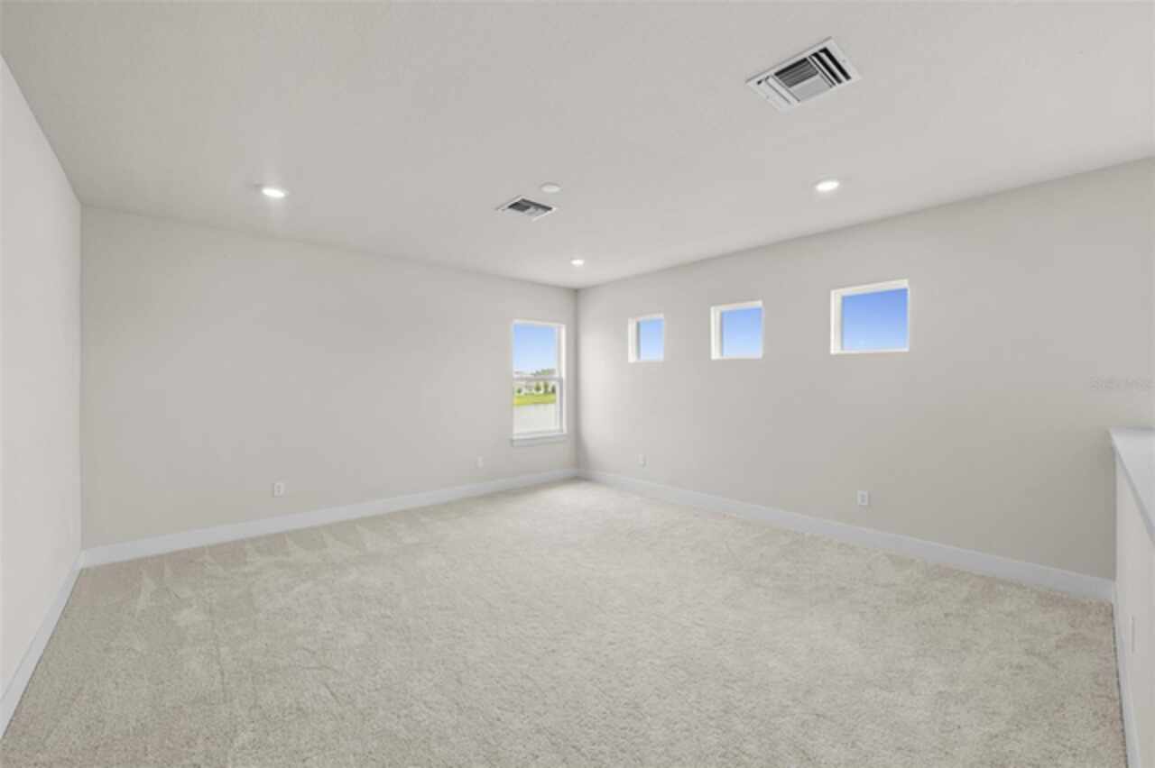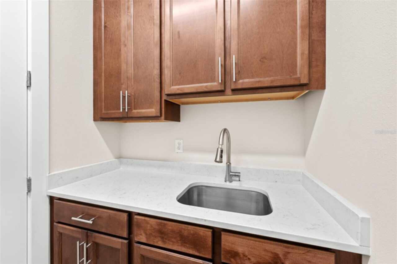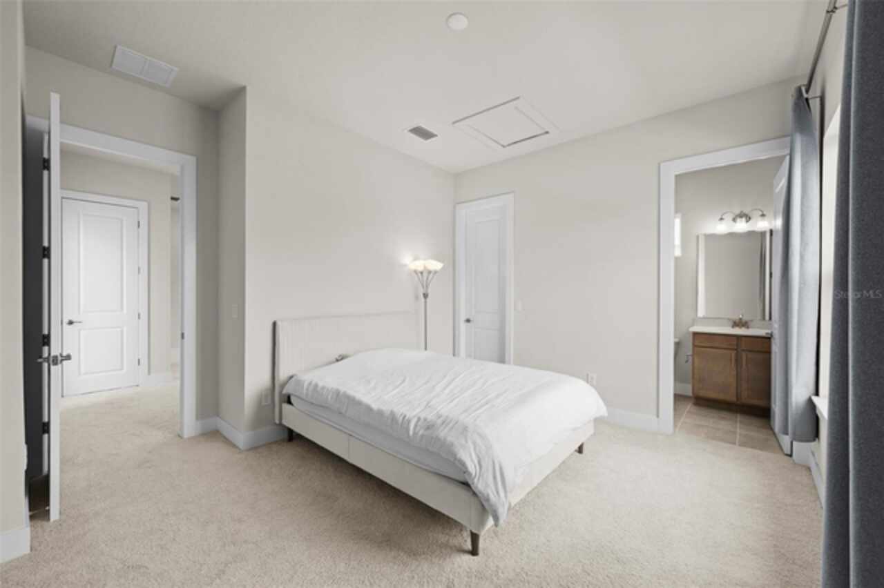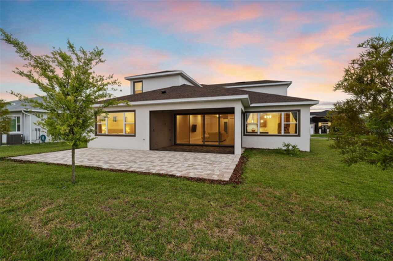 Experience exceptional waterfront living in this stunning four-bedroom, three-and-a-half-bath residence with a dedicated in-law suite with private entrance, all in the amenity-rich community of Epperson Ranch. A stylish frosted glass and wrought iron front door welcomes you into a home defined by sophisticated finishes and a thoughtful layout. The expansive living space is adorned with durable ceramic tile floors, creating a seamless flow from room to room. The heart of the home is the gourmet kitchen, which boasts attractive quartz countertops, a classic white subway tile backsplash, and sleek stainless steel Samsung appliances including oven, microwave, refrigerator freezer combo and a ceramic cooktop with modern range hood. Ample dining options are provided with a large, sunny breakfast nook for casual meals and a separate formal dining room ideal for entertaining. The luxurious primary suite is a private retreat, featuring an upgraded oversized window package that fills the room with natural light and pond views. The en-suite bath is appointed with quartz counters, dual vanity, a separate water closet and a large, frameless glass walk-in shower. A unique and desirable feature of this home is the private in-law suite, complete with its separate entrance, a bedroom, an en-suite bath, living room and plumbing ready for a kitchenette. Upstairs, a spacious loft area offers flexible living space, ideal for a media room, home office or play area. The well-equipped laundry room includes built-in cabinetry and a utility sink for added convenience. Go outside to the screened and covered lanai, which features a panoramic screen to maximize the tranquil pond views. This outdoor living space is pre-plumbed and wired for an outdoor kitchen, making it an entertainer's dream. An additional paver lanai extends the outdoor space, offering even more room for relaxation and enjoyment. This home provides an unparalleled lifestyle in a premier location, and a prime oversized lot. Epperson’s famous crystal lagoon comprises 7.5 acres of clear blue water including sandy beaches, a swim-up bar, food trucks and various water activities. Epperson also showcases UltraFi, a community-wide internet and cable experience, Streetleaf solar streetlights, golf cart paths and miles of trails. In the Robin's Cove neighborhood is Eagle Park, which includes a community clubhouse, recreational trails, exercise stations, dog parks, playground and a dock for King Lake. This growing area is across the street from The Kirkland Ranch Academy of Innovation and new Kirkland Ranch K-8 School. Enjoy golf cart access to Publix and Starbucks while also conveniently less than five minutes from Interstate 75, providing ample shopping and dining options at the Tampa Premium Outlets, Shops at Wiregrass and Krate at the Grove.