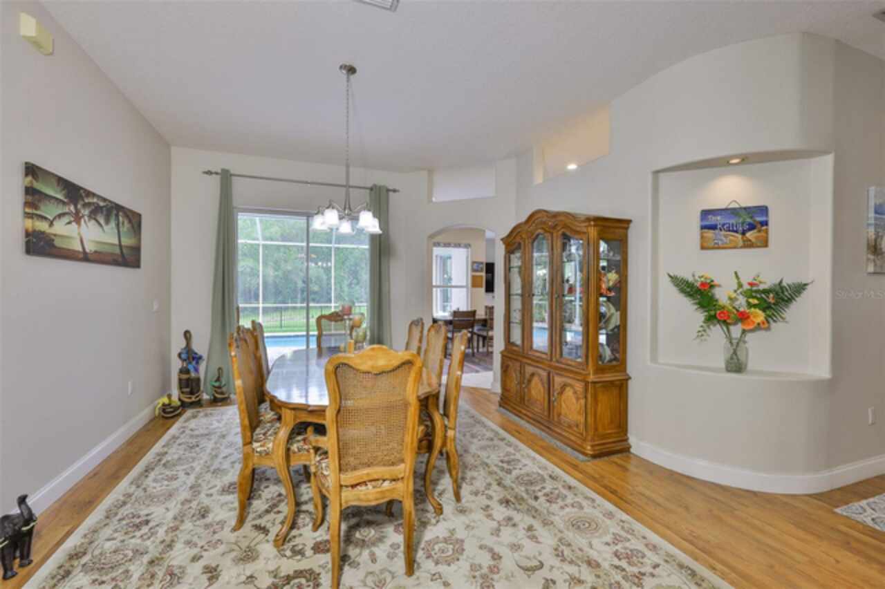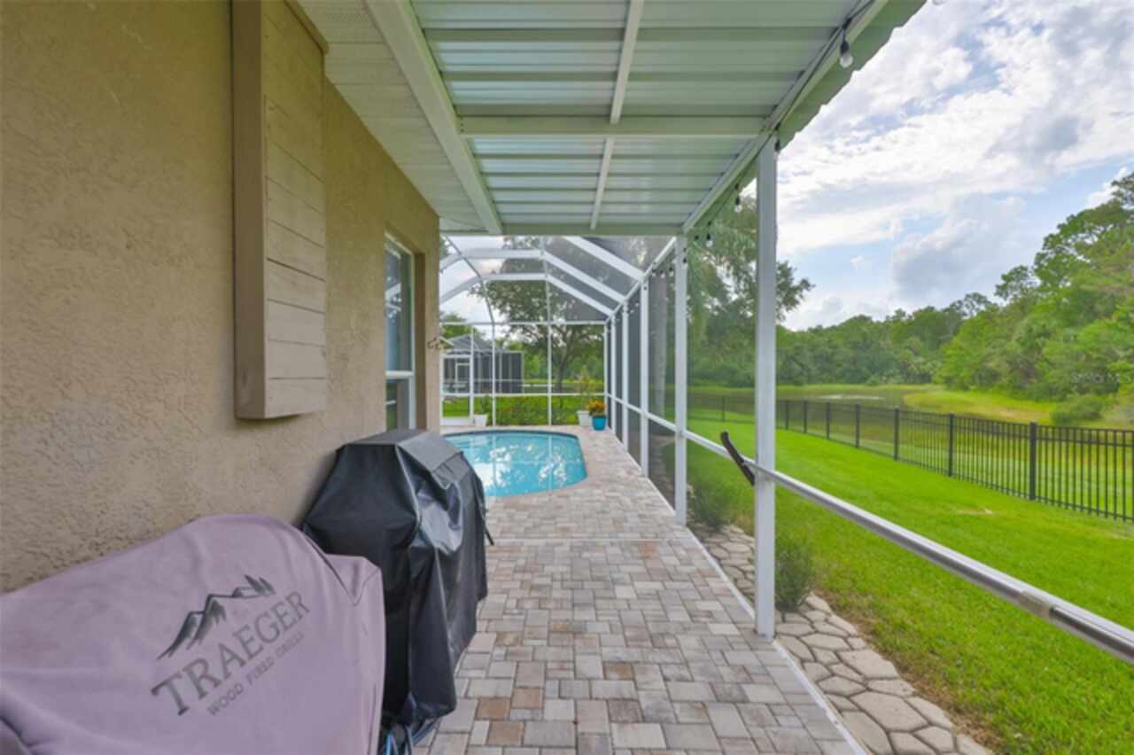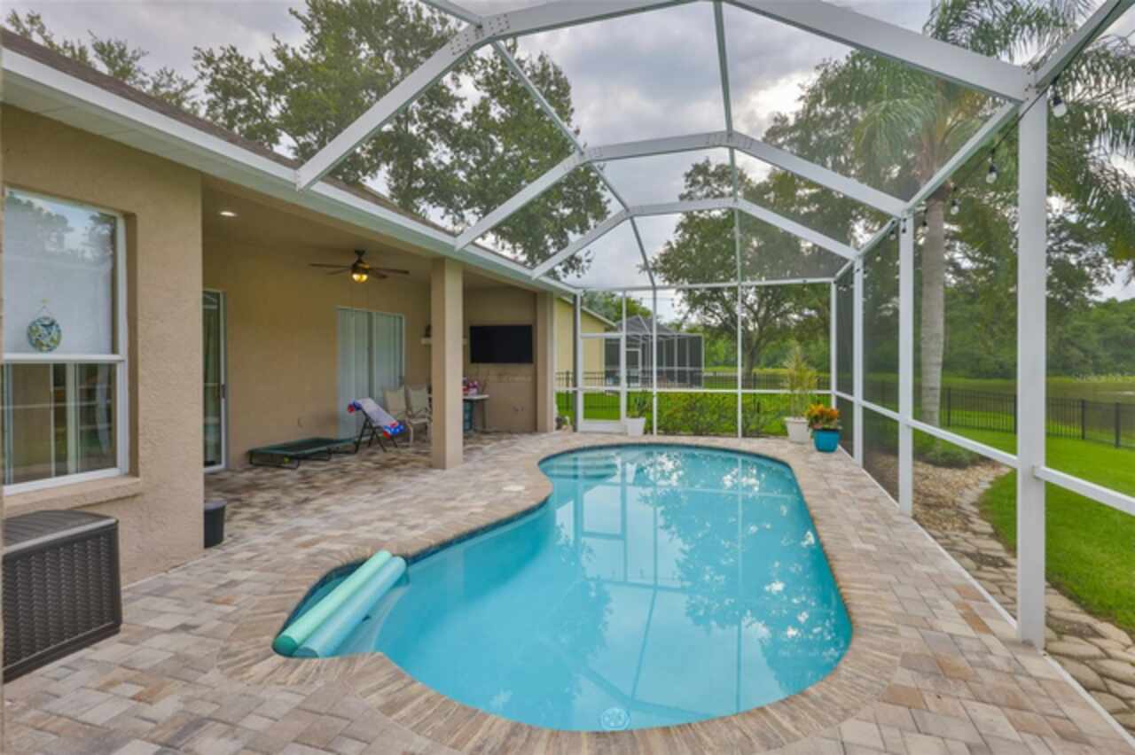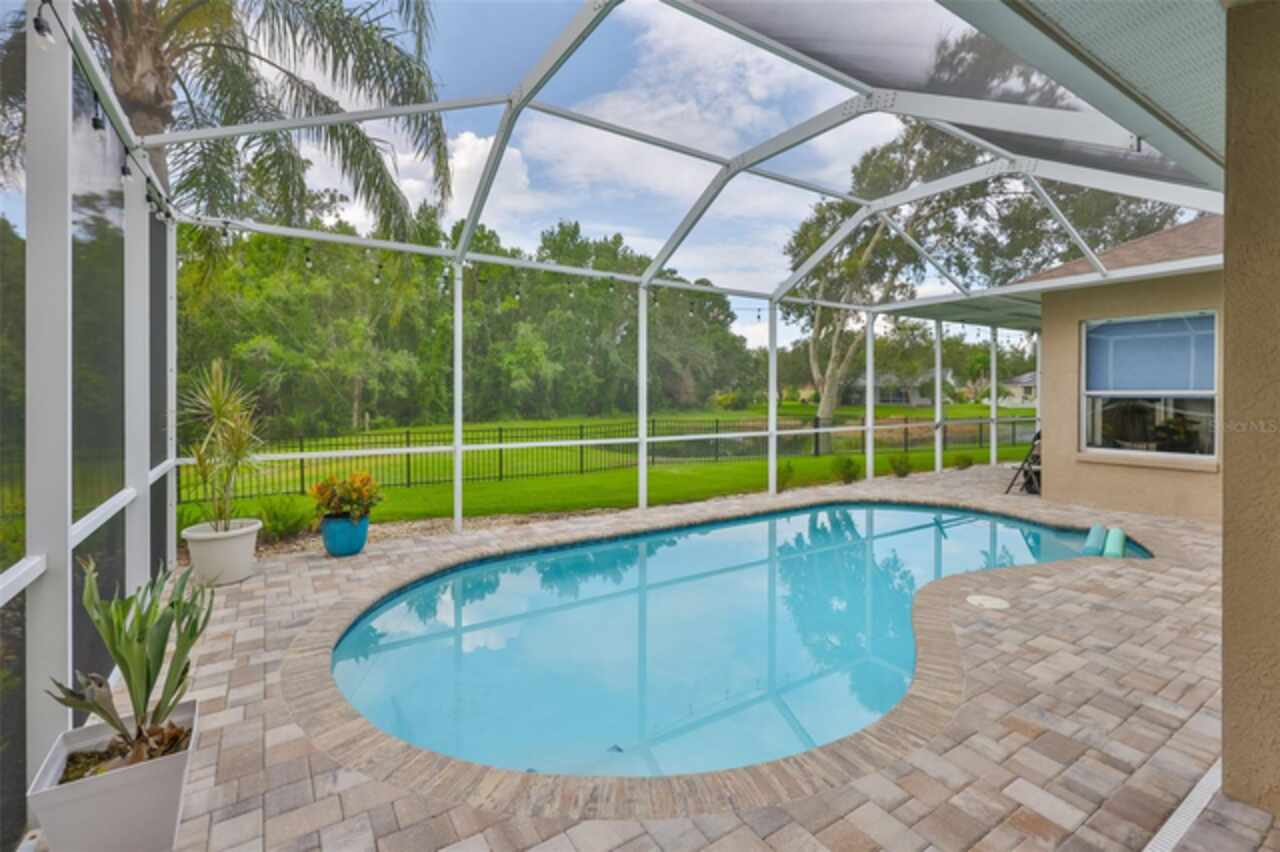 Stunning Lakefront Pool Home in Desirable West Meadows Welcome to your dream home in the heart of sunny Tampa, Florida! Nestled in the sought-after community of West Meadows, this beautifully maintained 4-bedroom, 3-bathroom, 3-car garage pool home offers the perfect blend of luxury, comfort, and breathtaking natural beauty. From the moment you arrive, you'll be captivated by the home's impressive curb appeal. An elegant archway entrance, manicured lawn, mature trees, and tasteful exterior lighting create a warm and inviting first impression. Inside, gleaming laminate floors, soaring ceilings, and abundant natural light enhance the open, airy feel of the space. This home is ideally situated on a rare pie-shaped lot, maximizing privacy and providing panoramic views of a serene lake and lush conservation area, like having your own private island right in your backyard! The screened lanai and paver pool deck are perfect for relaxing or entertaining while enjoying the Florida sunshine and tranquil water views. The heart of the home is the updated kitchen, which seamlessly flows into the dinette and living areas. You'll love the granite countertops, tall white cabinetry, stainless steel appliances, breakfast bar, and elegant fixtures. Whether you're hosting a gathering or enjoying a quiet morning coffee, this space offers comfort and functionality. The split-bedroom floor plan offers maximum privacy, with the luxurious primary suite tucked away in its own wing. Here, you'll find sliding glass doors leading to the lanai, a spacious layout to accommodate any furniture, and a spa-like ensuite bath complete with double vanities, a walk-in shower, soaking tub, and a generous walk-in closet. The additional bedrooms are equally spacious and bright, with large windows, ceiling fans, and ample closet space. One bedroom and full bath are perfectly positioned for guests or multigenerational living, while the remaining two bedrooms share a well-appointed third bathroom. Step outside to your private screened porch, where you can enjoy year-round outdoor living with uninterrupted views of the lake and surrounding landscape, a true sanctuary. As a resident of West Meadows, you'll also enjoy access to the exclusive community clubhouse, featuring resort-style amenities including multiple pools (one with a thrilling slide), tennis courts, a fitness center, and more. This exceptional home offers everything you've been searching for: scenic views, a spacious layout, luxurious finishes, and access to top-tier community features. Don't miss the opportunity to make this slice of paradise your own!