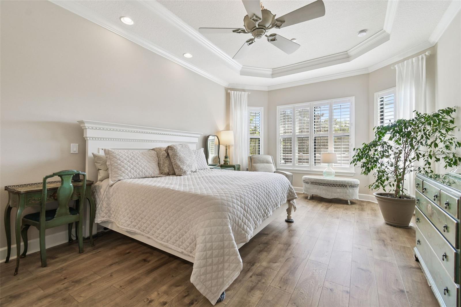Ceiling Fans(s), Eat-in Kitchen, High Ceilings, In Wall Pest System, Open Floorplan, Primary Bedroom Main Floor, Solid Surface Counters, Split Bedroom, Stone Counters, Thermostat, Tray Ceiling(s), Walk-In Closet(s)