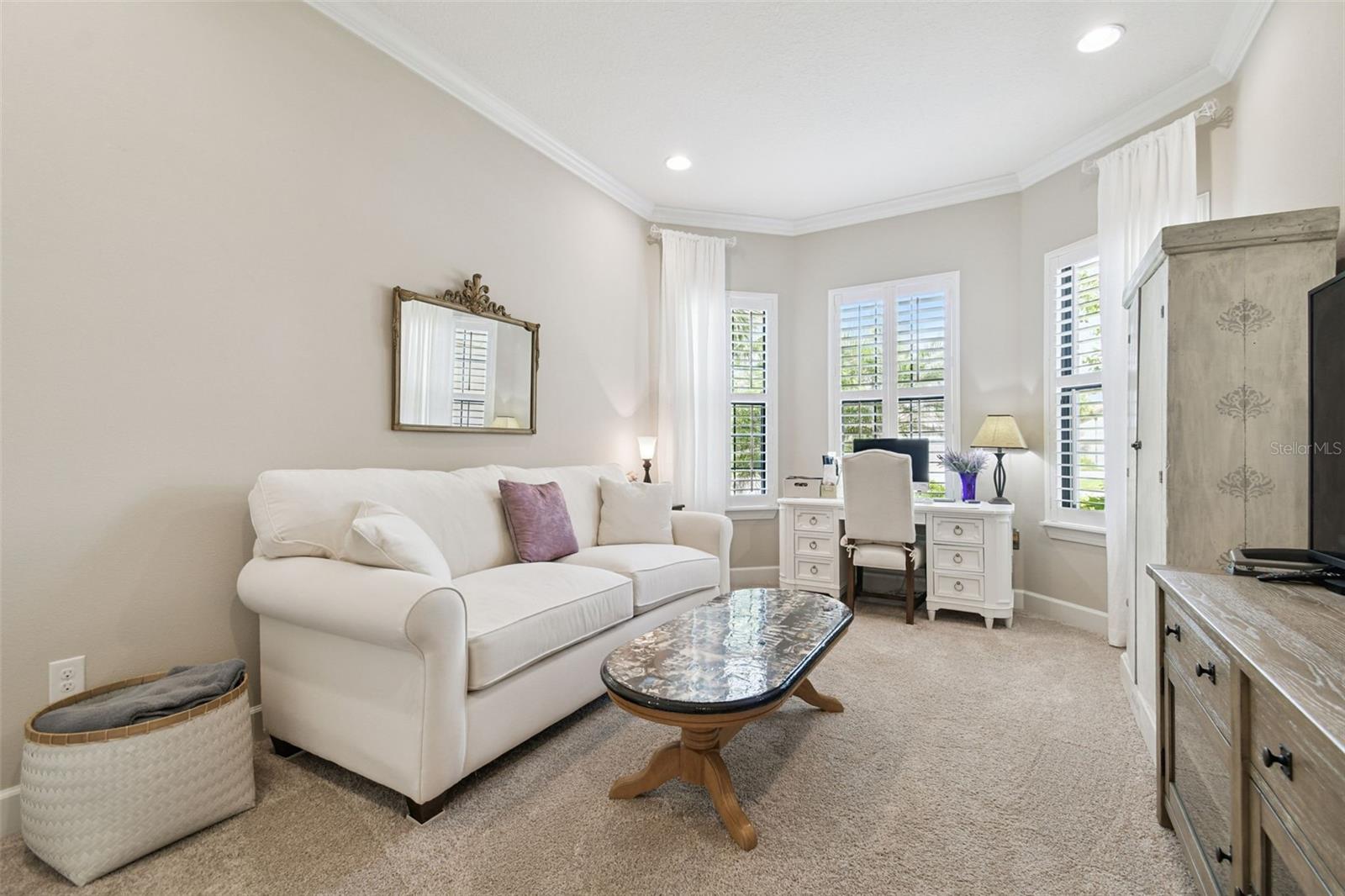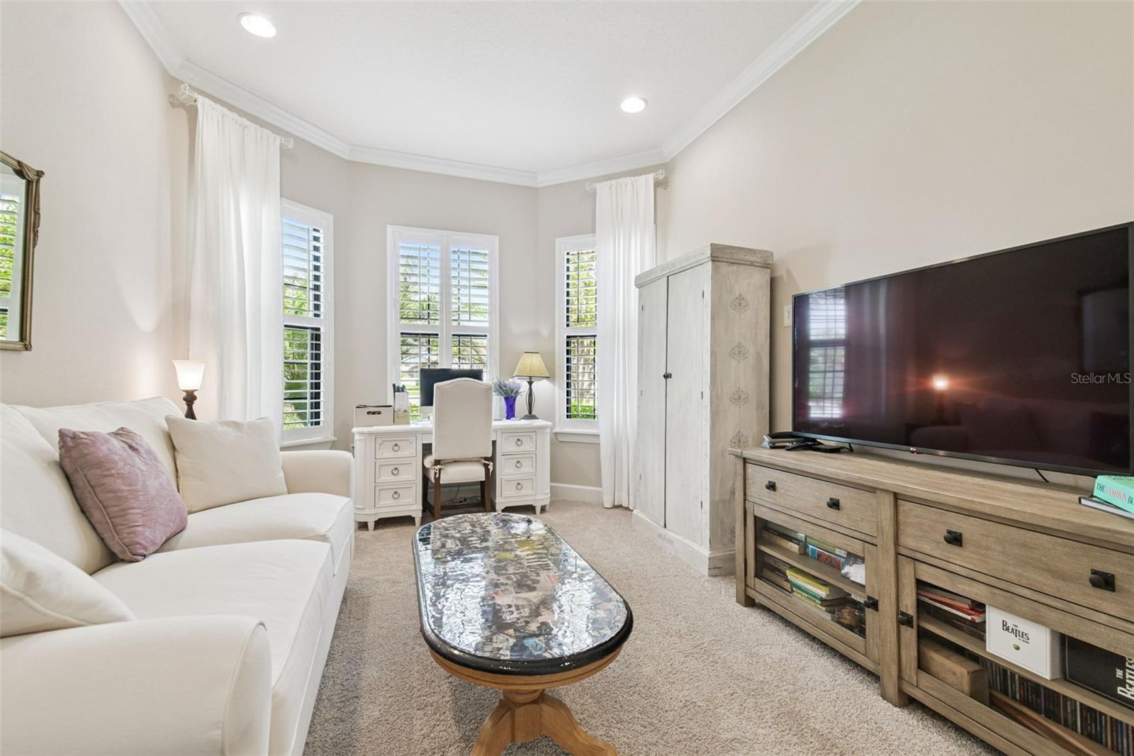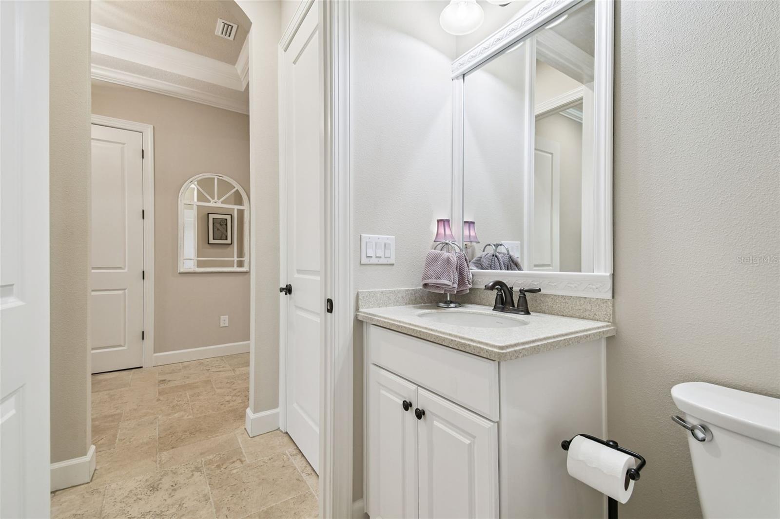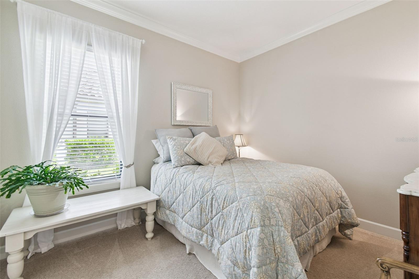 Luxury meets tranquility in this stunning home located in the exclusive GATED community of Esplanade of Tampa! Built by Taylor Morrison, this thoughtfully designed home combines timeless craftsmanship, modern upgrades, and a true sense of privacy with its CUL-DE-SAC location and peaceful CONSERVATION VIEWS. Curb appeal shines from the moment you arrive, featuring FRESH EXTERIOR PAINT (2025), lush landscaping, and a NEWLY SEALED brick paver driveway. Enjoy the convenience of INCLUDED LAWN MAINTENANCE and NO CDD fees in one of the most desirable communities in New Tampa! Step inside to discover a beautiful and well maintained interior with HIGH-END TRAVERTINE FLOORING throughout, plantation shutters, and custom Hunter Douglas roller shades. The open and inviting floor plan offers 3 spacious bedrooms, an office/den with French doors, 3 full bathrooms, and a 2-car garage with attic pulldown stairs and flooring for additional storage. The entertaining kitchen impresses with GE Cafe series appliances, elegant cabinetry, thick granite countertops, glass tile backsplash, a natural gas range and massive center island. The expansive owner’s suite is a private retreat, offering a LARGE CUSTOM WALK-IN CLOSET WITH BUILT-INS, a luxurious ensuite bathroom with dual vanities and a spacious walk-in shower. The large laundry room offers built in cabinetry for ample storage space and organization. Step through the sliding glass doors to your private backyard oasis, complete with a sparkling PRIVATE POOL and SPA, brick paver pool deck, rescreened in 2023, and a FULLY FENCED YARD surrounded by lush greenery and total PRIVACY. The covered lanai provides the perfect space for outdoor dining, lounging, or simply unwinding while taking in the peaceful conservation views. This home was designed for both comfort and quality, featuring a tankless gas water heater, hurricane shutters, in-wall pest control, energy-efficient construction, and a TILE ROOF built to stand the test of time. Residents of Esplanade of Tampa enjoy access to premier resort-style amenities including tennis and pickleball courts, two dog parks, a clubhouse with fitness center, community pool with cabanas, social events, fire pit, and more, all with no age restrictions and no CDD fees! Conveniently located near I-75, I-275, TOP-RATED MEDICAL FACILITIES, Wiregrass Mall, Tampa Premium Outlets, The Grove, and some of Tampa Bay’s most popular dining and entertainment destinations, this home offers the perfect blend of luxury, comfort, and convenience. Why wait for new construction when this home offers all the luxury, upgrades, and tranquility of a new build without the wait? Esplanade of Tampa is fully established and has a beautifully maintained community ready to enjoy today. This exquisite home is a true gem offering privacy, elegance, and the ultimate Florida lifestyle in one of the most sought-after communities in the area.