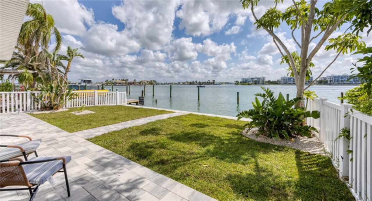 Welcome to 8635 Boca Ciega Dr. – A beautifully renovated waterfront gem on Boca Ciega Bay. Quick and easy access to the Intracoastal & Gulf of Mexico. Move in ready. Nothing to do but enjoy a bright, open-concept layout with soaring 12.5-foot cathedral ceilings, large impact-rated windows and doors, and breathtaking bay views. The kitchen, fully renovated in April 2025, features butcher block countertops, shaker cabinetry, stainless steel appliances, and overlooks the spacious living area and water beyond.This charming 2-bedroom, 2-bathroom home offers stunning water views and is located just under 1 mile from Sunset Beach, 1.3 miles from public beaches, shops and restaurants of Corey Avenue. Both bedrooms have vaulted ceilings with fans, and the primary suite includes serene water views and a newly updated ensuite bath with granite vanity. A separate laundry room adds convenience. Recent upgrades include a new roof, HVAC system and ductwork, solar panels, new tile flooring throughout, a new seawall, new water heater, and completely updated plumbing (supply and waste lines)—all completed in 2023–2024. The renovation also included new treated lumber, insulation, and hurricane strapping. Additional features include a two-car garage and ample room to add a pool. This home experienced minor damage. Home sustained damage from Hurricane Helene and has been fully restored. Don't miss your chance to live with the bay in your backyard Seller will consider concessions if requested in contract.
