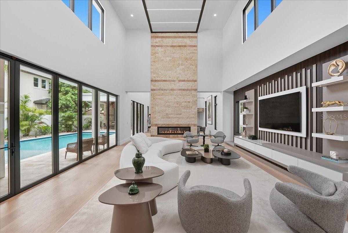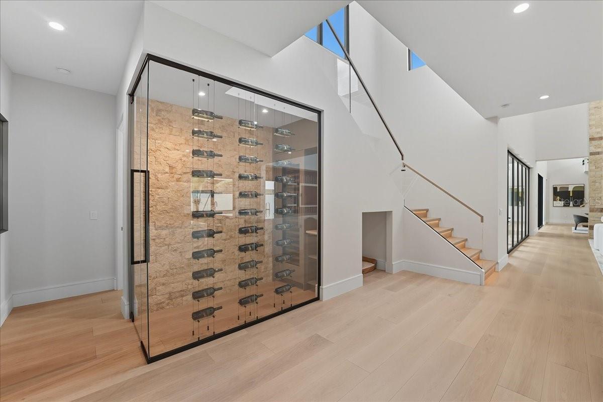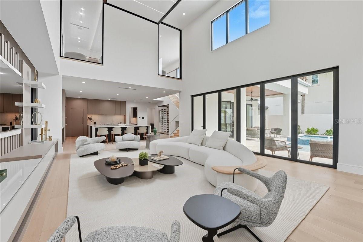 Under contract-accepting backup offers. Situated on a lot spanning over a quarter of an acre, this stunning DeVoe Custom Home encompasses just under 5, 500 square feet. It features five spacious bedrooms, five lavish bathrooms, and two additional half baths. Designed with both elegance and comfort in mind, this home showcases modern luxury seamlessly paired with timeless design elements. Step into an open-concept living space, where soaring ceilings—exceeding 22 feet—combine with expansive windows to flood the home with natural light. The gourmet kitchen is equipped with top-of-the-line appliances, custom cabinetry, and a unique double kitchen island, making it the ideal space for entertaining and culinary creativity. Adjacent dining and living areas flow seamlessly, enhanced by bespoke finishes, a gas fireplace, and panoramic views of the manicured grounds. The primary suite is a private sanctuary, featuring a spa-like bathroom with a soaking tub, dual vanities, a walk-in rain shower, and an immense, custom-designed closet. Each additional bedroom includes an en-suite bathroom and walk-in closet, ensuring both comfort and privacy for family members or guests. Outside, the custom-designed spa and pool area provide the ultimate in relaxation, complete with a privacy wall for added seclusion. The landscaped yard offers ample space for outdoor gatherings, whether lounging poolside or dining al fresco on the covered patio. Additional luxury features include a floating illuminated staircase with glass handrails, a temperature-controlled wine enclosure/display, and both upstairs and downstairs laundry rooms—each equipped with washer and dryer units. A dedicated utility storage room offers over 120 square feet of air-conditioned space, ensuring plenty of additional storage. This home is perfect for hosting or enjoying peaceful, everyday luxury. Custom lighting and fixtures, a spacious three-car garage with dedicated space for golf cart parking, and a versatile office/flex space for work or hobbies round out the exceptional offerings. Located in the heart of Lake Nona Golf & Country Club, this luxury estate provides unparalleled access to local amenities, fine dining, and top-rated schools. Floor plans are available upon request.