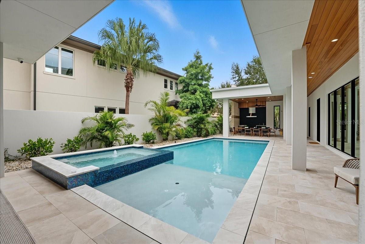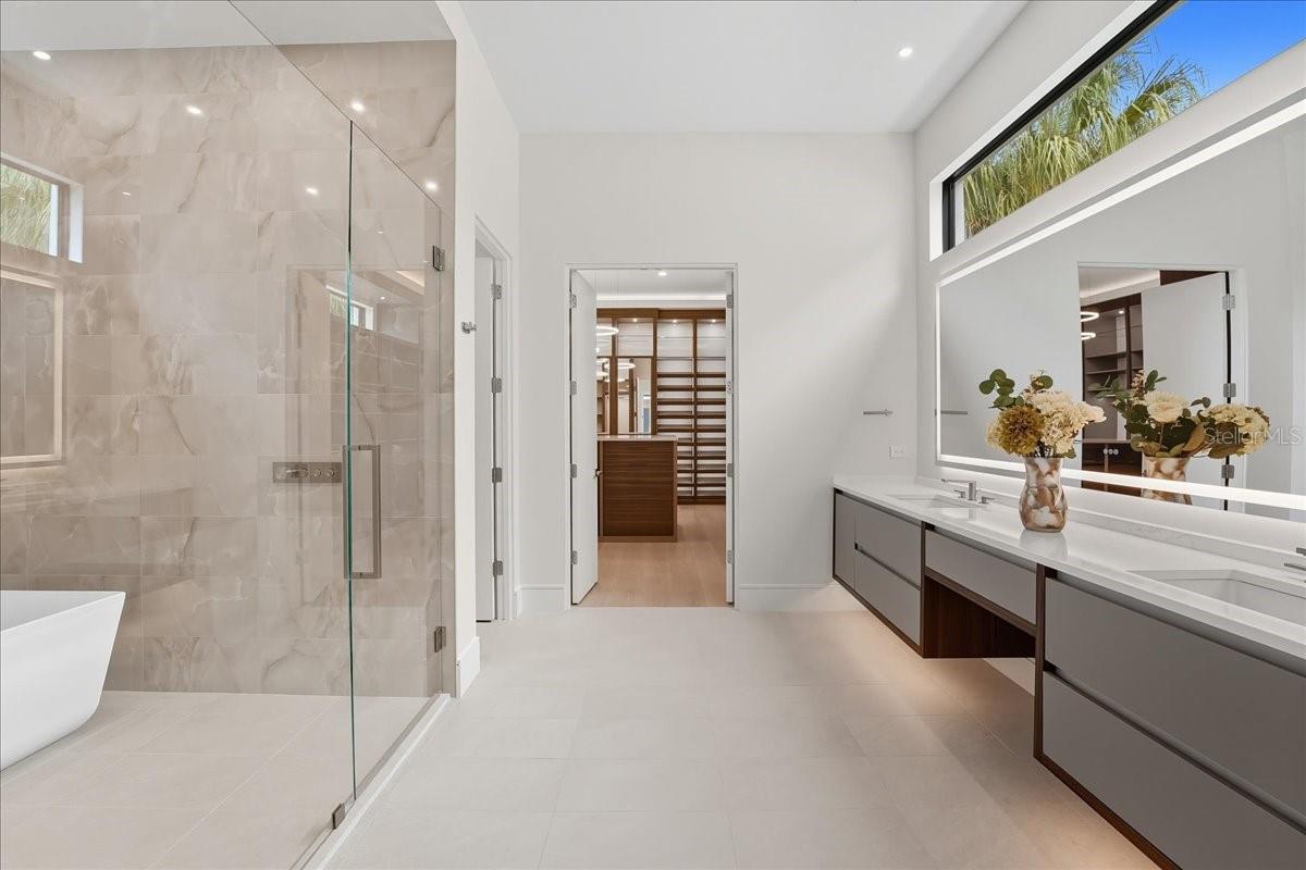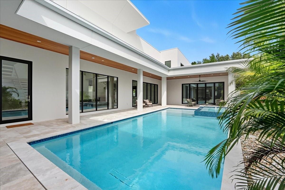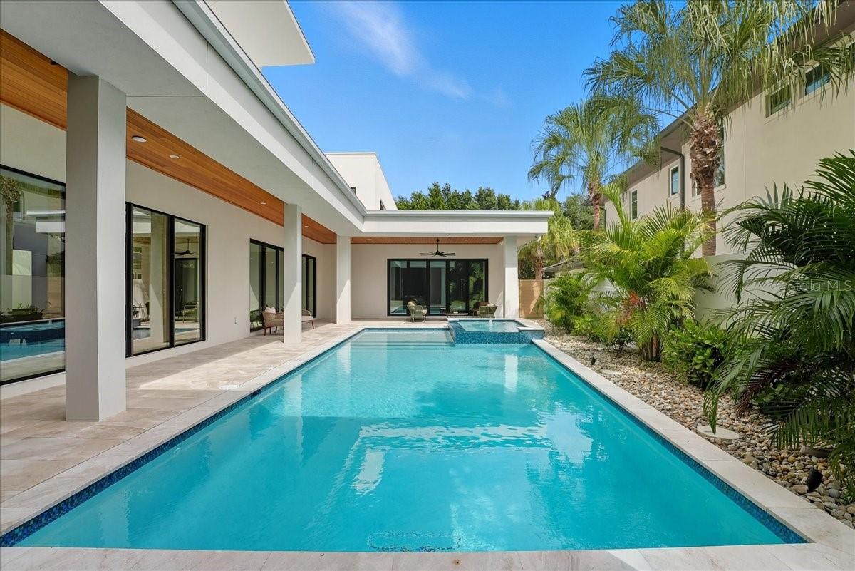 Under contract-accepting backup offers. Situated on a lot spanning over a quarter of an acre, this stunning DeVoe Custom Home encompasses just under 5, 500 square feet. It features five spacious bedrooms, five lavish bathrooms, and two additional half baths. Designed with both elegance and comfort in mind, this home showcases modern luxury seamlessly paired with timeless design elements. Step into an open-concept living space, where soaring ceilings—exceeding 22 feet—combine with expansive windows to flood the home with natural light. The gourmet kitchen is equipped with top-of-the-line appliances, custom cabinetry, and a unique double kitchen island, making it the ideal space for entertaining and culinary creativity. Adjacent dining and living areas flow seamlessly, enhanced by bespoke finishes, a gas fireplace, and panoramic views of the manicured grounds. The primary suite is a private sanctuary, featuring a spa-like bathroom with a soaking tub, dual vanities, a walk-in rain shower, and an immense, custom-designed closet. Each additional bedroom includes an en-suite bathroom and walk-in closet, ensuring both comfort and privacy for family members or guests. Outside, the custom-designed spa and pool area provide the ultimate in relaxation, complete with a privacy wall for added seclusion. The landscaped yard offers ample space for outdoor gatherings, whether lounging poolside or dining al fresco on the covered patio. Additional luxury features include a floating illuminated staircase with glass handrails, a temperature-controlled wine enclosure/display, and both upstairs and downstairs laundry rooms—each equipped with washer and dryer units. A dedicated utility storage room offers over 120 square feet of air-conditioned space, ensuring plenty of additional storage. This home is perfect for hosting or enjoying peaceful, everyday luxury. Custom lighting and fixtures, a spacious three-car garage with dedicated space for golf cart parking, and a versatile office/flex space for work or hobbies round out the exceptional offerings. Located in the heart of Lake Nona Golf & Country Club, this luxury estate provides unparalleled access to local amenities, fine dining, and top-rated schools. Floor plans are available upon request.