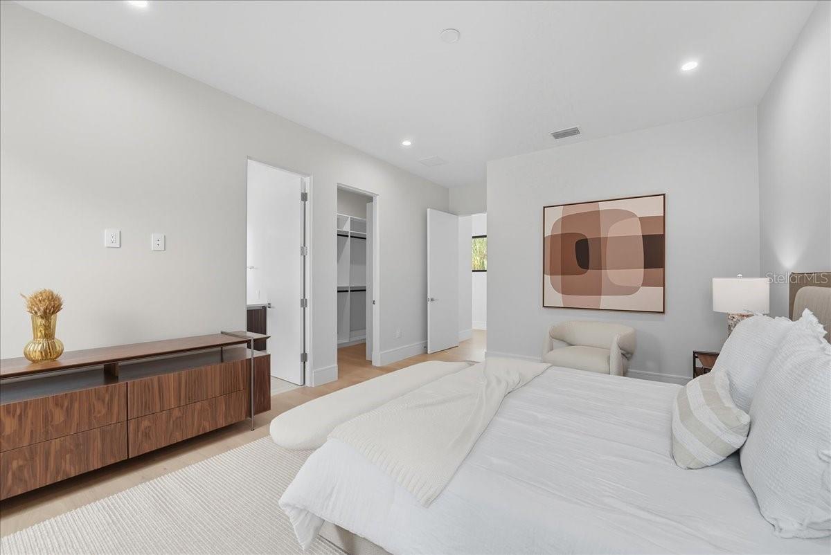 Eat-in Kitchen, High Ceilings, Kitchen/Family Room Combo, Open Floorplan, Primary Bedroom Main Floor, Thermostat, Tray Ceiling(s), Walk-In Closet(s)