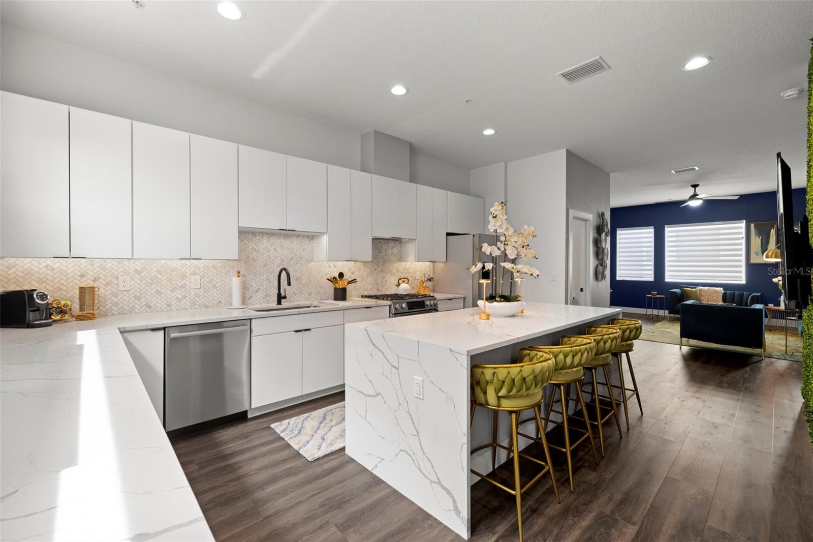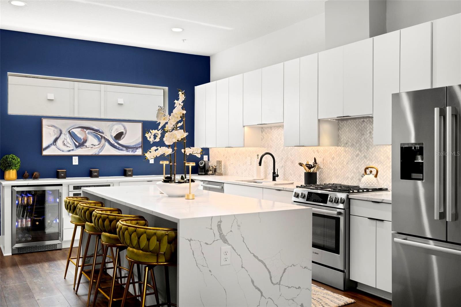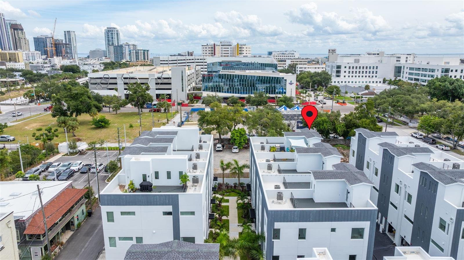 Short Sale. Live the vibrant urban lifestyle in this stylish and spacious 2-bedroom, 2.5-bathroom townhouse. Located in the heart of Downtown St. Petersburg, this residence offers the ultimate in convenience, comfort, and modern design. This ALL-BLOCK luxury-residence is situated in a NON-FLOOD, NON-EVAC ZONE, with Hurricane IMPACT windows for ultimate peace of mind. The lush landscaping is what you will see upon walking to the front entry way The first level features a versatile second bedroom with an en-suite bath with direct access to an oversized one-car-EV-ready garage complete with new epoxy flooring. The spacious chef’s kitchen boasts quartz countertops with an oversized island with a WATERFALL countertop, a breakfast bar for four, and sleek, flat surface, European, soft close cabinetry with a striking marble herringbone tile backsplash. The appliances are ALL brand-new Bosch appliances, including a FIVE burned GAS oven, convection microwave, dishwasher, refrigerator AND wine refrigerator will complete this stylish and functioning space that is perfect for entertaining. The living space shares the floor with the gourmet kitchen and is large, comfortable with lots of natural light. Retreat to the primary suite upstairs for ultimate relaxation where you'll find a brand-new, custom, walk-in closet with built-ins and stylish décor. A beautifully tiled ensuite bath with double sinks, custom LED mirrors, wood shelving and an extra-large walk-in shower. The washer and dryer room is conveniently located near the master bedroom. Also on the floor is a versatile loft space—perfect for a home office, creative studio, or workout zone. The entire townhome has custom roller-shade blinds that allow privacy and natural light. The crown jewel of this residence is the private rooftop terrace. Imagine unwinding under the new sunshade, grilling with friends on the brand new, built-in 36-inch gas grill with stone countertops. Imagine mixing cocktails in the rooftop wet bar, watching the city views which often feature firework displays— all with the city skyline as your backdrop. This space isn’t just an amenity; it’s your urban oasis in the sky. This exclusive 26-unit boutique community offers modern living just steps from everything downtown has to give. Imagine strolling to the St. Pete Pier, where 26 acres of breathtaking waterfront seamlessly blend with lush parks—creating the ultimate destination for biking, dining, shopping, concerts, and more. And the best part? You can walk to it all! From the moment you step inside, you'll feel the pride of ownership in every detail.