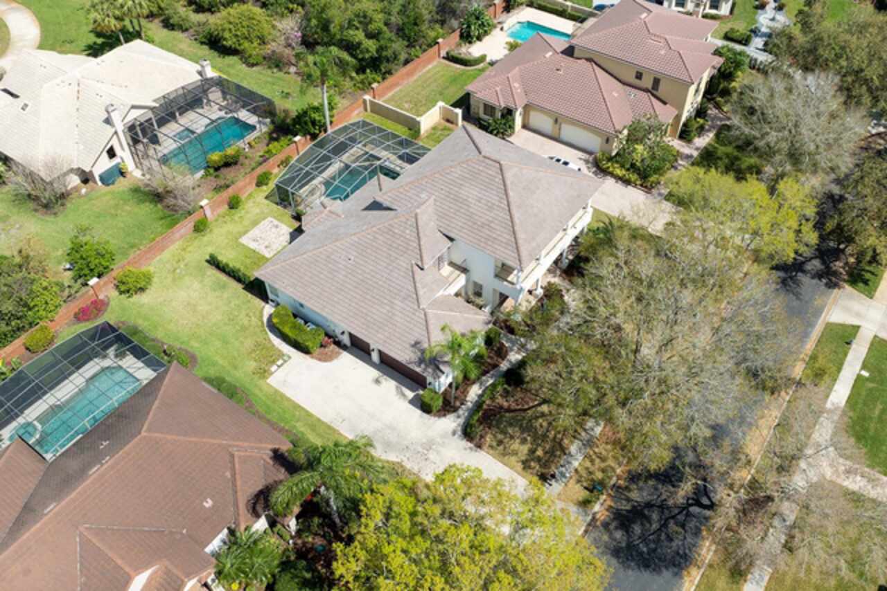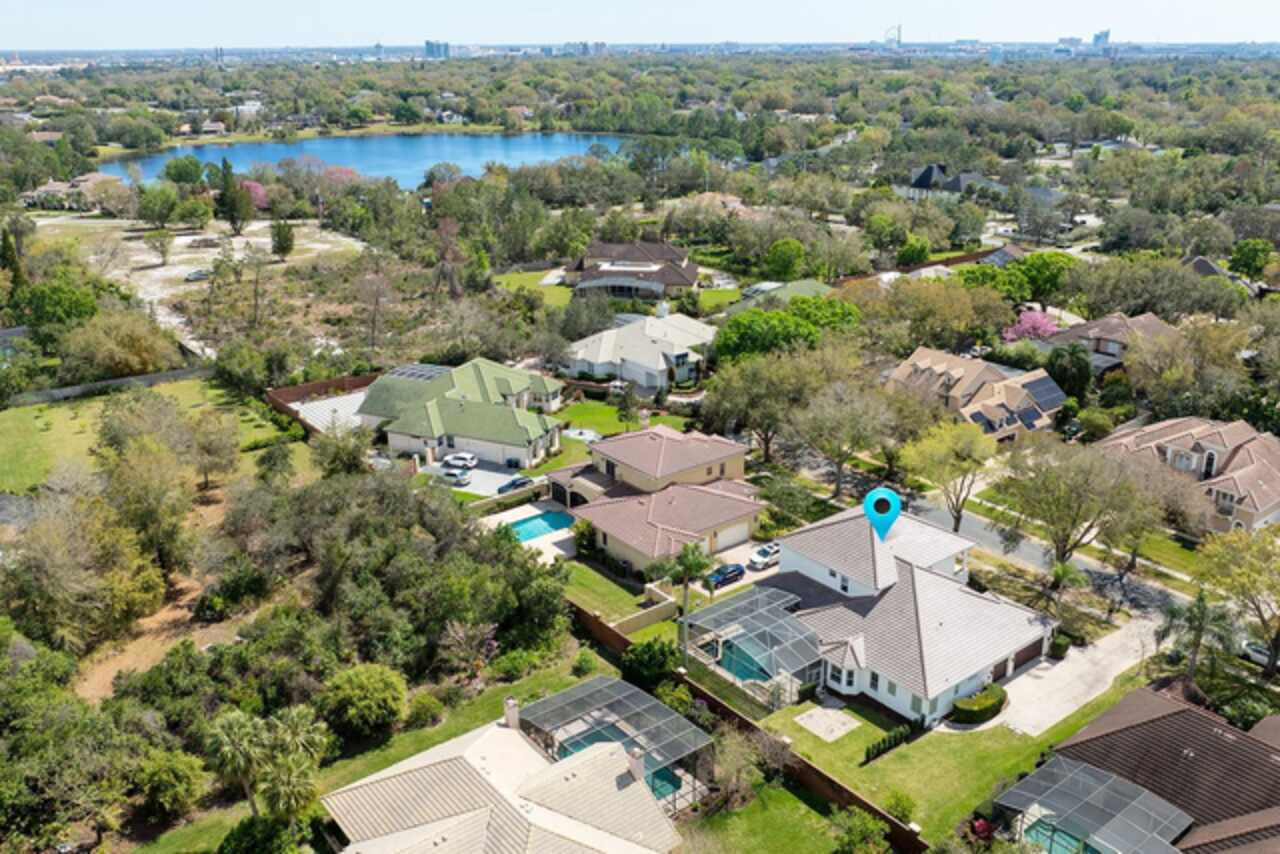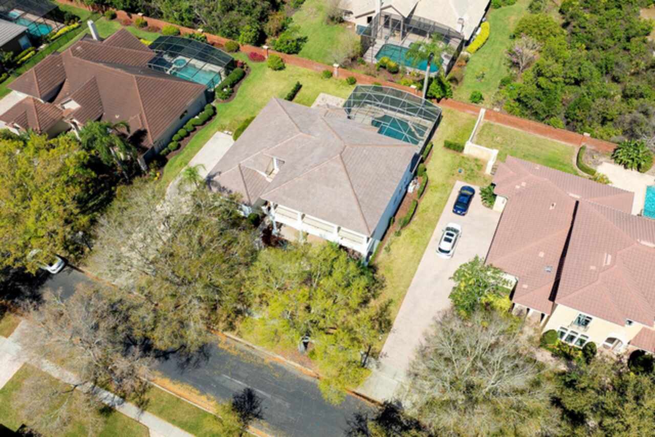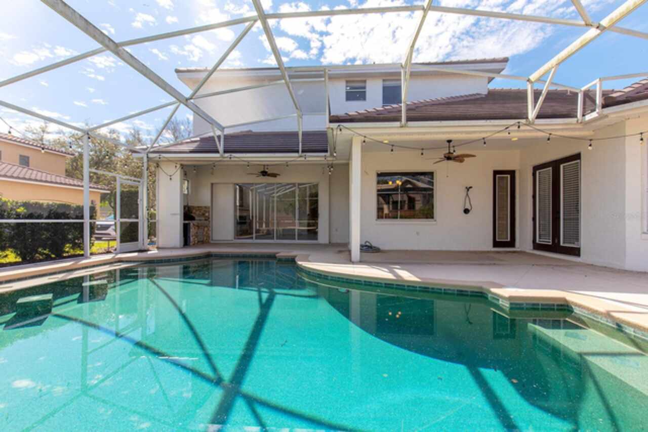 Welcome to this custom two-story pool home, where privacy and everyday comfort meet. This residence boasts a brand-new tile roof and 2nd-floor HVAC System, along with a whopping 4, 167 square feet of living space inside of Palm Lake, an intimate gated community of estate homes in the heart of Dr. Phillips. The sprawling interior enjoys 5 bedrooms and 5 full bathrooms with the primary suite on the ground floor, plus a gourmet kitchen, family room, media room, and formal dining and living rooms. The gourmet kitchen features quartz countertops with one large island, one small island, loads of cabinetry, and a closet pantry, perfect for any culinary enthusiast and those who love to host gatherings. Custom built-in shelving is sprinkled throughout the home, adding both functionality and elegance to the living spaces, while its unique architectural elements make it stand out within the community. Outdoor living is another highlight of this residence. Between the screened pool, covered lanai, spacious backyard, and private balcony, this home offers plenty of space to relax and enjoy. Located in an intimate Dr. Phillips community, this home is conveniently close to Restaurant Row and Universal Studios, offering easy access to dining, shopping, and entertainment options. The property also features a 3-car side-entry garage, providing ample space for vehicles and storage. As the lowest-priced home in the community, this property represents an excellent value for discerning buyers. With its combination of desirable features and prime location, this home offers a unique opportunity for those seeking a blend of luxury and practicality in an intimate gated neighborhood. Don't miss the opportunity to make this custom home your own and update the flooring and finishes as you see fit!