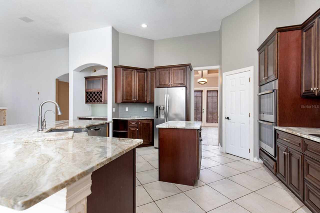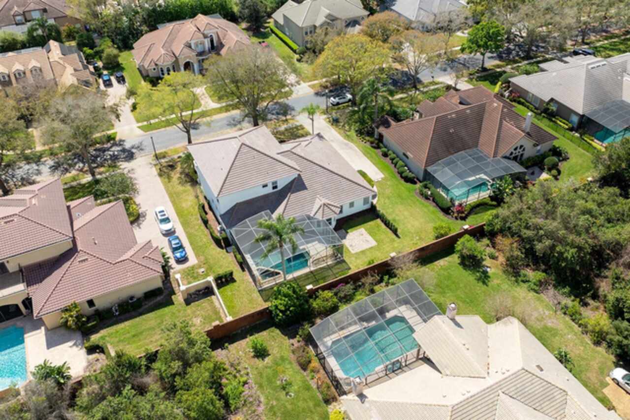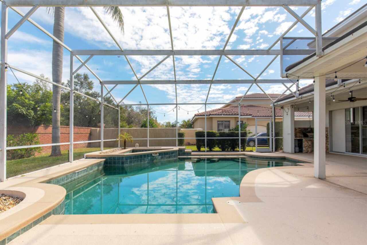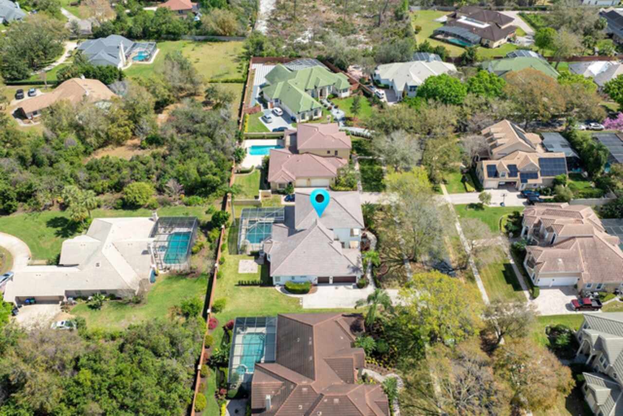 Welcome to this custom two-story pool home, where privacy and everyday comfort meet. This residence boasts a brand-new tile roof and 2nd-floor HVAC System, along with a whopping 4, 167 square feet of living space inside of Palm Lake, an intimate gated community of estate homes in the heart of Dr. Phillips. The sprawling interior enjoys 5 bedrooms and 5 full bathrooms with the primary suite on the ground floor, plus a gourmet kitchen, family room, media room, and formal dining and living rooms. The gourmet kitchen features quartz countertops with one large island, one small island, loads of cabinetry, and a closet pantry, perfect for any culinary enthusiast and those who love to host gatherings. Custom built-in shelving is sprinkled throughout the home, adding both functionality and elegance to the living spaces, while its unique architectural elements make it stand out within the community. Outdoor living is another highlight of this residence. Between the screened pool, covered lanai, spacious backyard, and private balcony, this home offers plenty of space to relax and enjoy. Located in an intimate Dr. Phillips community, this home is conveniently close to Restaurant Row and Universal Studios, offering easy access to dining, shopping, and entertainment options. The property also features a 3-car side-entry garage, providing ample space for vehicles and storage. As the lowest-priced home in the community, this property represents an excellent value for discerning buyers. With its combination of desirable features and prime location, this home offers a unique opportunity for those seeking a blend of luxury and practicality in an intimate gated neighborhood. Don't miss the opportunity to make this custom home your own and update the flooring and finishes as you see fit!