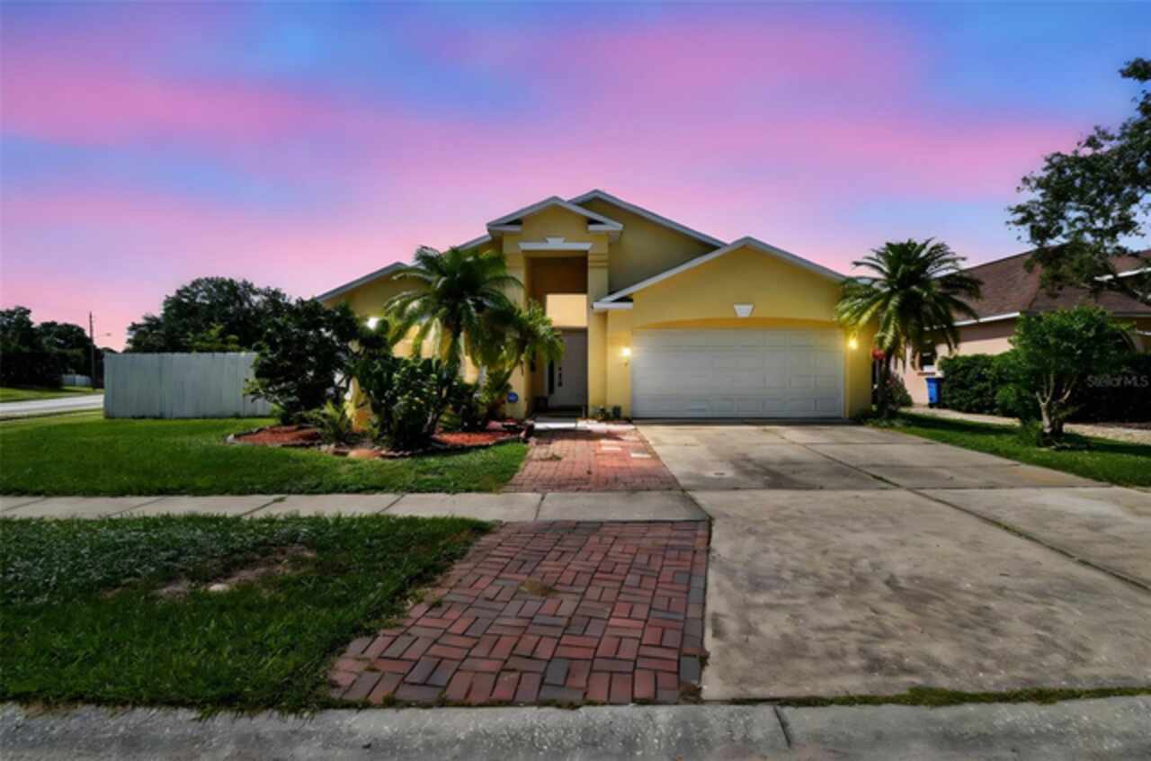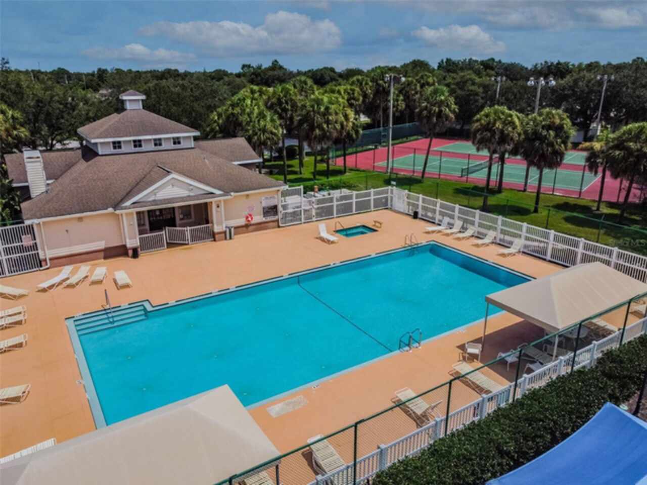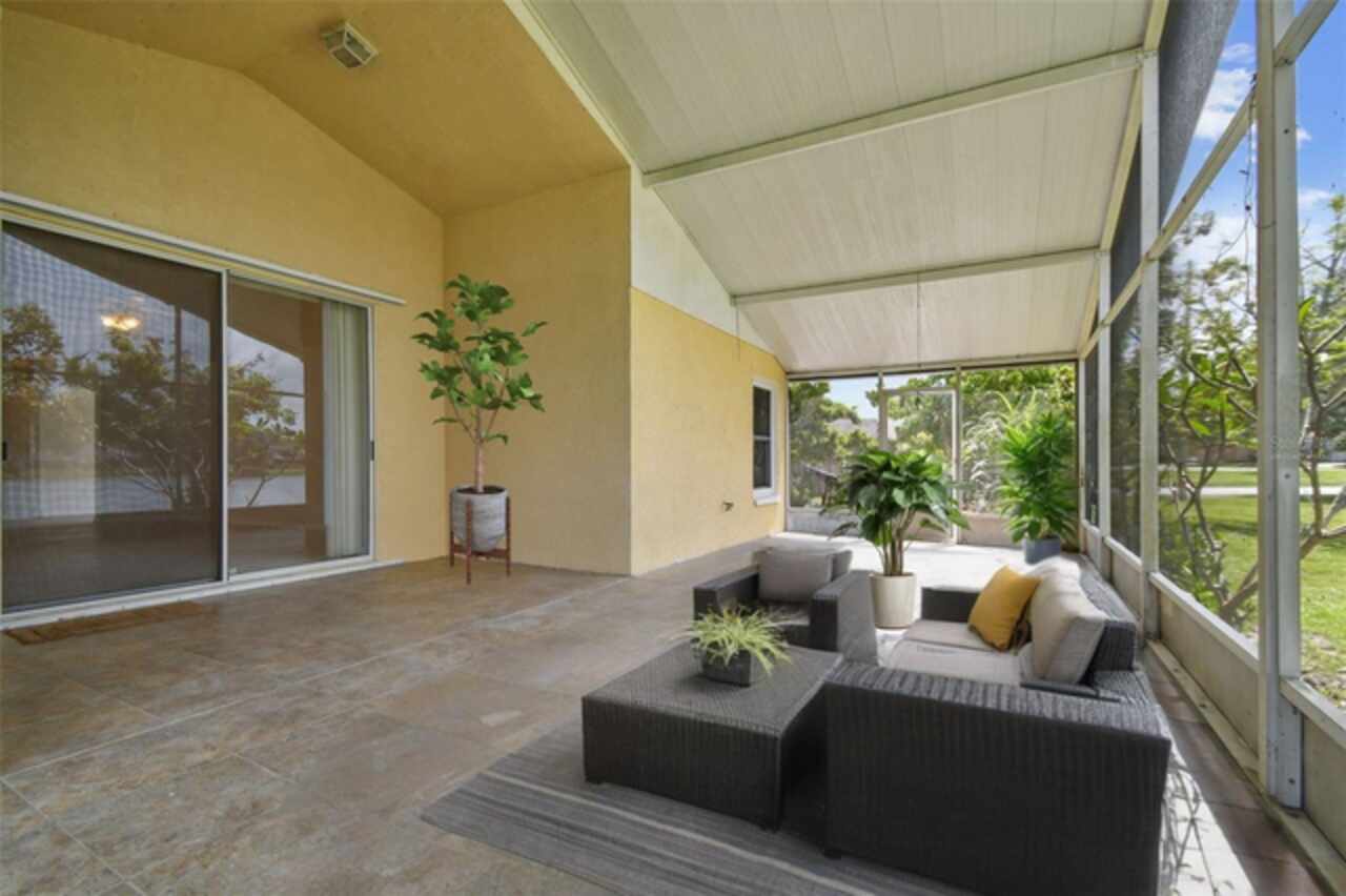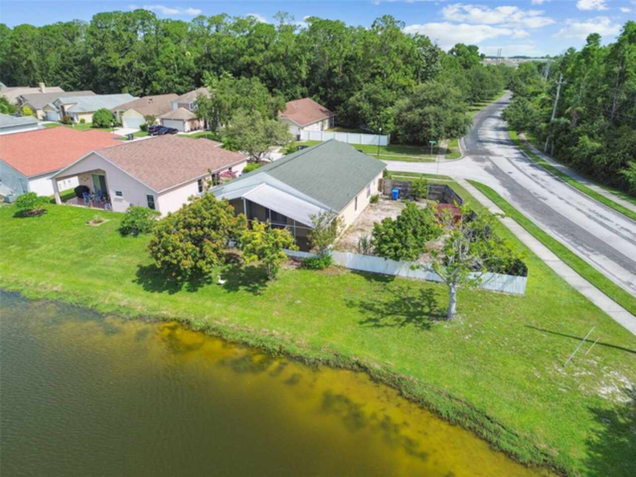 One or more photo(s) has been virtually staged. Welcome to the highly sought-after community of Charleston Corners in Tampa, Florida! This beautiful corner lot with water view home features 4 bedrooms, 3 bathrooms, 2 car garage, dining room, living room, breakfast area, and covered lanai with a huge screened room for your enjoyment. NOT in a flood zone. The spacious living room is great for gatherings and enjoying time with friends and family. Vaulted Ceiling in almost every room. Floor Tiles throughout the entire home. This beautiful property is in a community with clubhouse, pool, tennis, and playground! Mature fruit trees for the family to enjoy! One of the best locations in Tampa with the best schools, close to shopping malls, supermarkets, pharmacies, beach and many more. 10-15 minutes to the Tampa International Airport. Roof was replaced in 2016 and the AC was replaced in 2022, providing peace of mind. Schedule your private tour today to learn more about this property!