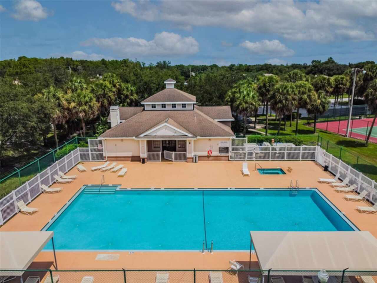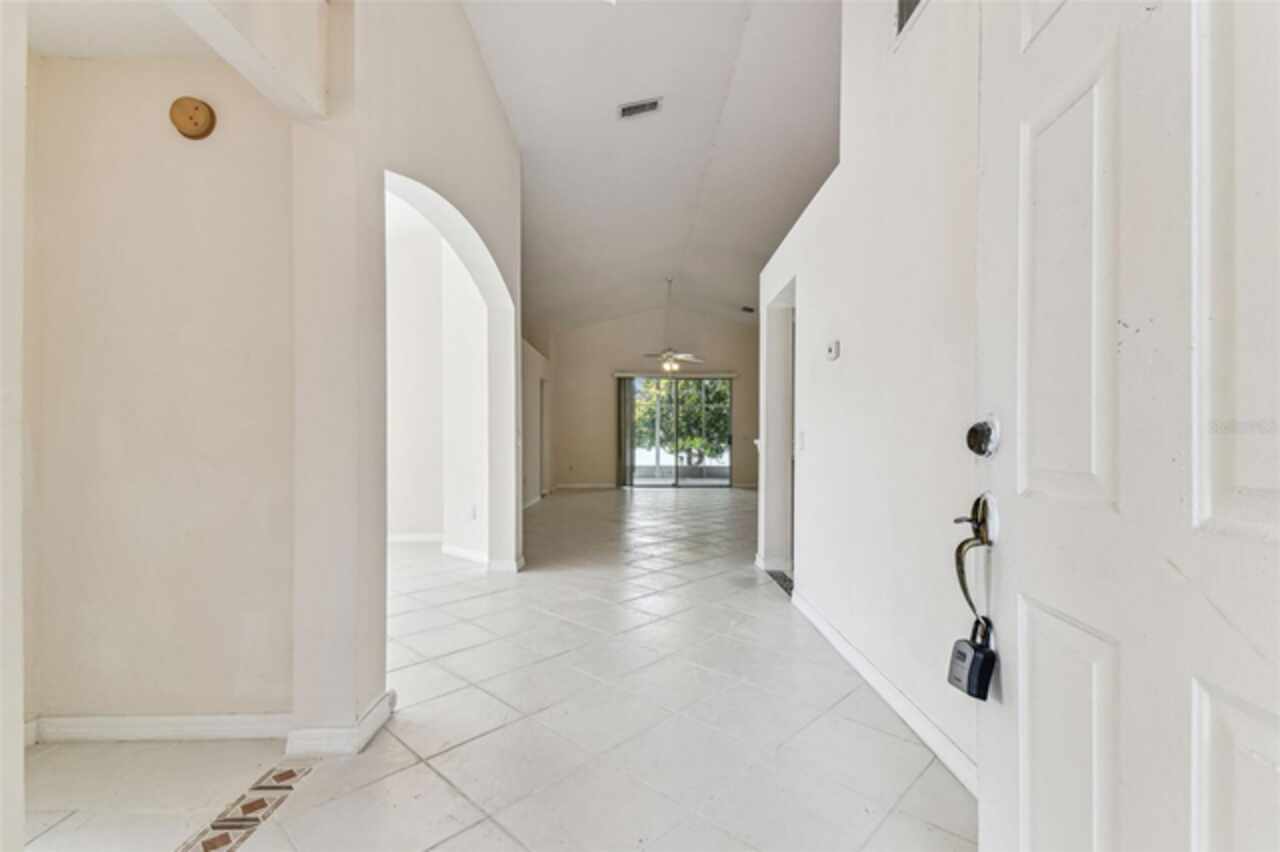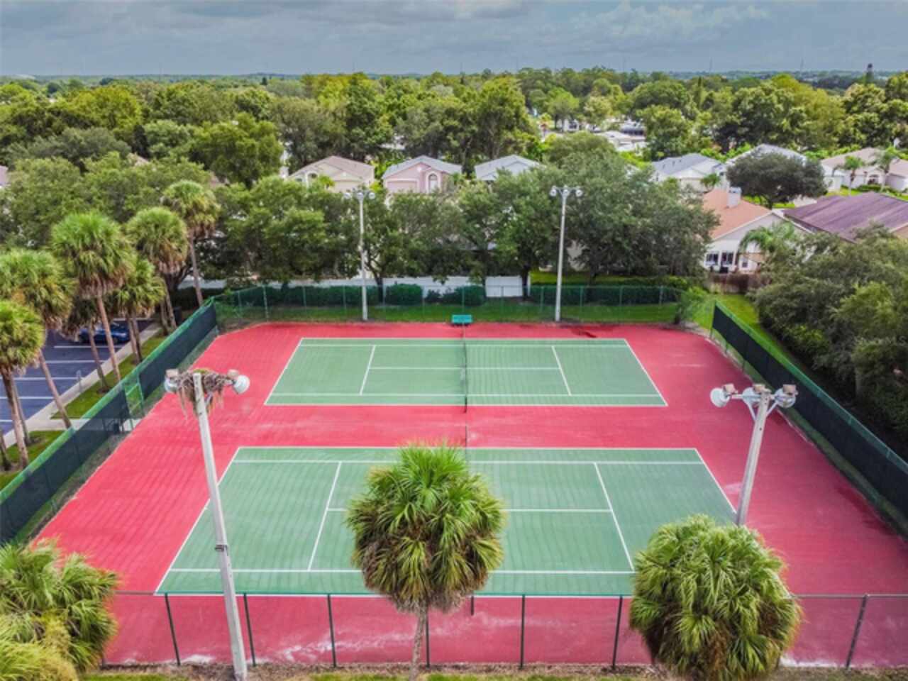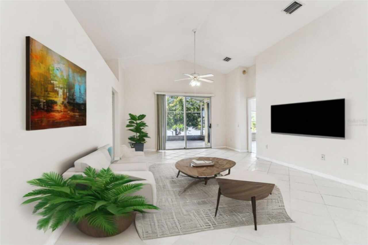 One or more photo(s) has been virtually staged. Welcome to the highly sought-after community of Charleston Corners in Tampa, Florida! This beautiful corner lot with water view home features 4 bedrooms, 3 bathrooms, 2 car garage, dining room, living room, breakfast area, and covered lanai with a huge screened room for your enjoyment. NOT in a flood zone. The spacious living room is great for gatherings and enjoying time with friends and family. Vaulted Ceiling in almost every room. Floor Tiles throughout the entire home. This beautiful property is in a community with clubhouse, pool, tennis, and playground! Mature fruit trees for the family to enjoy! One of the best locations in Tampa with the best schools, close to shopping malls, supermarkets, pharmacies, beach and many more. 10-15 minutes to the Tampa International Airport. Roof was replaced in 2016 and the AC was replaced in 2022, providing peace of mind. Schedule your private tour today to learn more about this property!