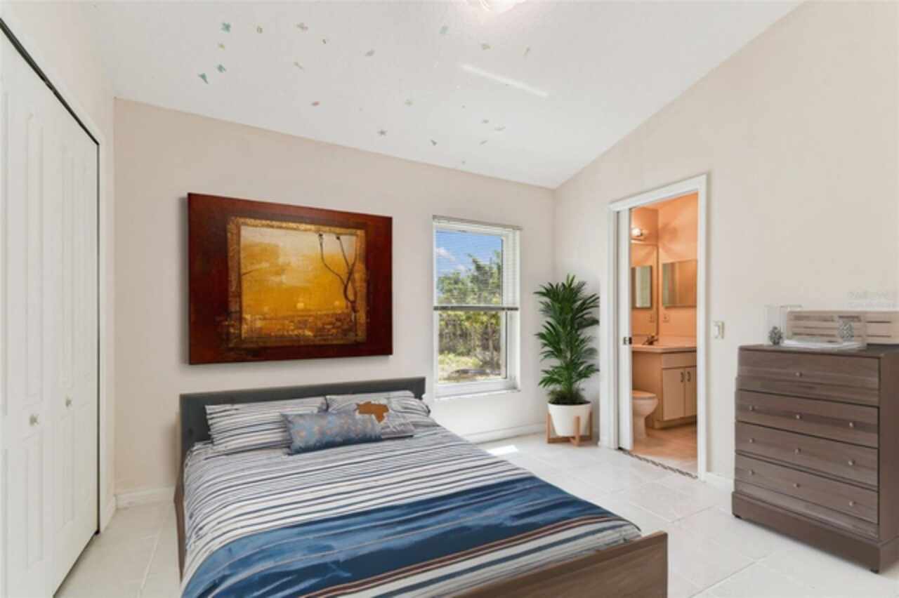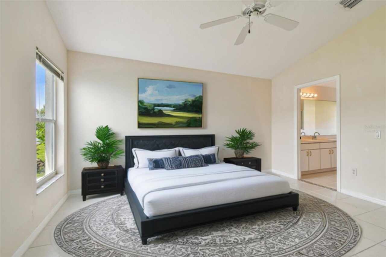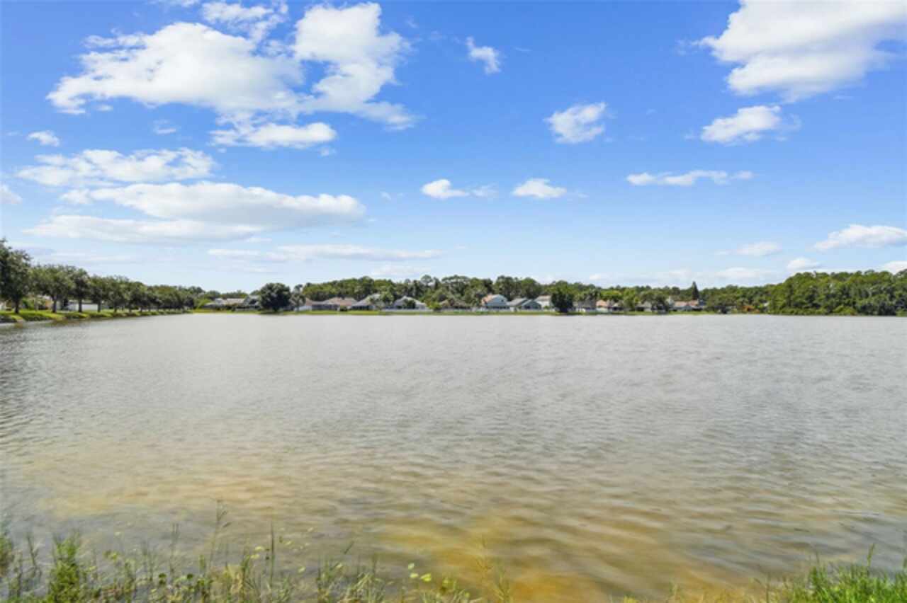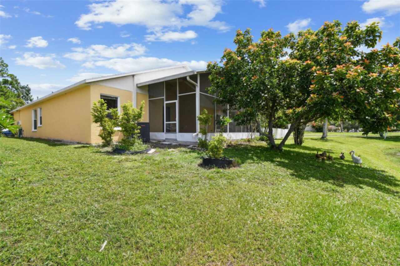 One or more photo(s) has been virtually staged. Welcome to the highly sought-after community of Charleston Corners in Tampa, Florida! This beautiful corner lot with water view home features 4 bedrooms, 3 bathrooms, 2 car garage, dining room, living room, breakfast area, and covered lanai with a huge screened room for your enjoyment. NOT in a flood zone. The spacious living room is great for gatherings and enjoying time with friends and family. Vaulted Ceiling in almost every room. Floor Tiles throughout the entire home. This beautiful property is in a community with clubhouse, pool, tennis, and playground! Mature fruit trees for the family to enjoy! One of the best locations in Tampa with the best schools, close to shopping malls, supermarkets, pharmacies, beach and many more. 10-15 minutes to the Tampa International Airport. Roof was replaced in 2016 and the AC was replaced in 2022, providing peace of mind. Schedule your private tour today to learn more about this property!