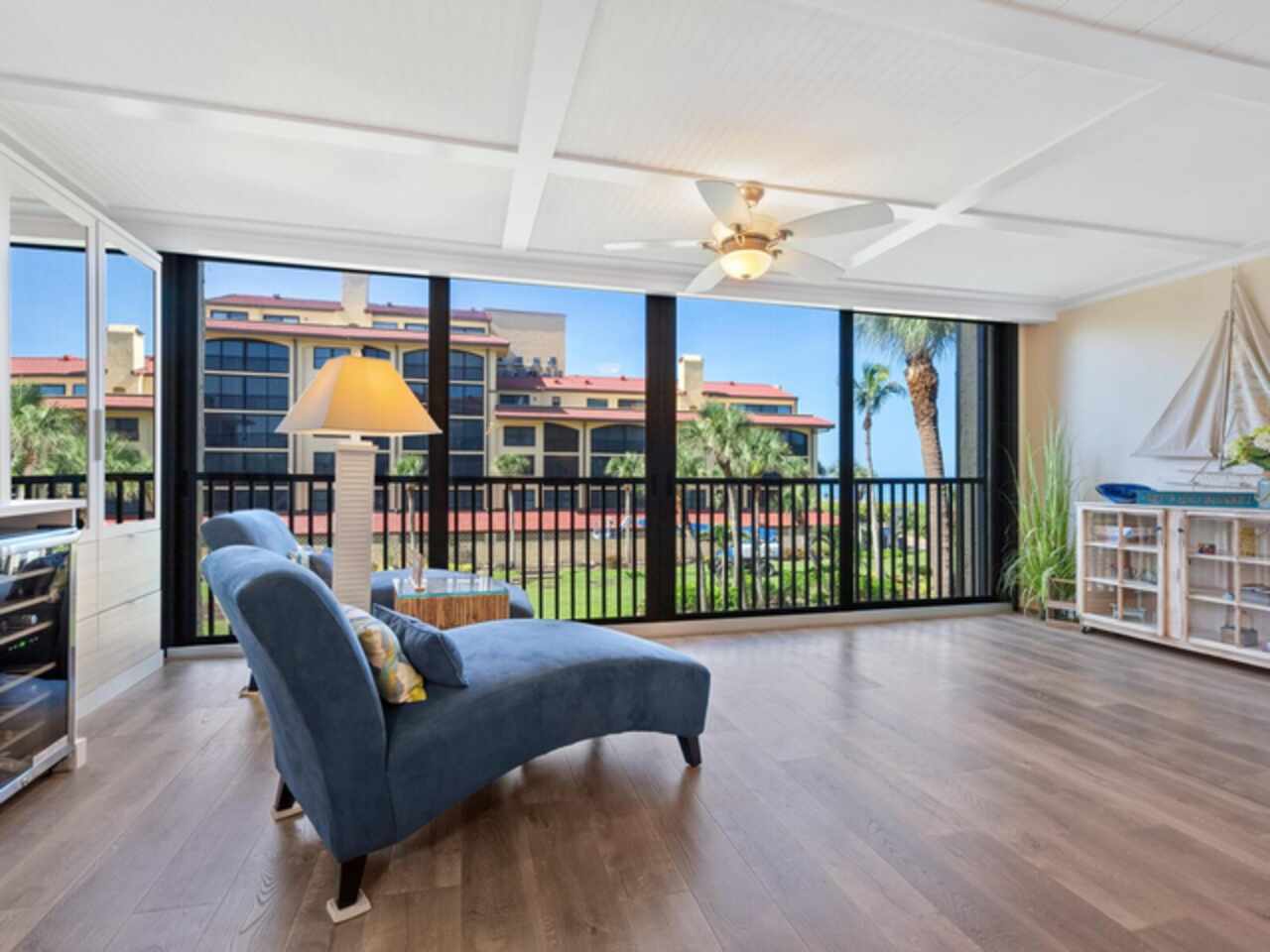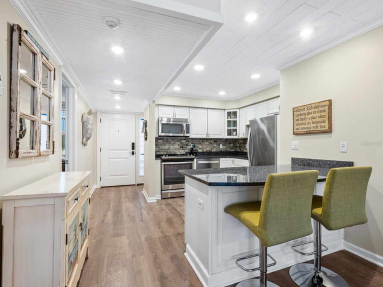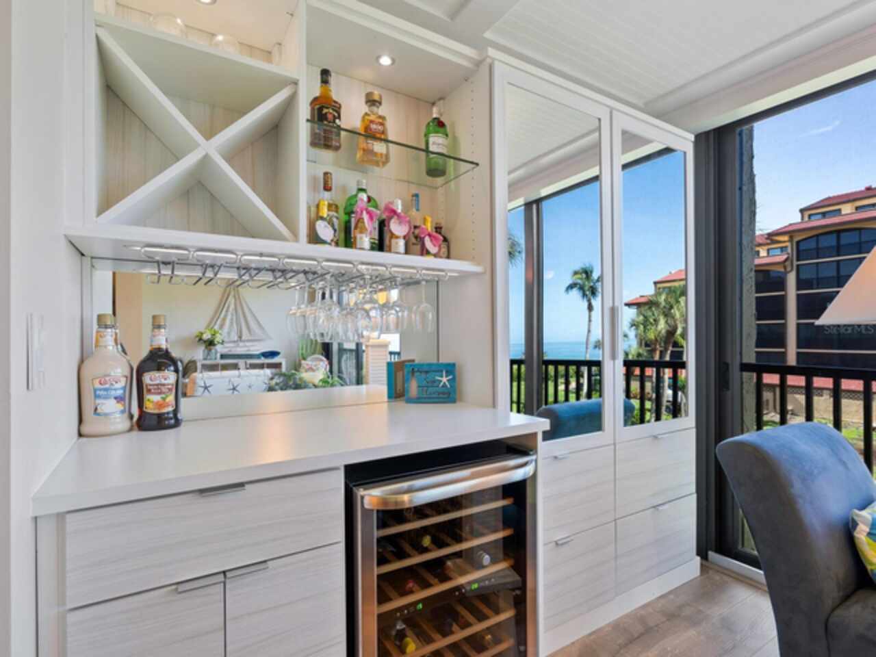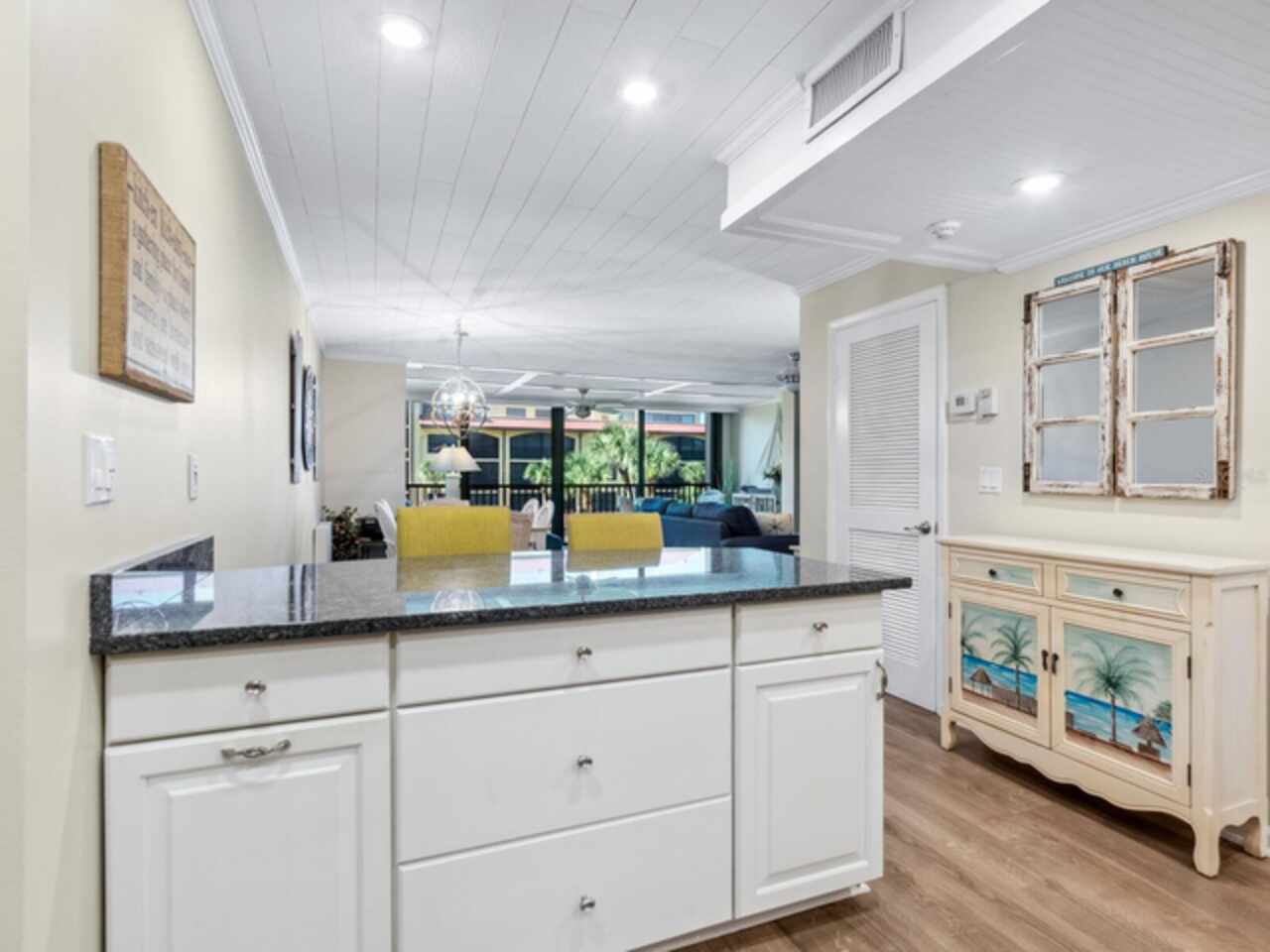 Discover this beautifully updated two-bedroom, two-bath residence in Tortuga, one of Siesta Key’s beloved beachfront communities. Step inside this 1, 232-square-foot retreat and immediately notice thoughtful touches throughout. The open-concept layout seamlessly connects the stylish kitchen featuring Whirlpool stainless steel appliances, granite countertops and generous cabinetry. It seamlessly opens to the dining area with plenty of space for meals with friends and family, and the spacious great room, complete with crown molding and tons of natural light, with sliders to the versatile sunroom. Enjoy it as a screened lanai to capture fresh Gulf breezes and nightly sunsets or close the sliding glass doors for an air-conditioned oasis with a partial Gulf of Mexico view. A built-in dry bar makes this space ideal for entertaining. Both bedrooms are positioned in a desirable split plan, each offering its private en-suite bath with modern fixtures and granite vanity tops, ensuring comfort and privacy for you and guests. Practical conveniences elevate everyday living — including in-unit laundry, covered parking to keep your car cool, secure building access with an elevator and extra storage for all your beach essentials. Tortuga’s resort-style amenities include a heated indoor/outdoor pool, beautifully maintained grounds, covered walkways, ample guest parking, and a welcoming club room for gatherings and community events. Beyond your doorstep, Turtle Beach awaits nearby, while Siesta Key Village’s restaurants, shops and activities are a short trolley ride away. From local arts and culture to boating, golf, pickleball and Sarasota’s vibrant year-round calendar of events — this is your gateway to the best of Gulf Coast living. Plus, with Sarasota-Bradenton Airport just minutes away, coming and going is a breeze.